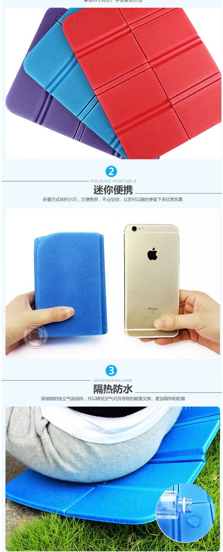 JAJALIN outdoor moisture-proof mat portable small cushion foldable picnic mat mountaineering mat outdoor waterproof foam floor mat blue