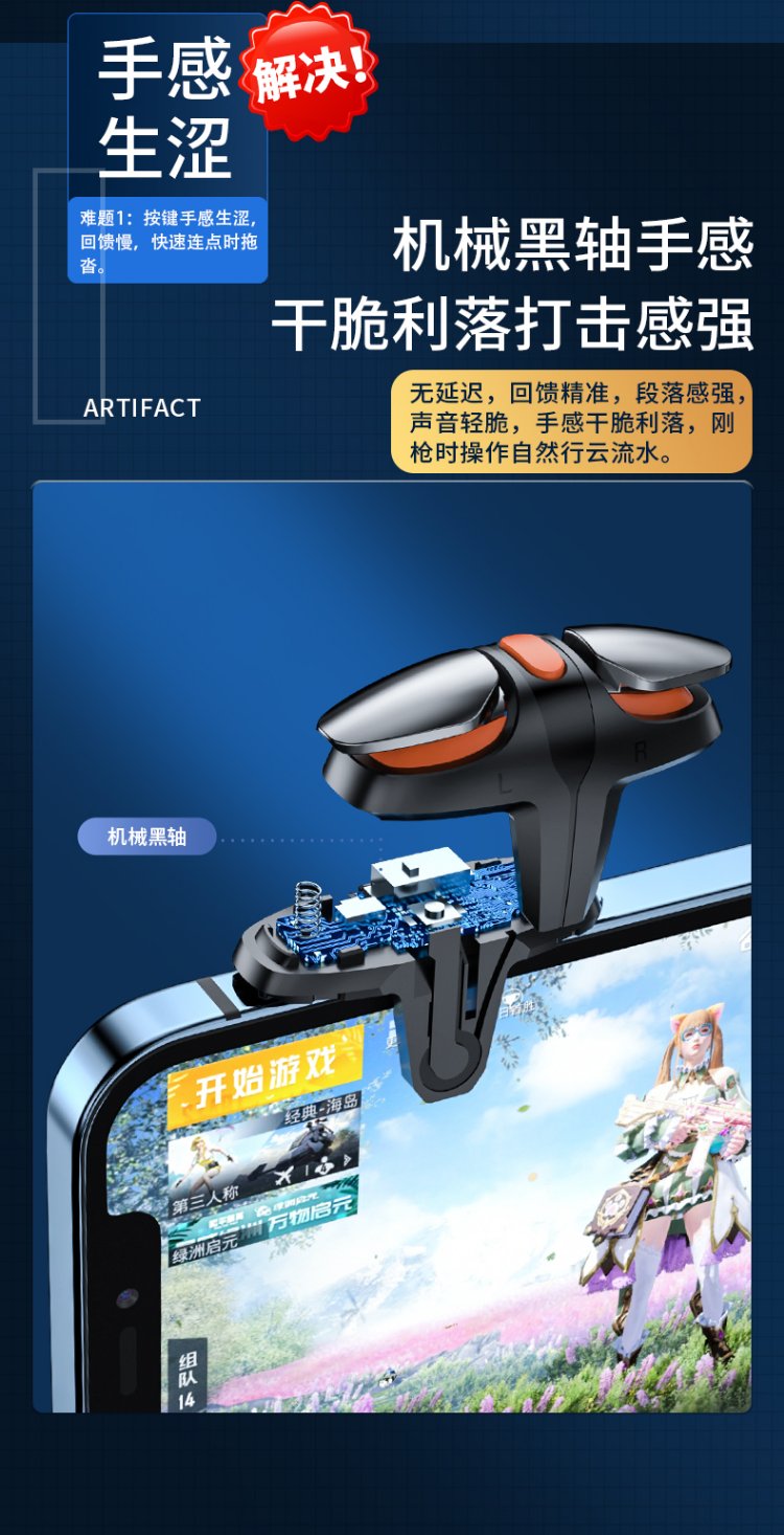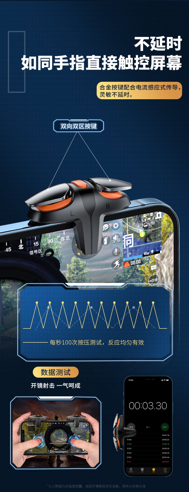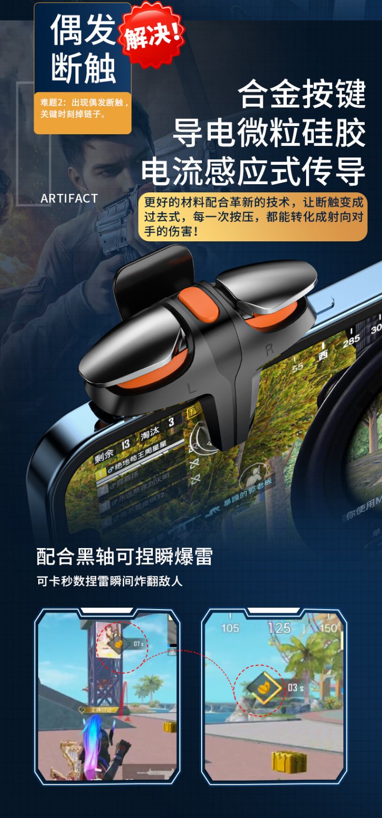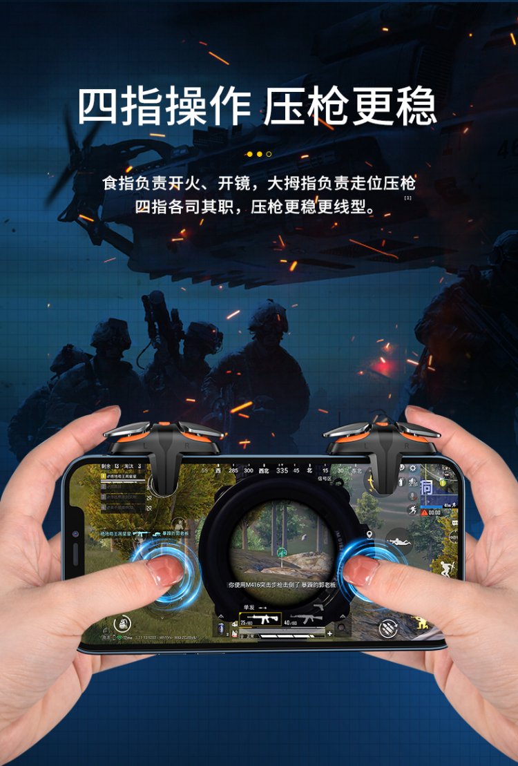KMaxAI metal button chicken-eating artifact four-finger push type Peace Elite peripheral mobile game CrossFire physical plug-in mobile game auxiliary equipment Black Orange