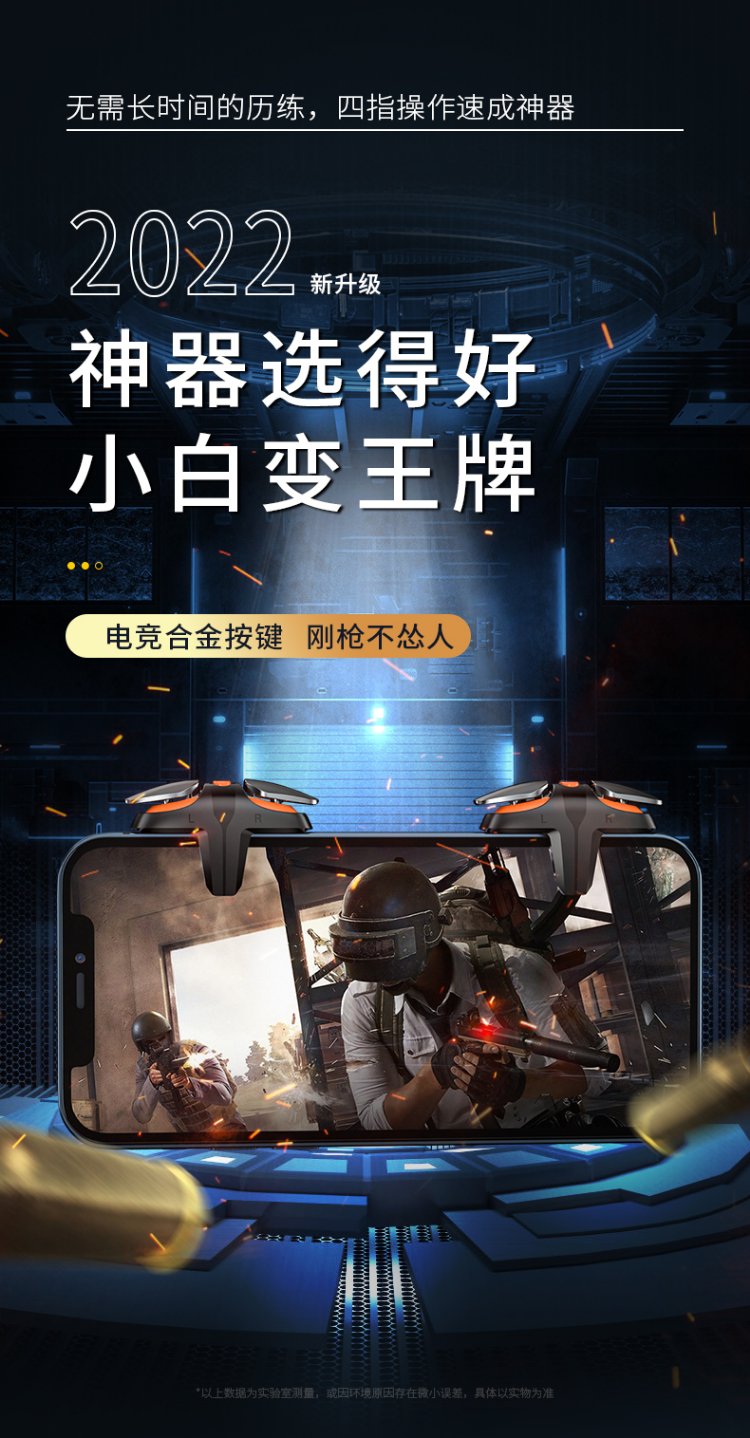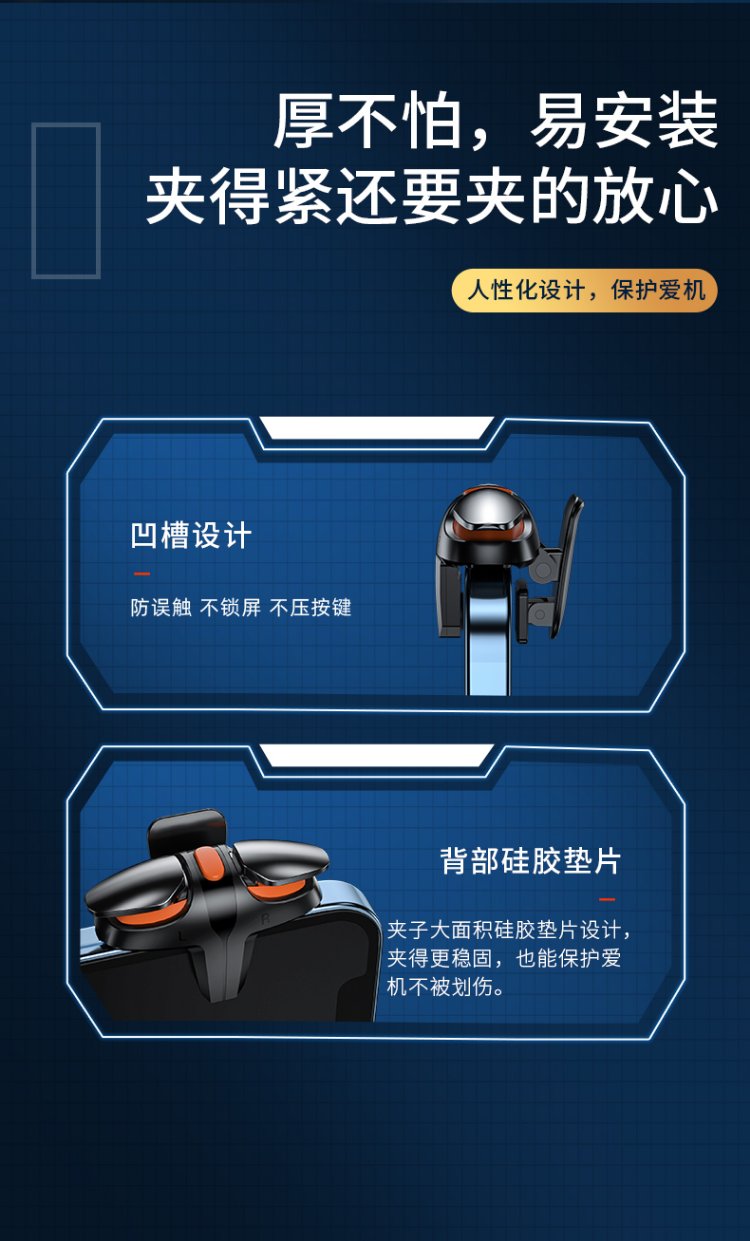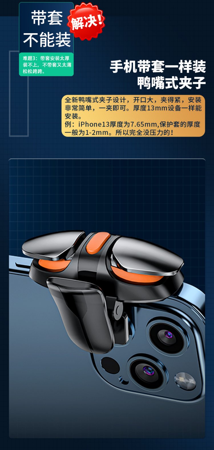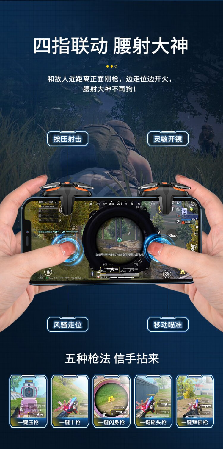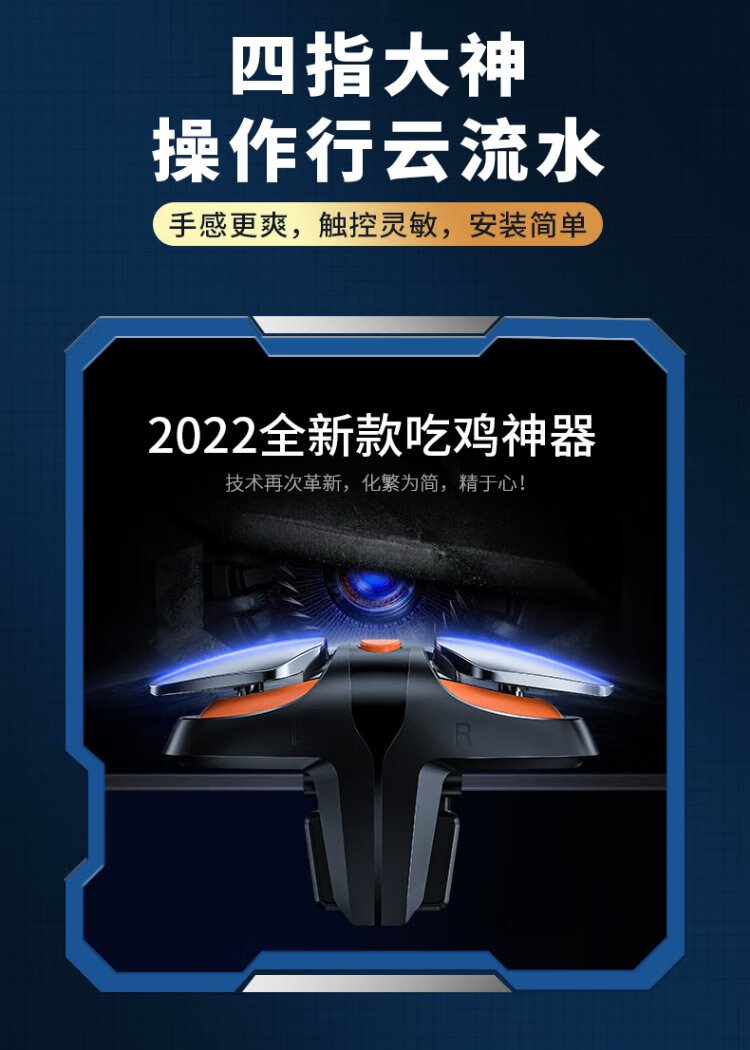 KMaxAI metal button chicken-eating artifact four-finger push type Peace Elite peripheral mobile game CrossFire physical plug-in mobile game auxiliary equipment Black Orange