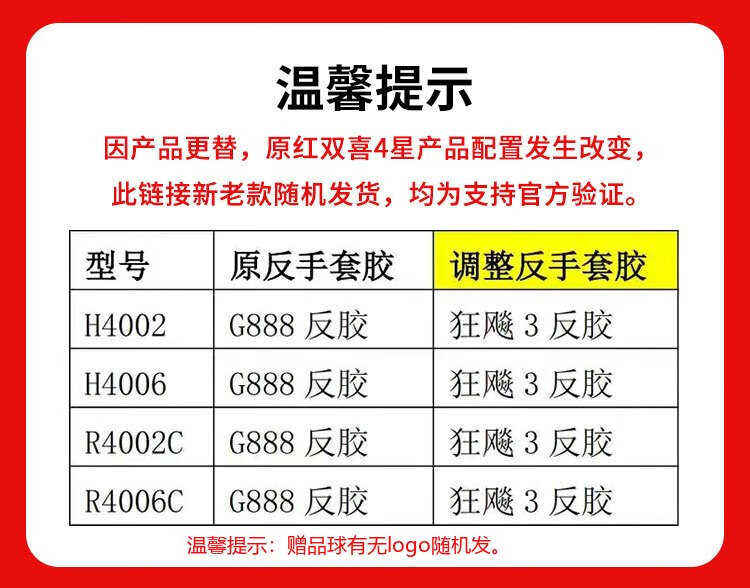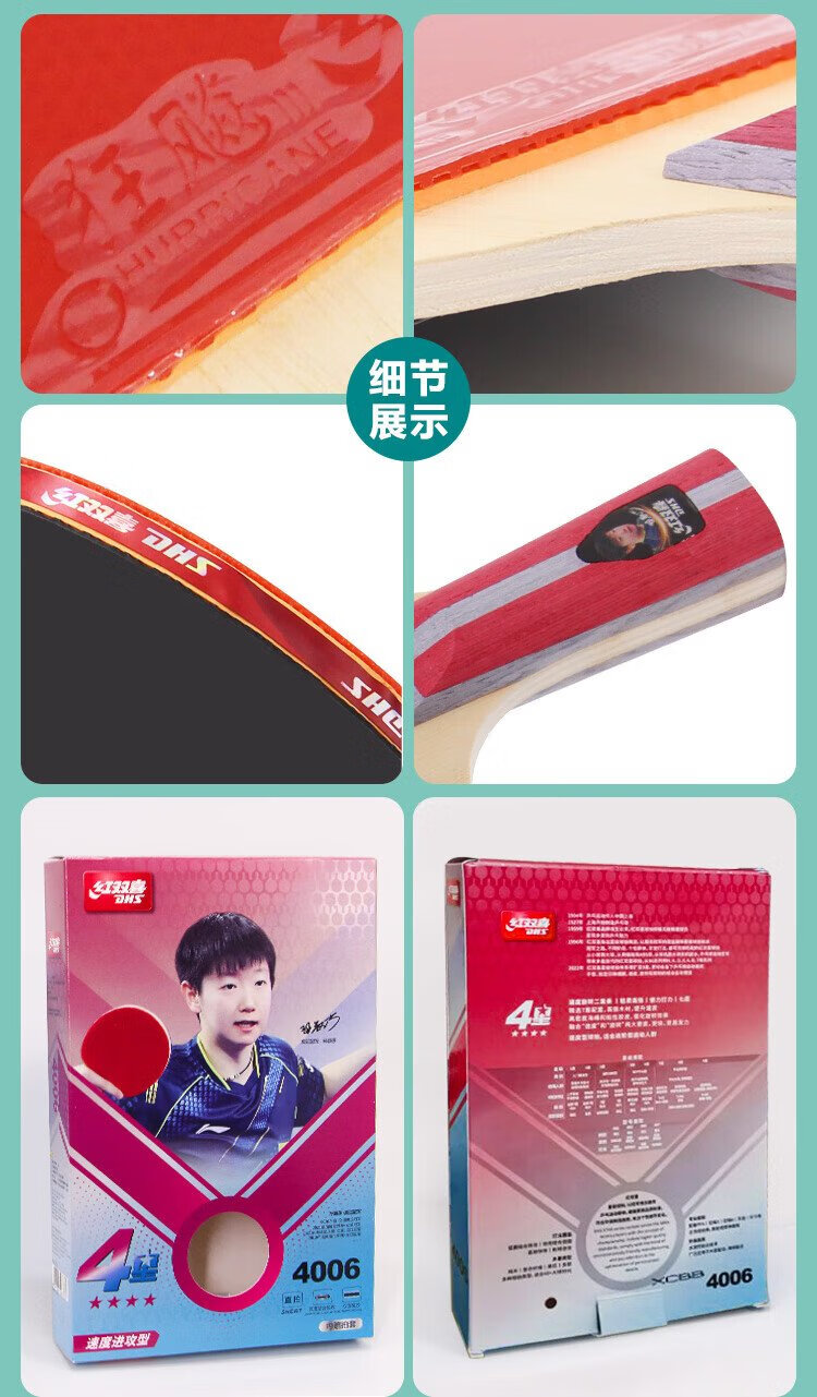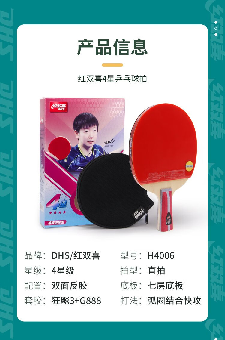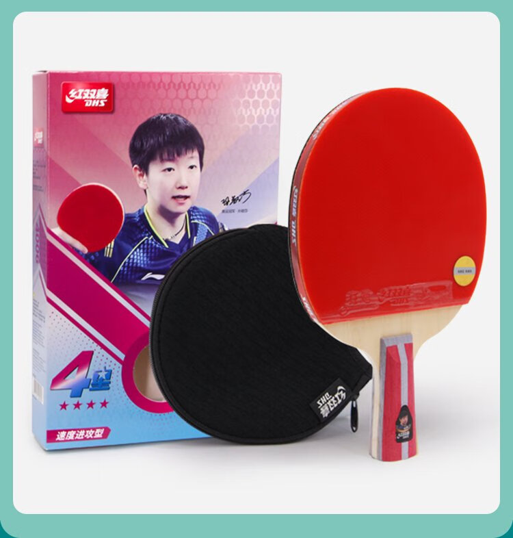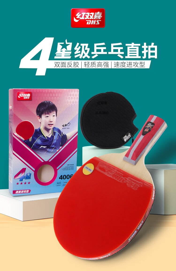 Red Double Happiness Crazy Four-Star Youth Competition Upgraded Version Direct H4006 Double-sided Reversible Table Tennis Racket with Table Tennis Ball