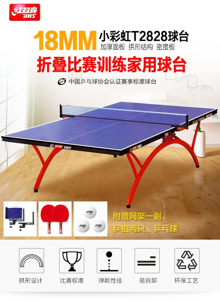 Double Happiness DHS table tennis table indoor table tennis table for training and competition (T2828) with grid/racquet/table tennis