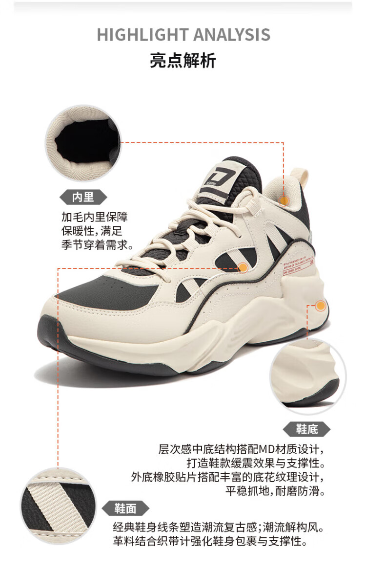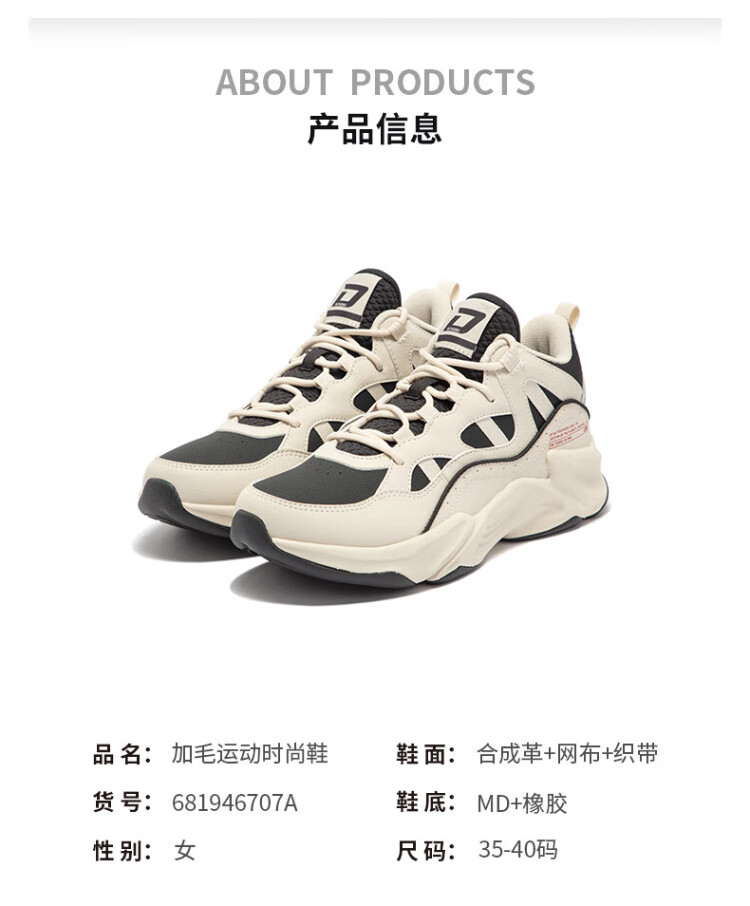 361 Women's Sports Shoes Autumn and Winter Warm and Velvet Retro Thick Soled Casual Dad Cotton Shoes Women 681946707A-1