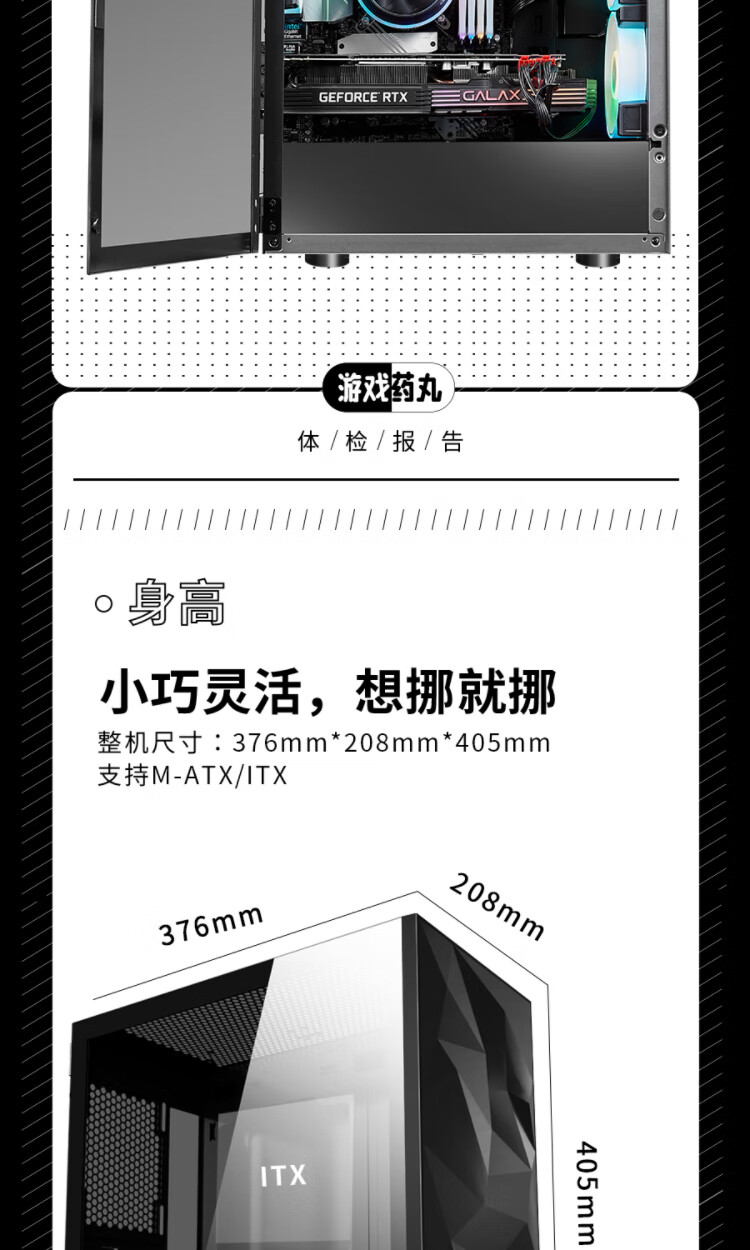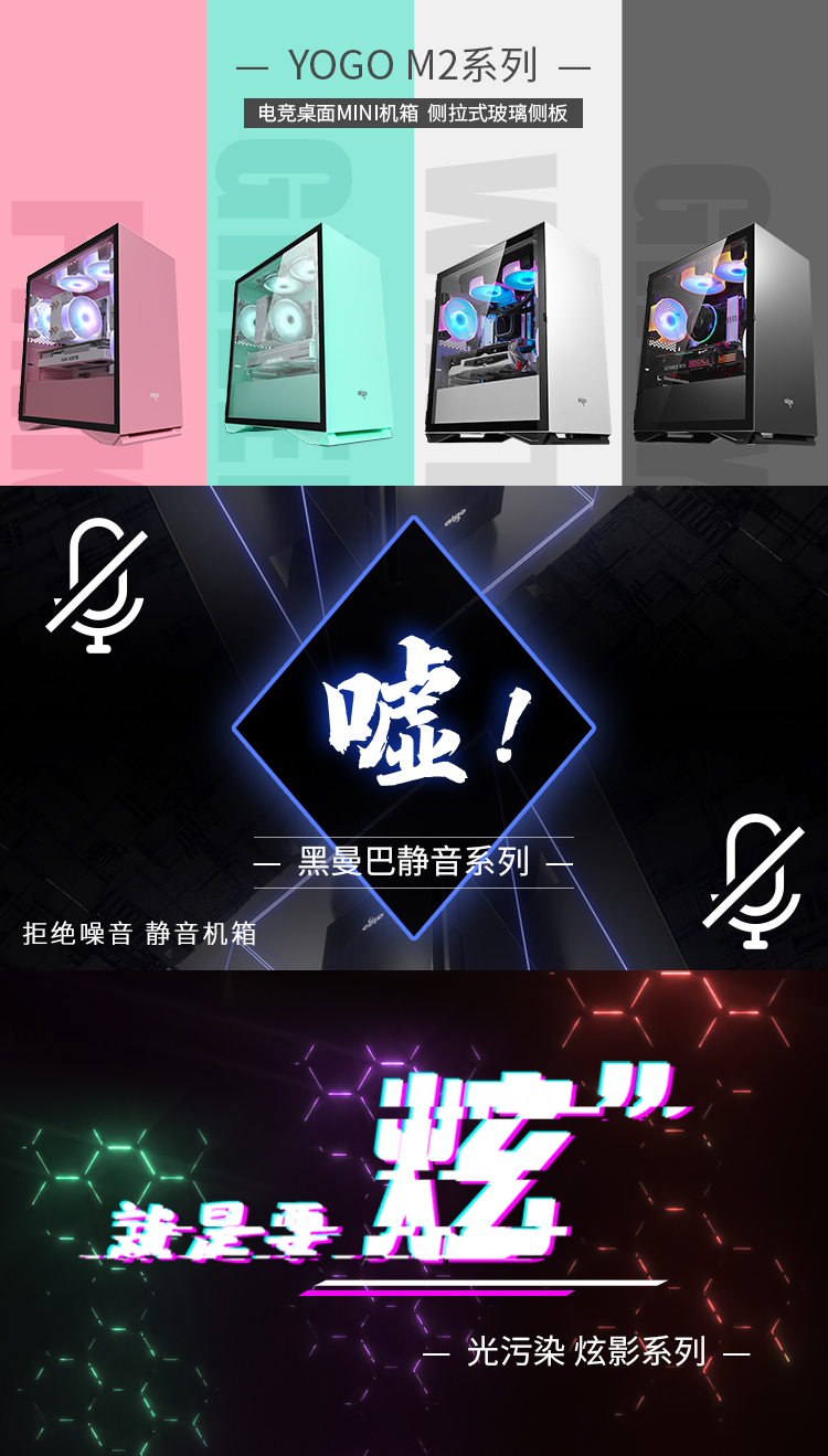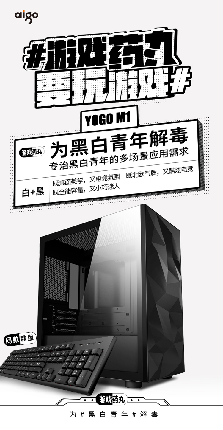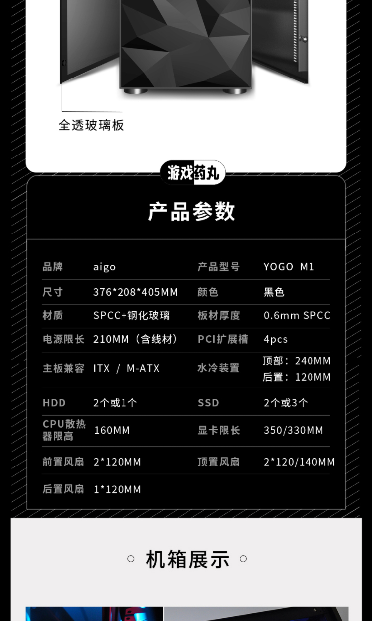 Aigo YOGO M1 Black Game Pill Full Side Transparent MINI Computer Case (Supports M-ATX motherboard/240 water cooling/side-opening tempered glass side panels)