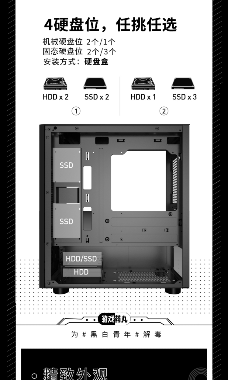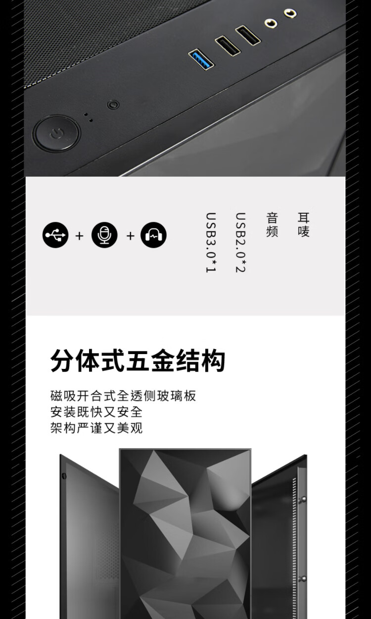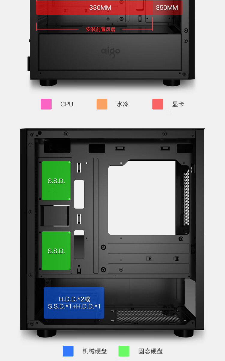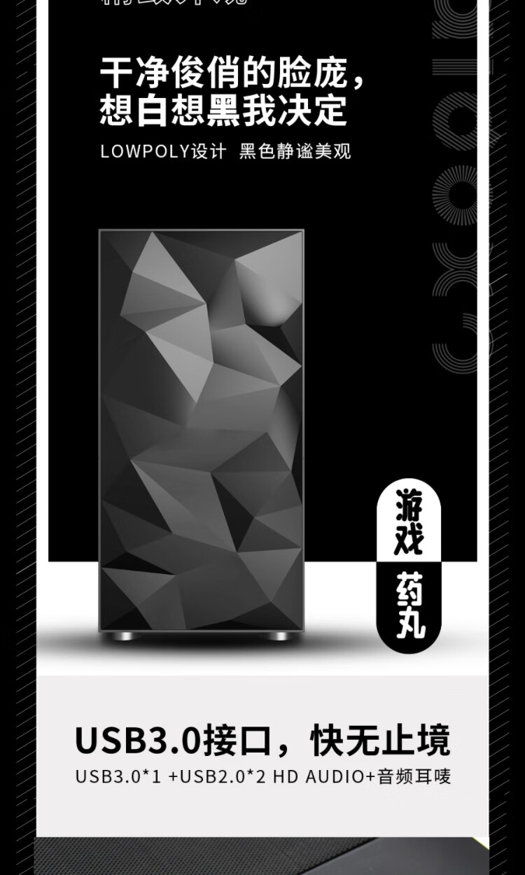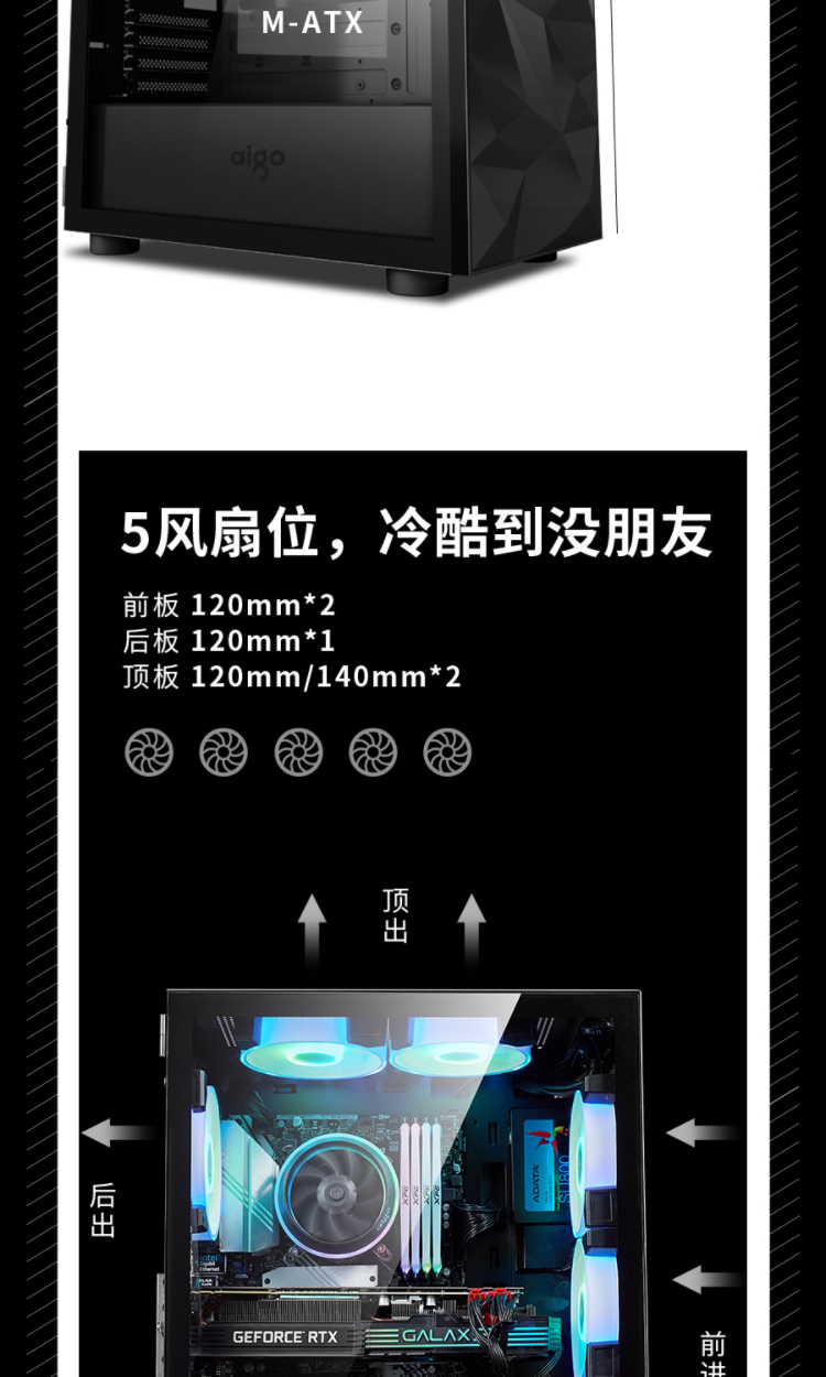Aigo YOGO M1 Black Game Pill Full Side Transparent MINI Computer Case (Supports M-ATX motherboard/240 water cooling/side-opening tempered glass side panels)