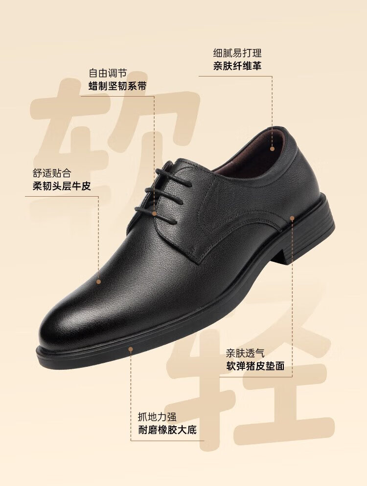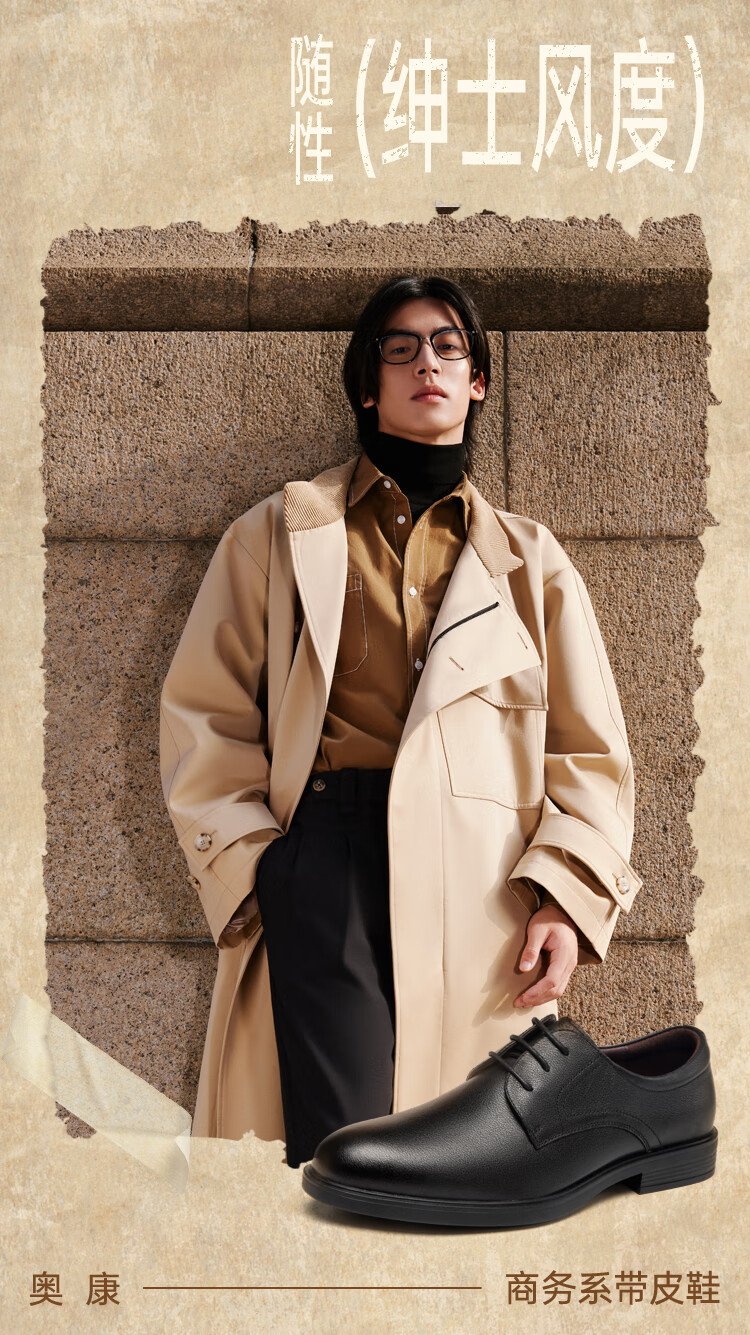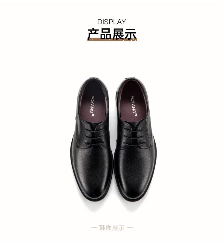 Aokang leather shoes men's British style business formal shoes low-top lace-up shoes for men black size 40