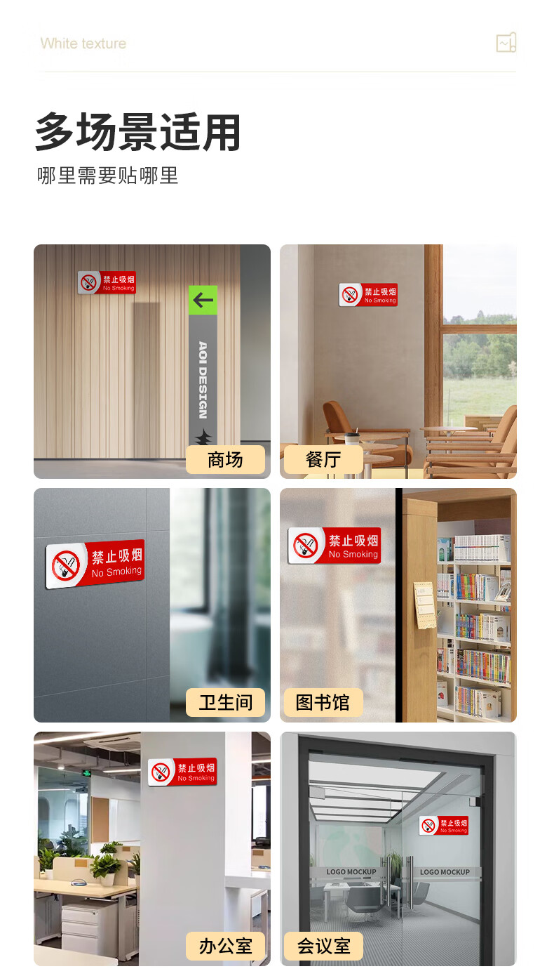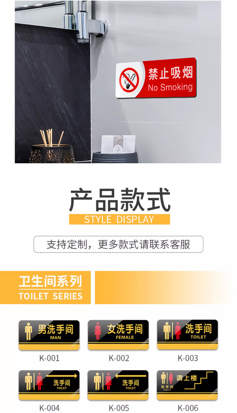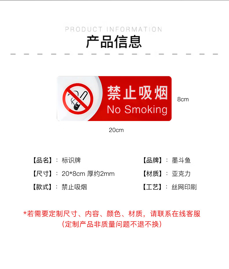 Cuttlefish no smoking acrylic sign wall sticker no smoking warning sign smoking area sign 20*8cm
