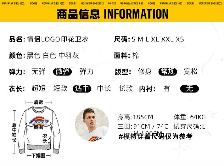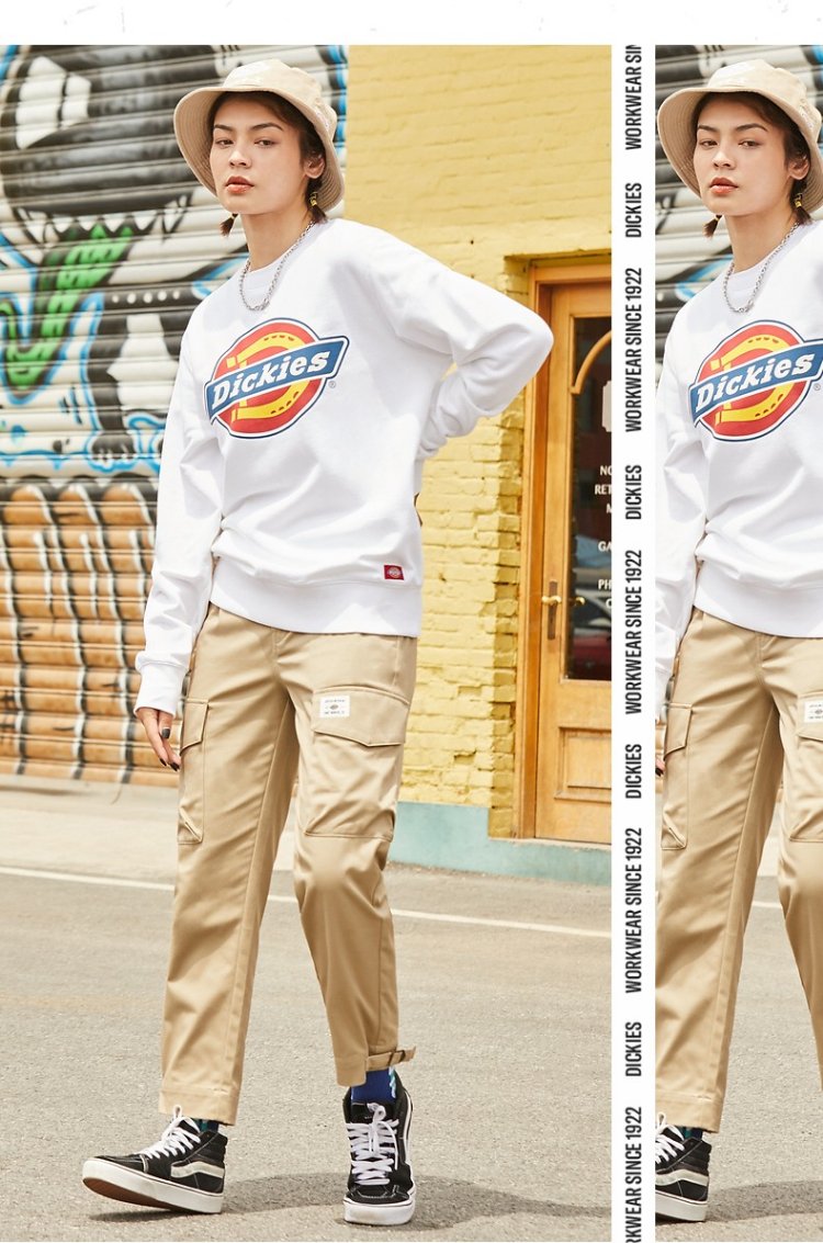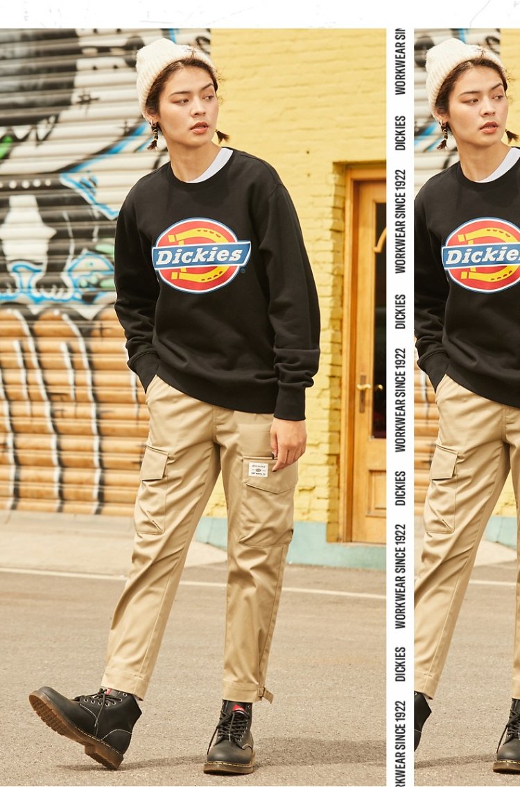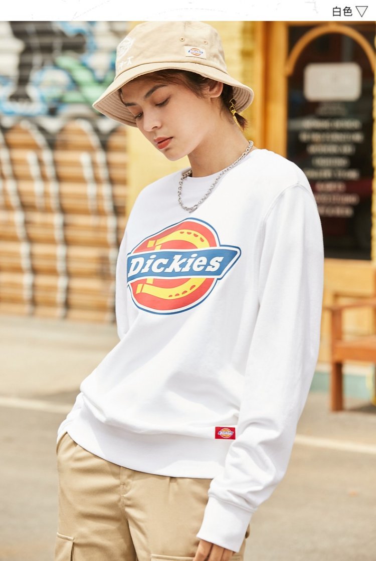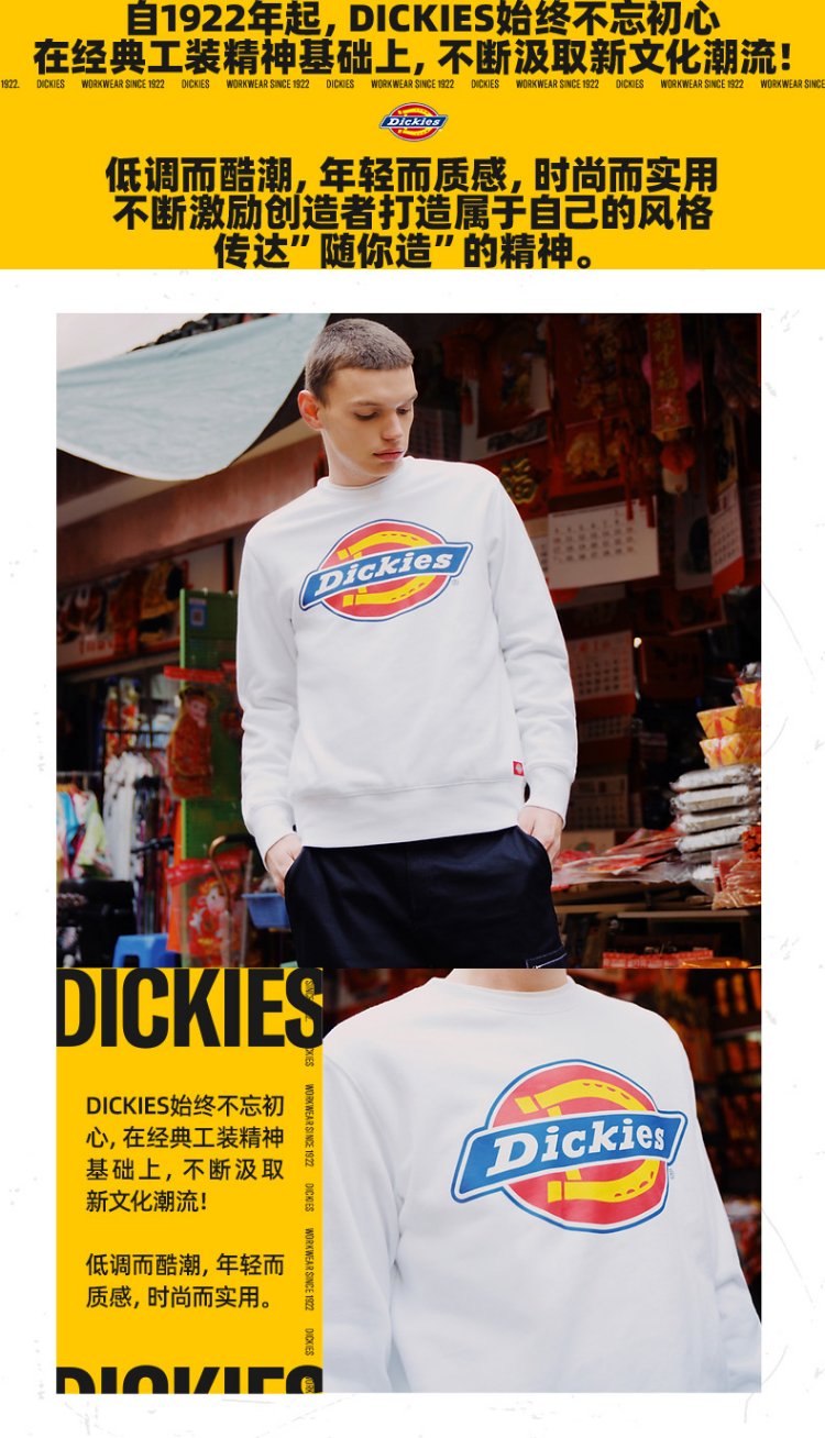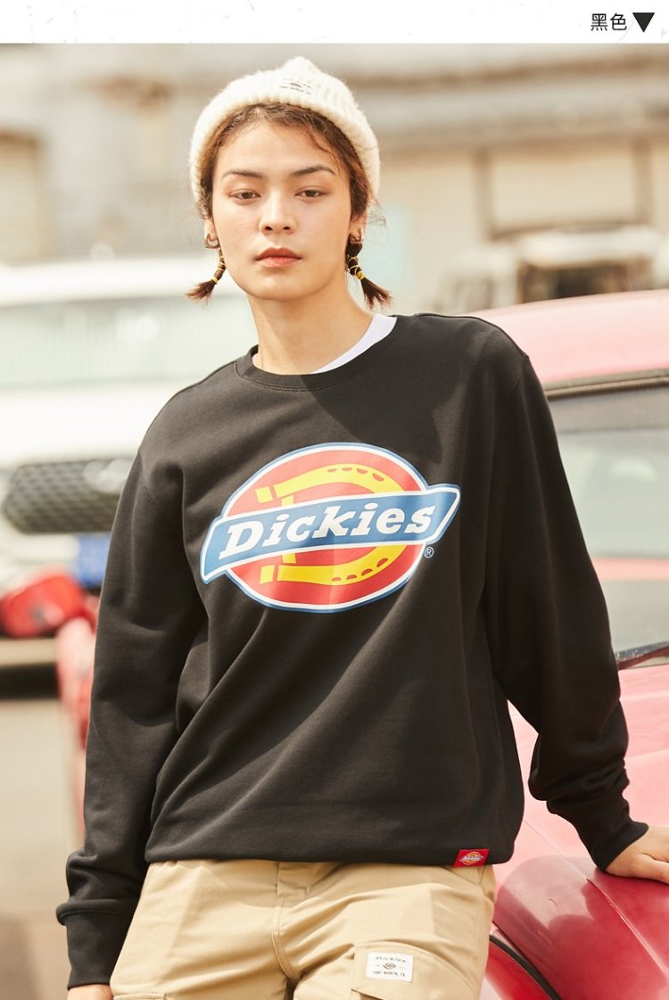 Dickies Autumn Unisex Couple Logo Printed Round Neck Sweatshirt DK007059 Black M