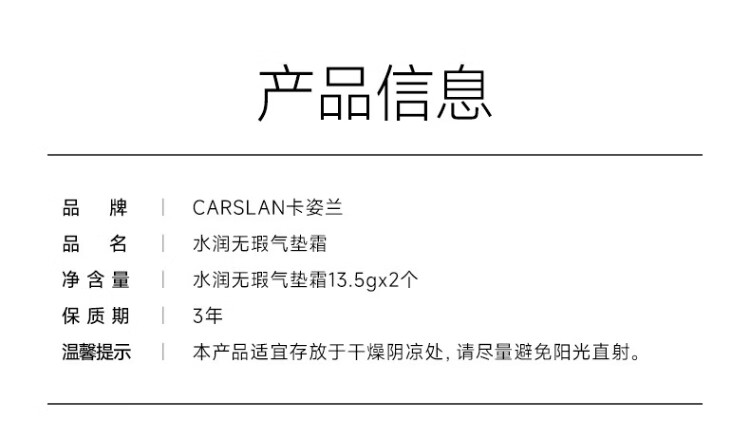 Carslan Snail Cushion BB Cream Sunscreen Foundation Concealer Moisturizing No-Take Off Makeup 02 Satin Color 13.5g*2 Birthday Gift