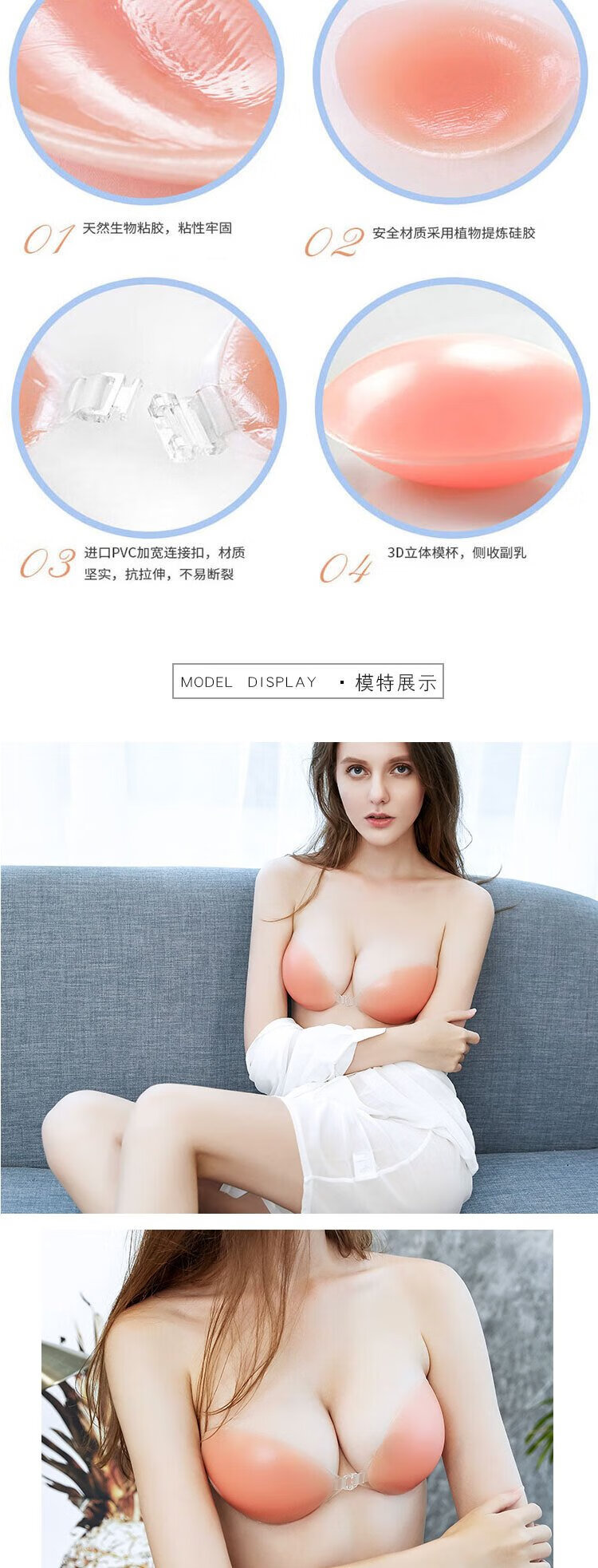 Yezi silicone breast pads for women, anti-exposure bumps, invisible bra straps, wedding dress push-up, special breast pads for small breasts, push-up B cup