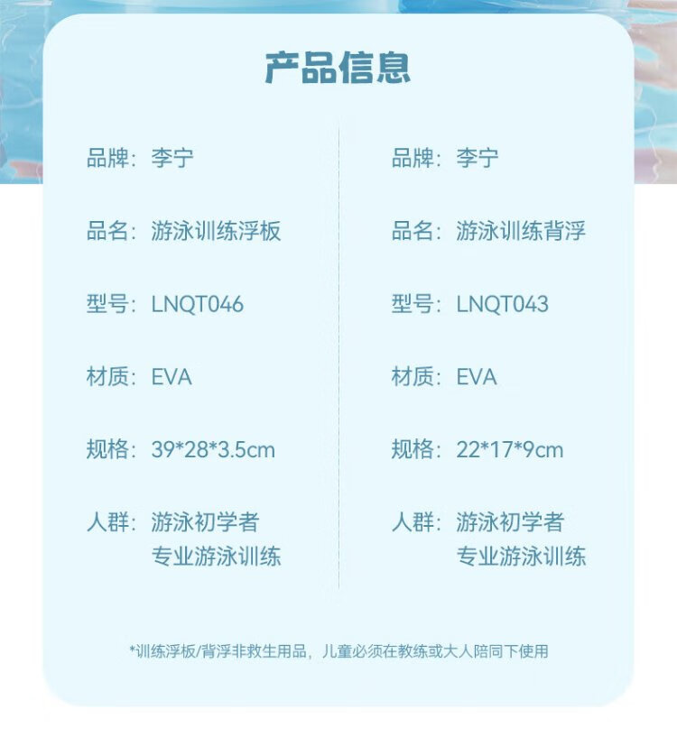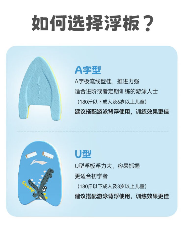 Li Ning (LI-NING) floating board swimming training kick board A-shaped board swimming style practice swimming buoyancy board swimming aid board 0461 blue
