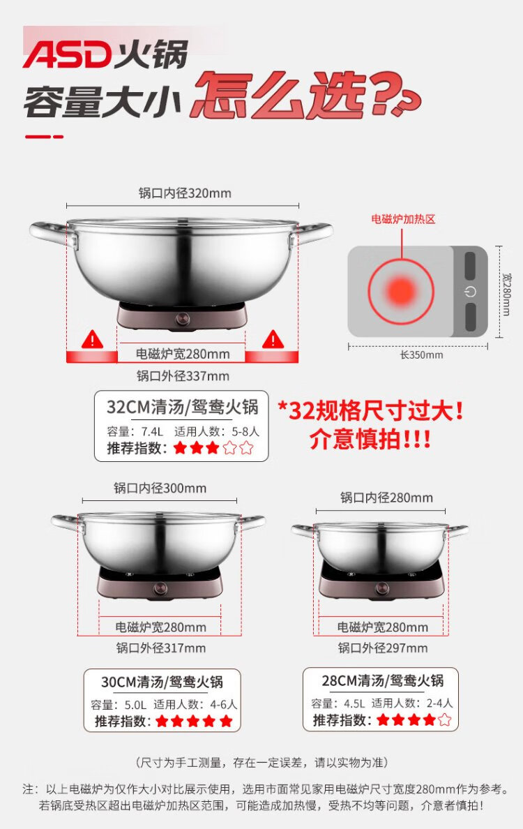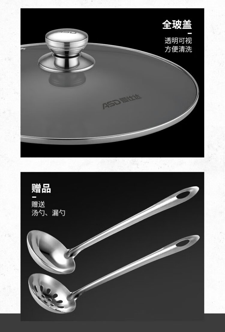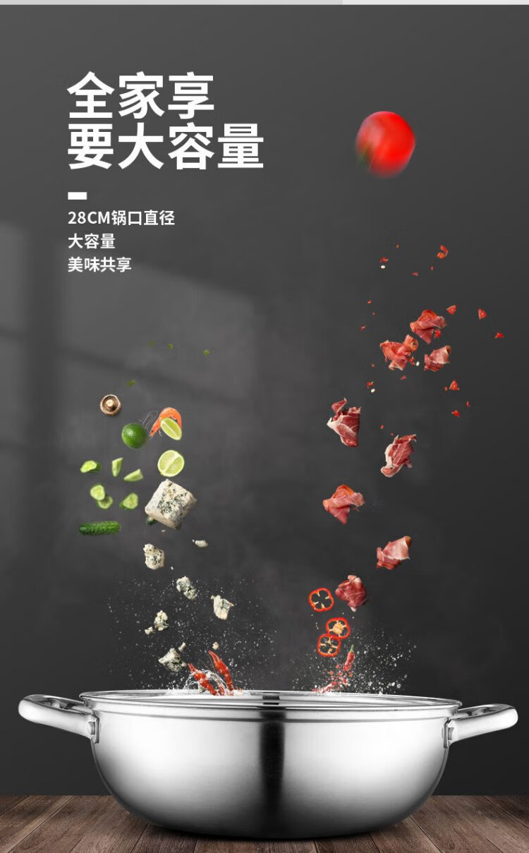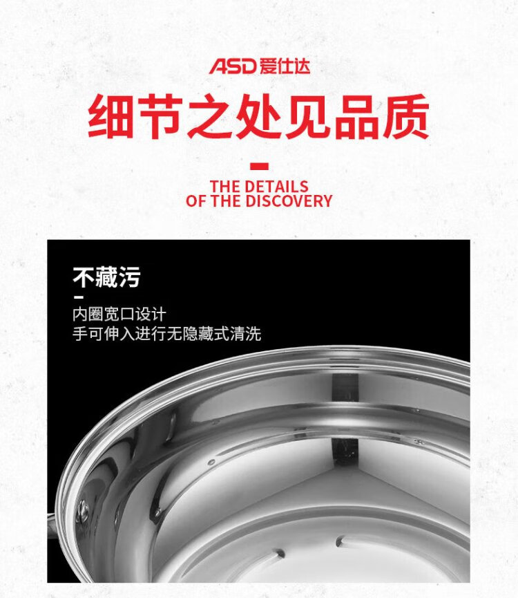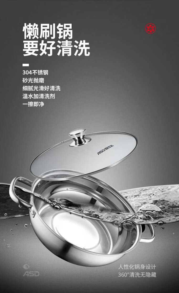 爱仕达 ASD 火锅304不锈钢清汤火锅盆28CM汤锅明火电磁炉通用FS28A6WG