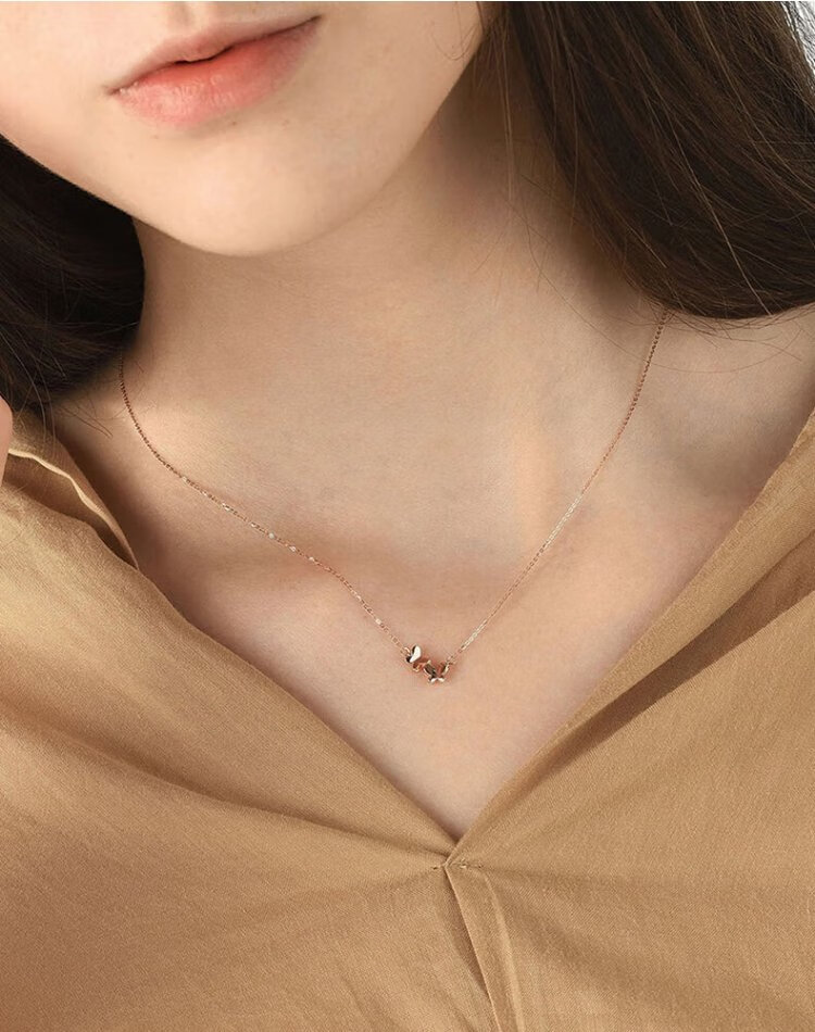 Chow Sang Sang 18K gold rose gold three-dimensional butterfly color gold necklace 91093N45 cm