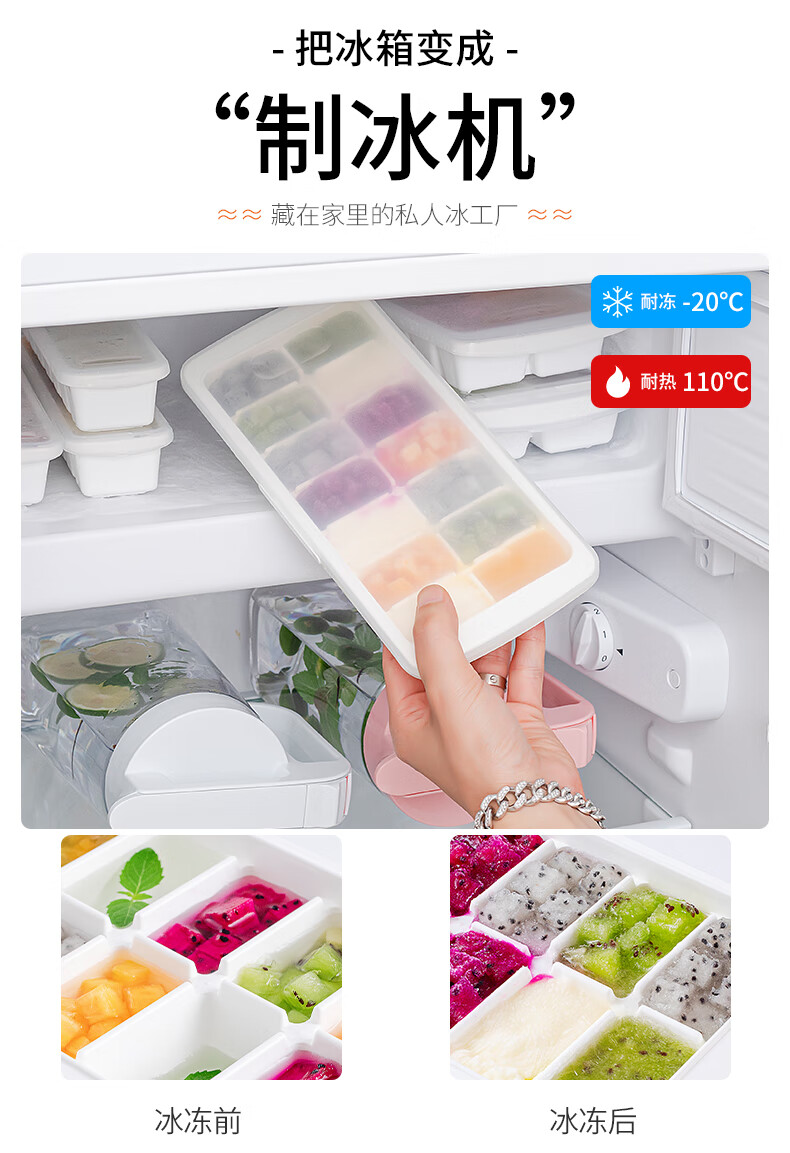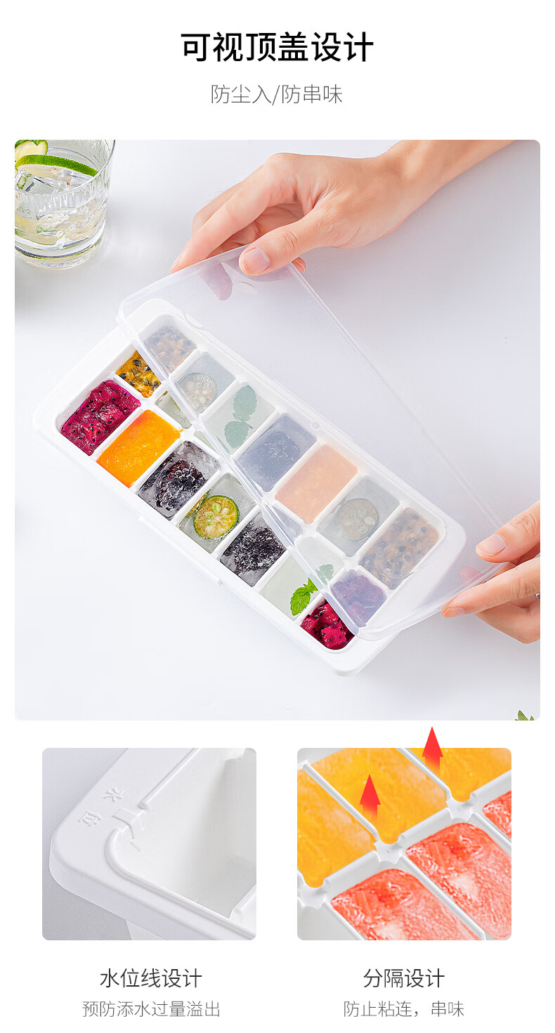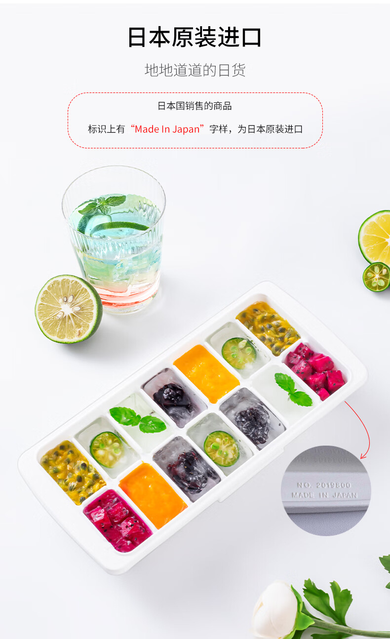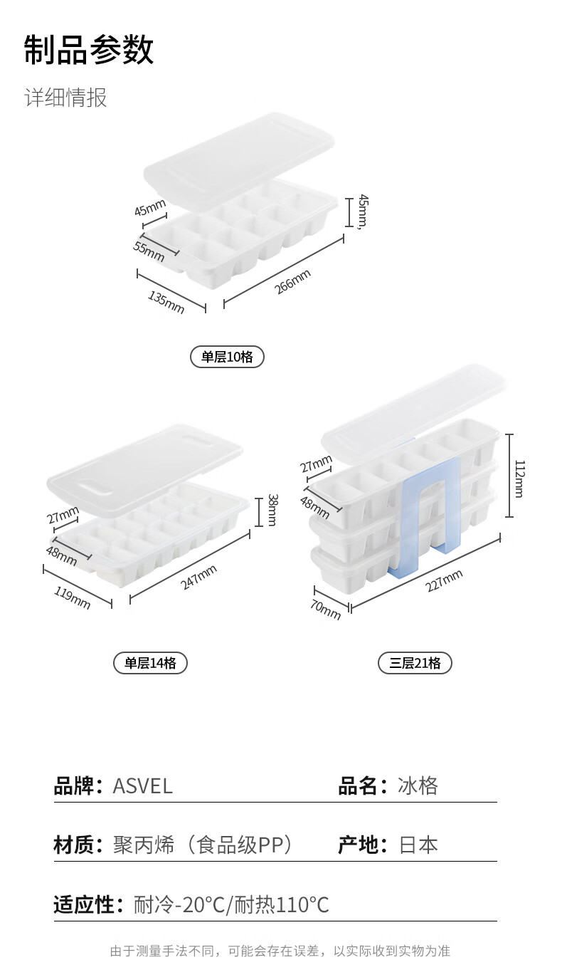 ASVEL ice cube mold, ice tray, frozen ice box, household ice cube making artifact with lid, 14 grids, imported from Japan