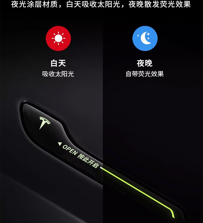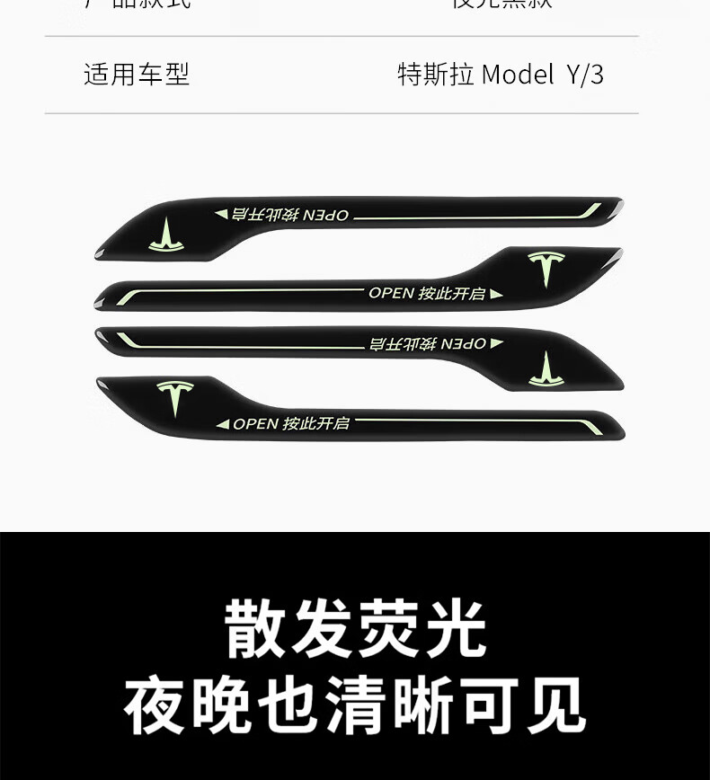 Pilot luminous door handle sticker Tesla Model Y/3 handle luminous door opening warning anti-scratch decoration