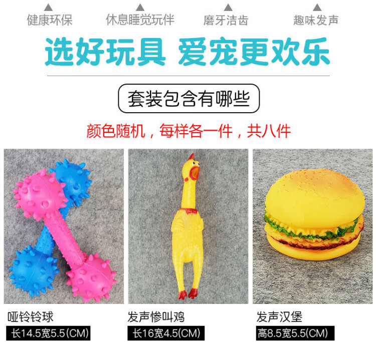 Gasgo Pet Dog Toy Dog Golden Retriever Teddy Interactive Frisbee Teething Relief and Sounding Set Dog Toy 8-piece Set
