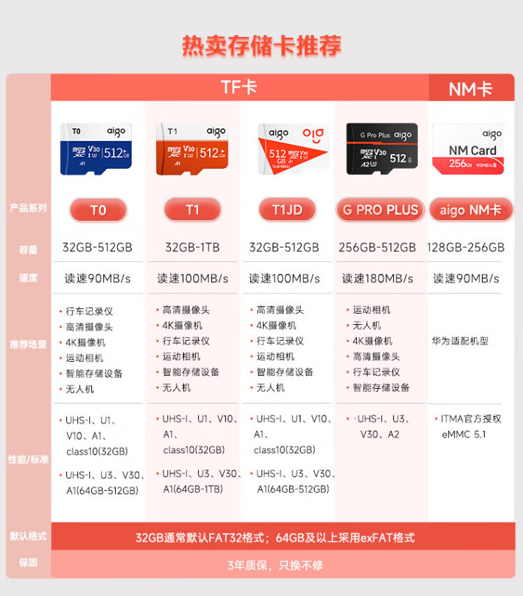 爱国者(aigo)32GB TF(MicroSD)存储卡 U1 A1 V30 4K 监控摄像头 行车记录仪专用高速内存卡 T1 读速100MB/s