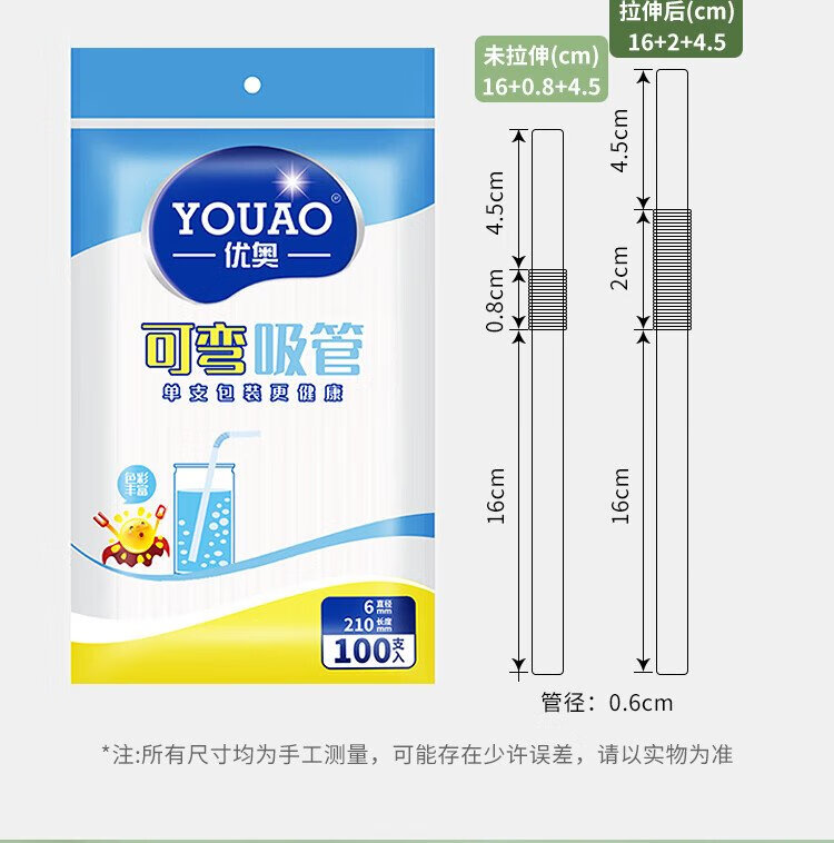 YOUAO straws, disposable individually packaged straws, 100 pieces, bendable straws, straws for pregnant women and children