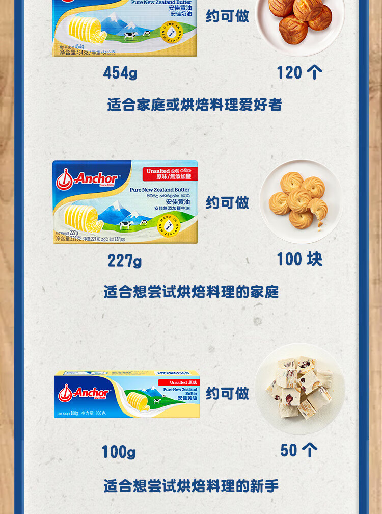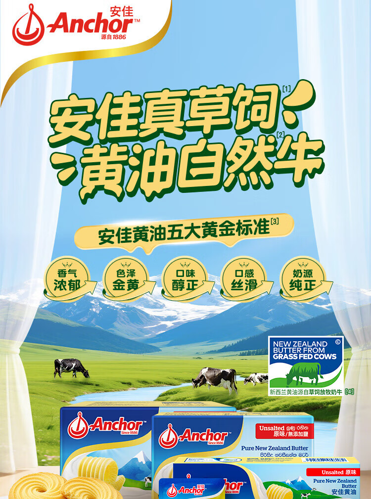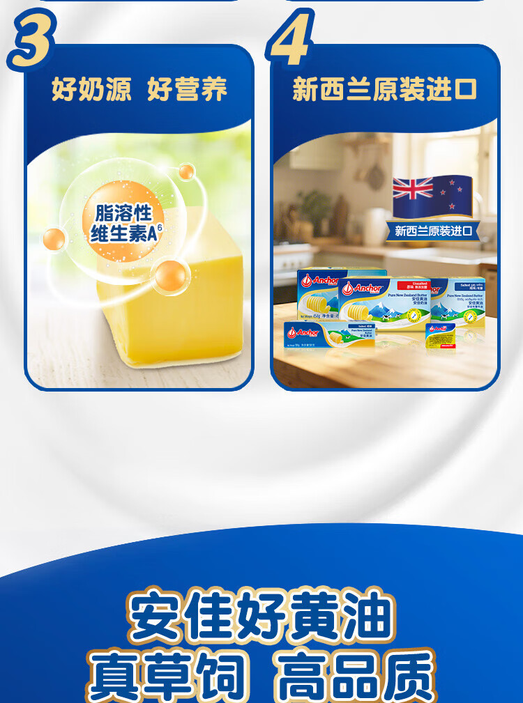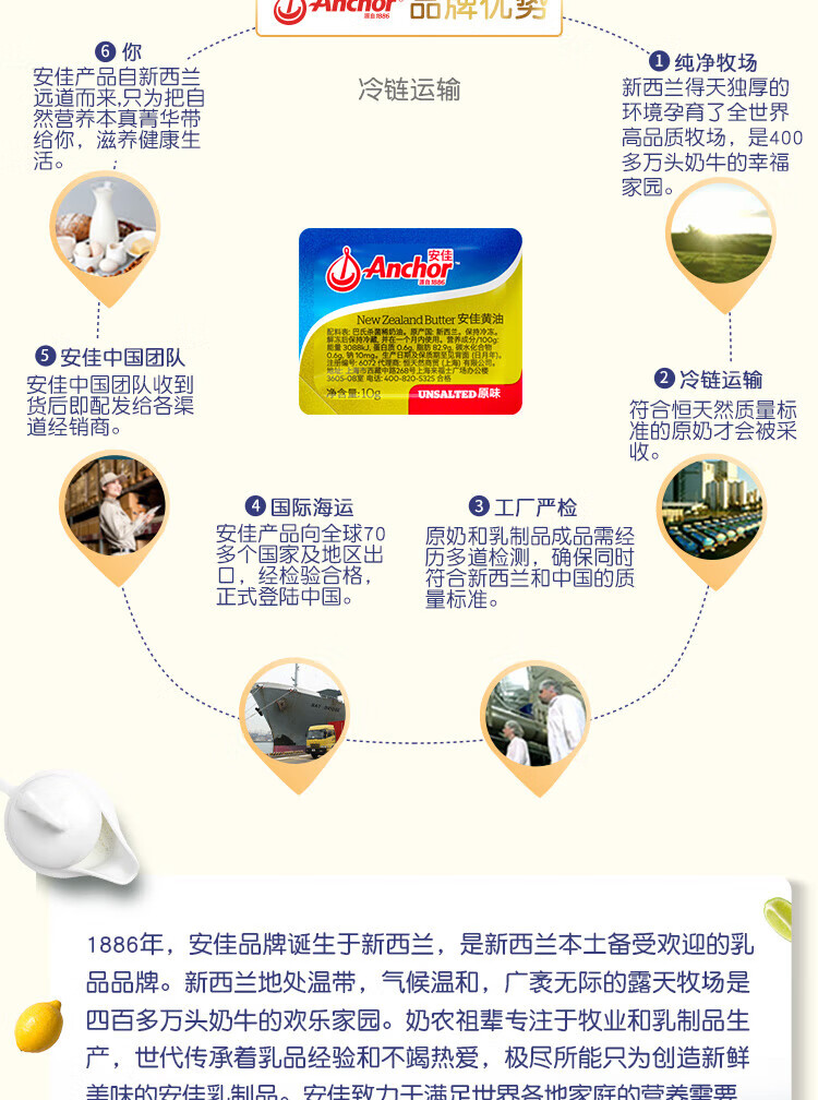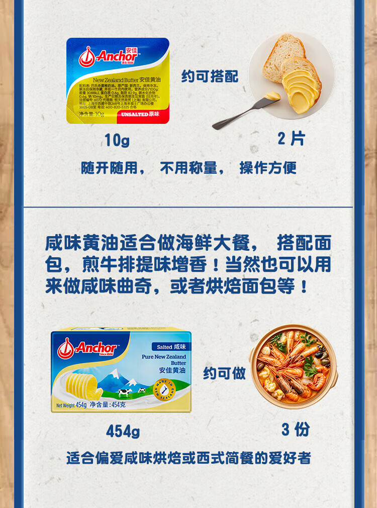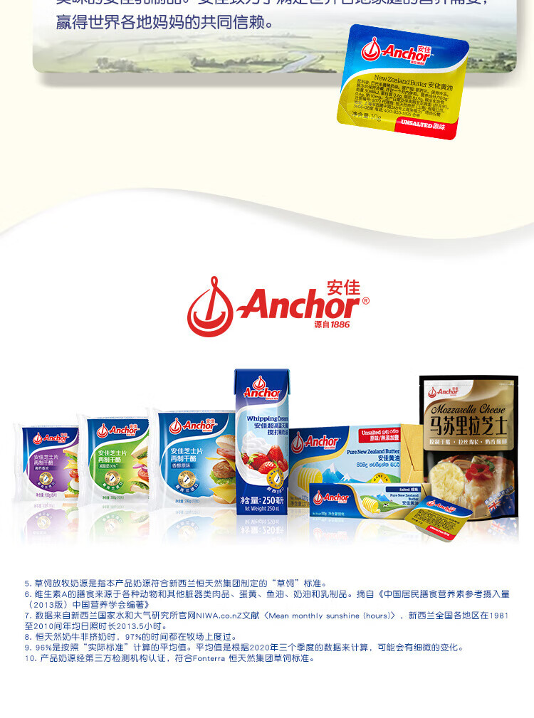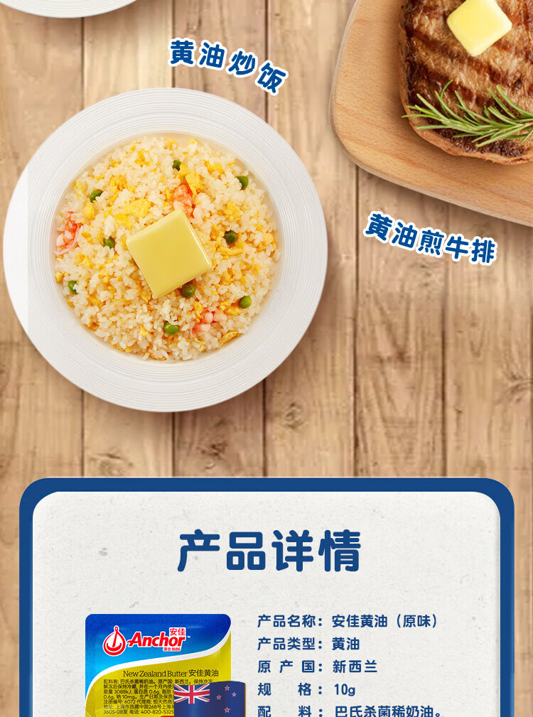 Anchor imported from New Zealand animal butter original flavor without added salt 10g*20 breakfast small grain packaging