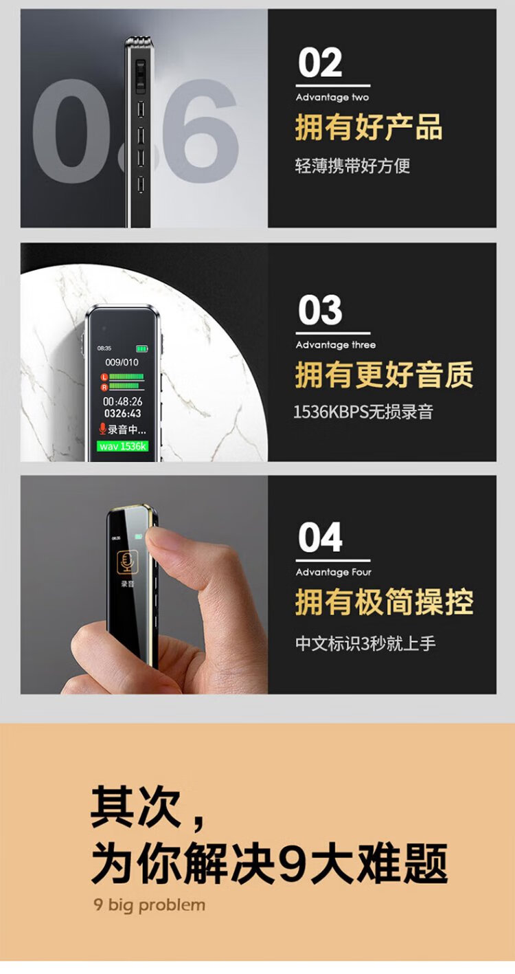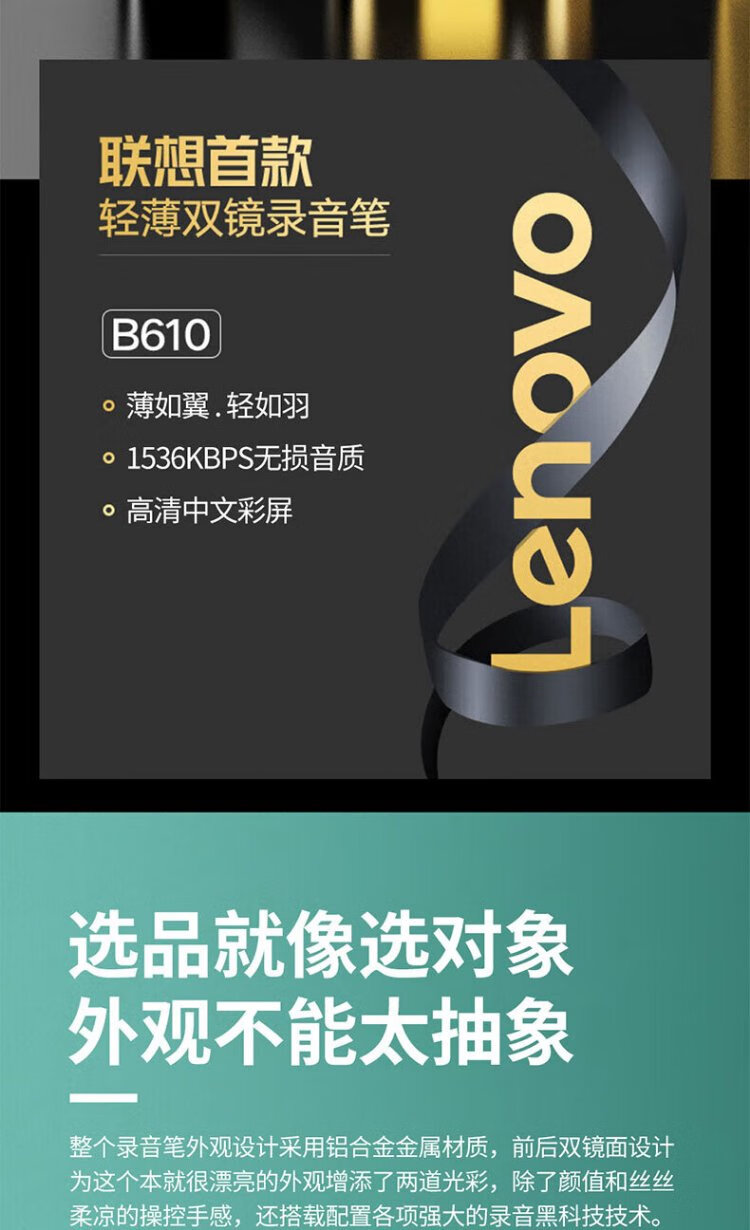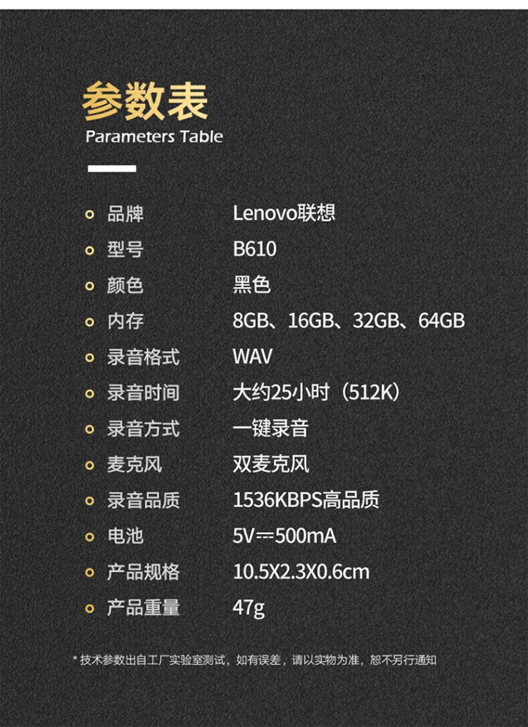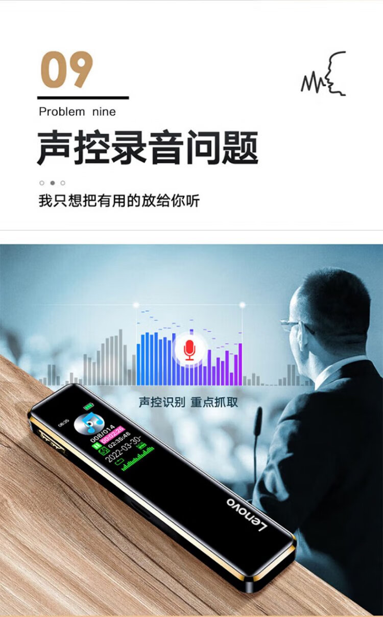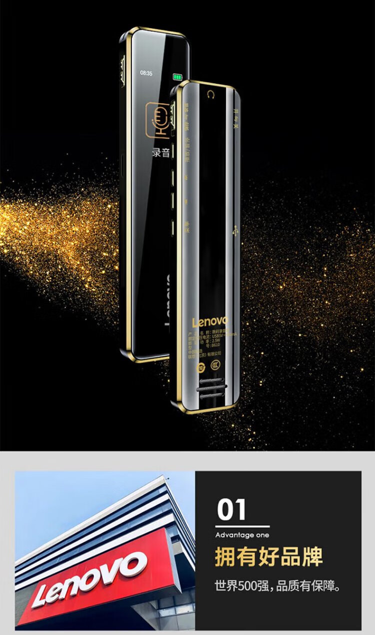 Lenovo recorder B610 32G professional high-definition long-range voice-controlled noise reduction ultra-long standby recorder student learning business interview conference training