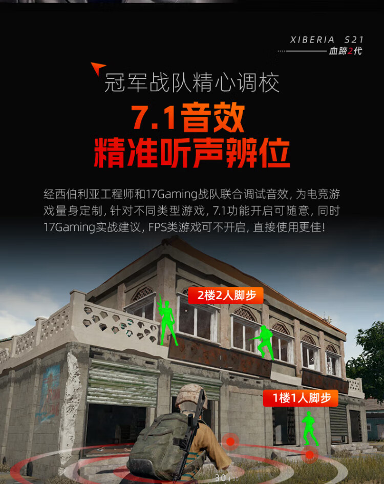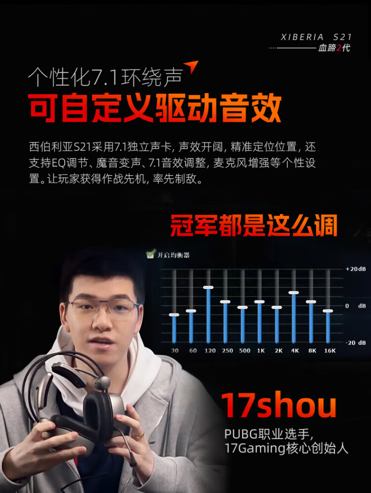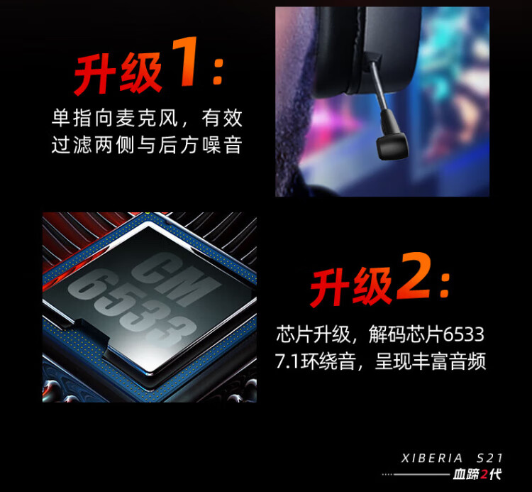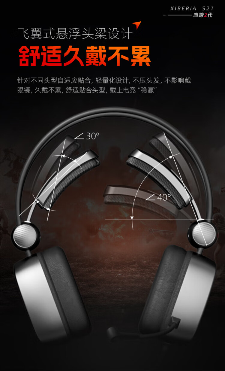 Siberia (XIBERIA) S21 gaming headset, head-mounted computer headset, 7.1-channel, no-nonsense headset, iron silver gray, upgraded to 2nd generation, suitable for Delta operations