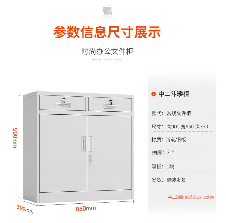 Xinjing file cabinet office iron cabinet low cabinet storage cabinet with lock information cabinet steel tool cabinet two drawer cabinet 0.5