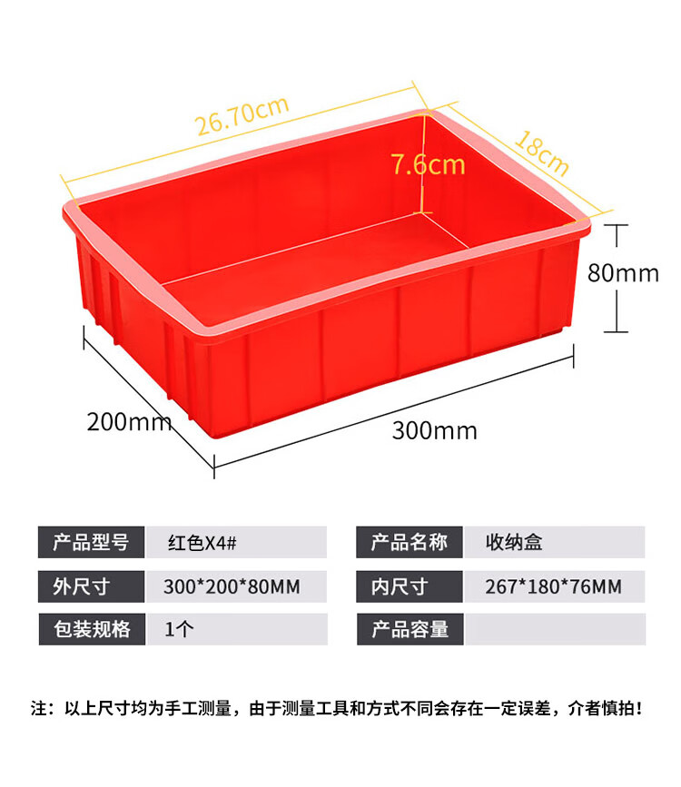 Guxiang plastic box rectangular material box turnover box component box storage box tool box parts box small square box X4# red 300*200*80mm