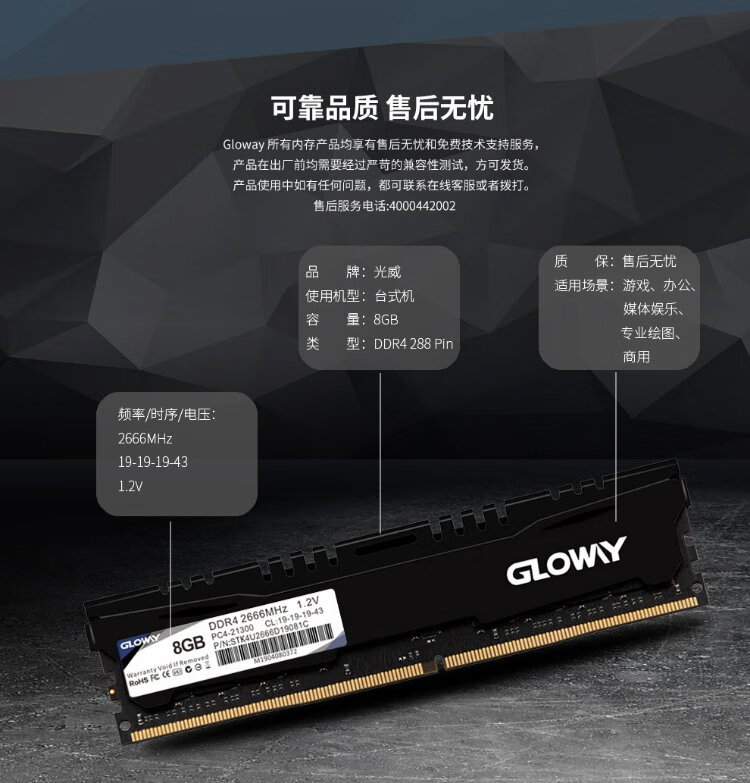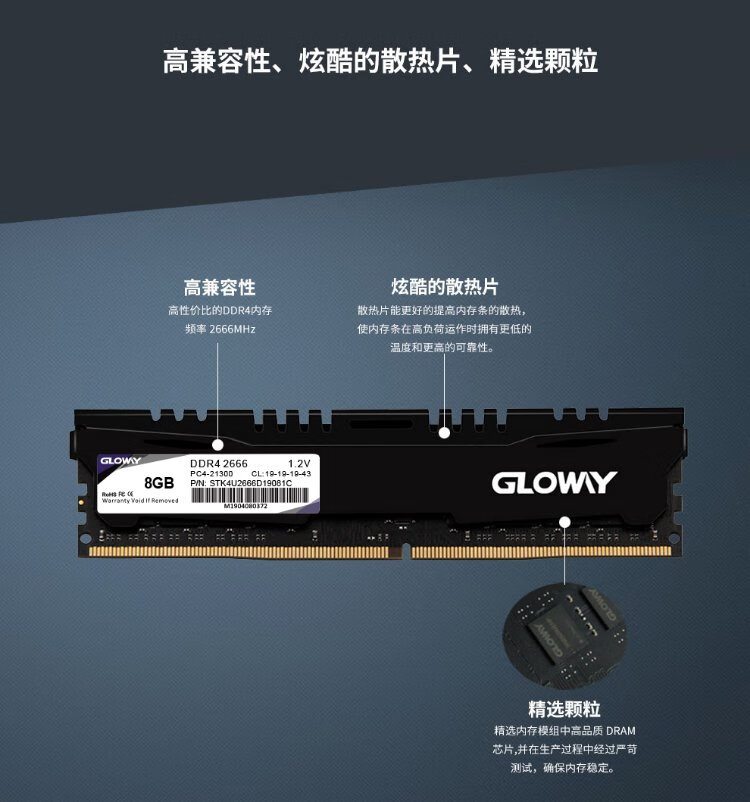Gloway 8GB DDR4 2666 Desktop Memory Stick Vest Stick Selected Chips CL19