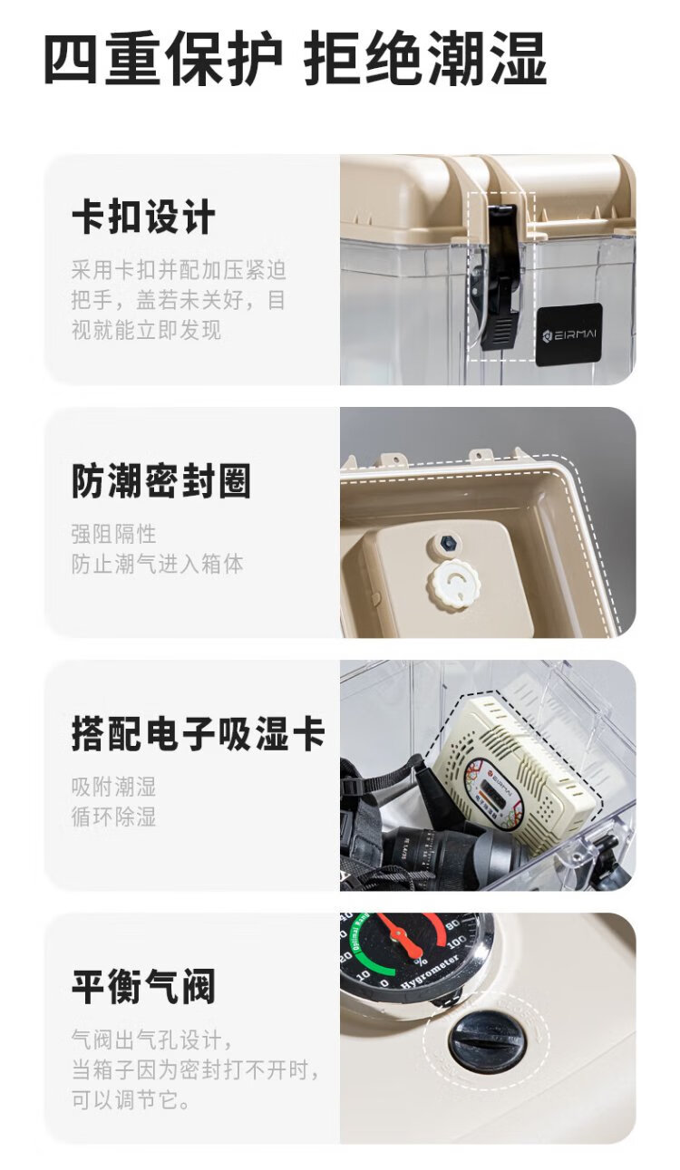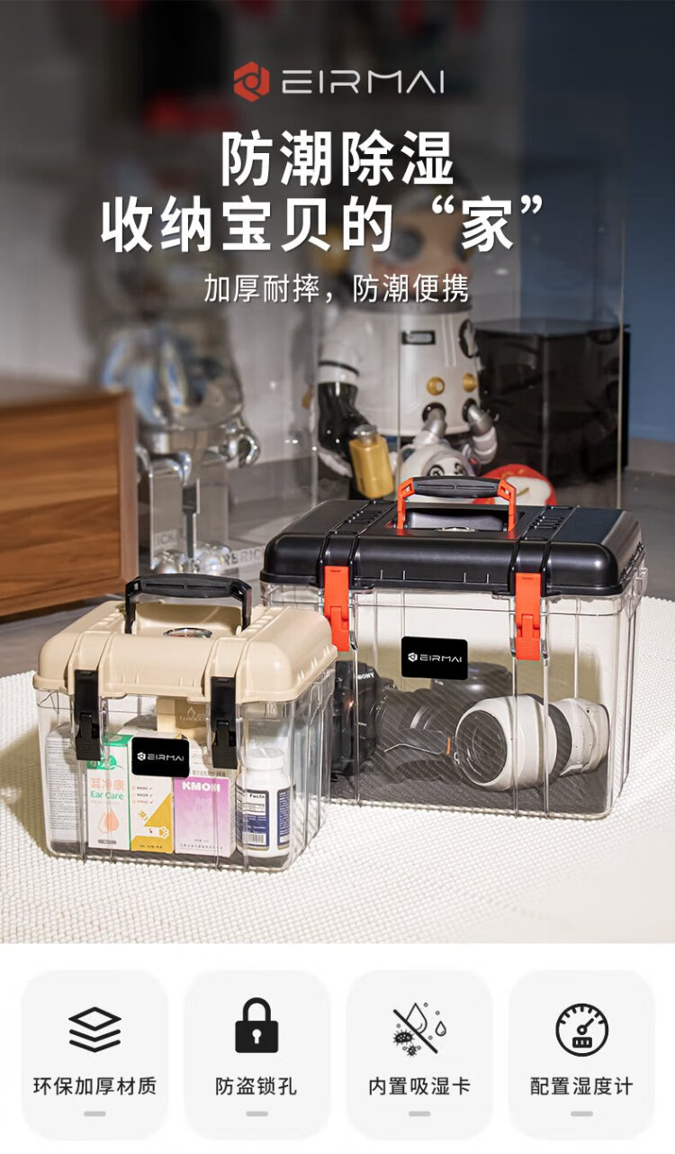 EIRMAI R15 SLR camera drying box, moisture-proof box, sealed lens electronic box, small size, portable, built-in moisture absorption card, black
