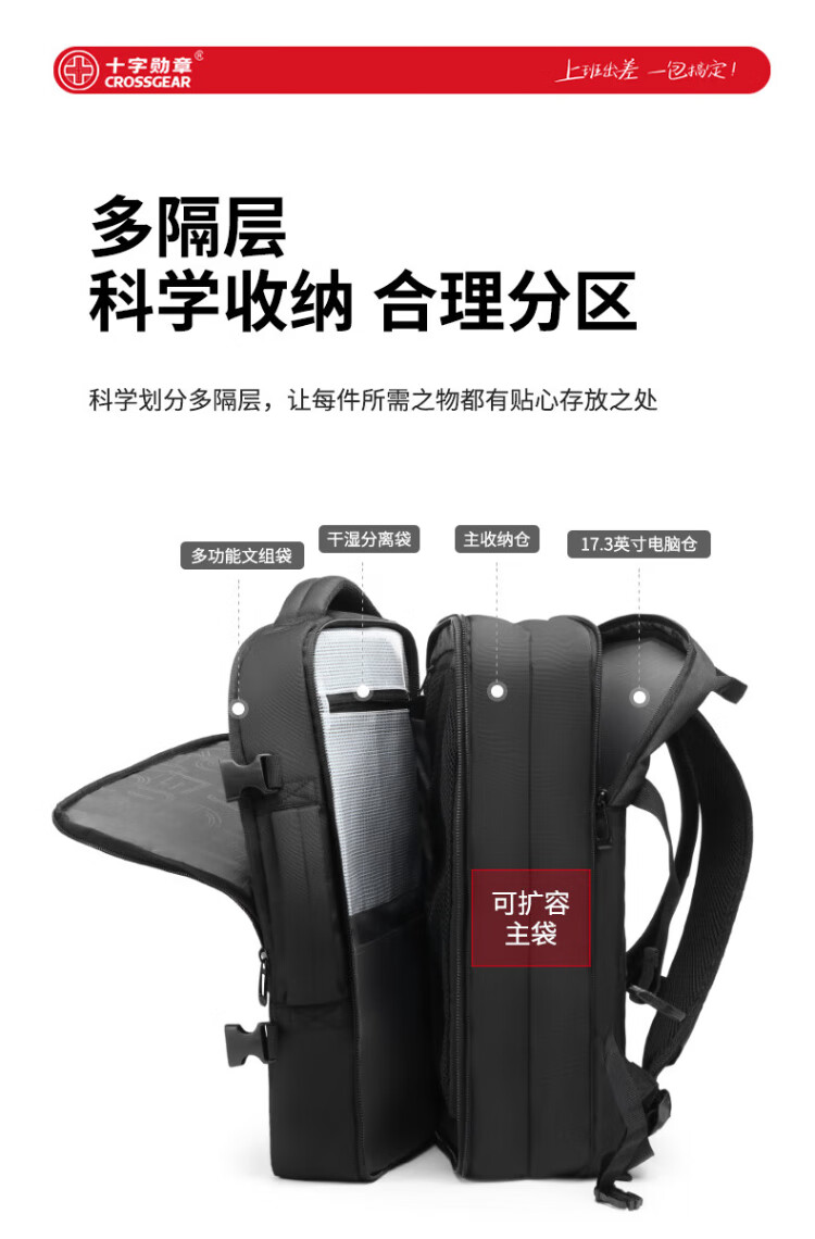 CROSSGEAR Cross Medal Business Backpack Men's 17.3-inch Computer Bag Expanded Large Capacity Business Travel Student School Bag