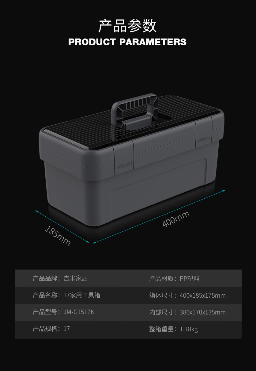 Jimmy Home Thickened and Reinforced Tool Box Home Car Hardware Electrician Portable Sundries Storage Box JM-G1517N