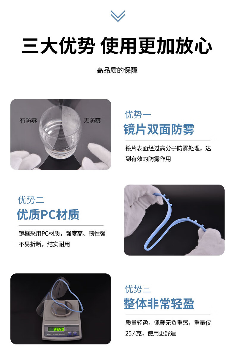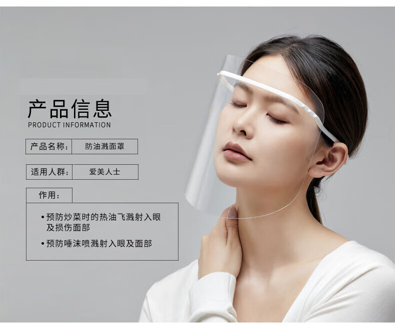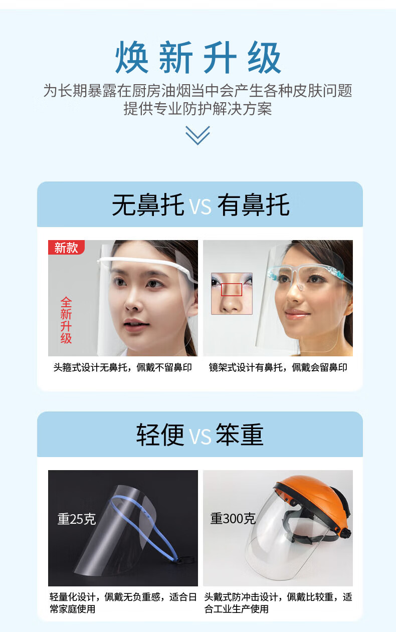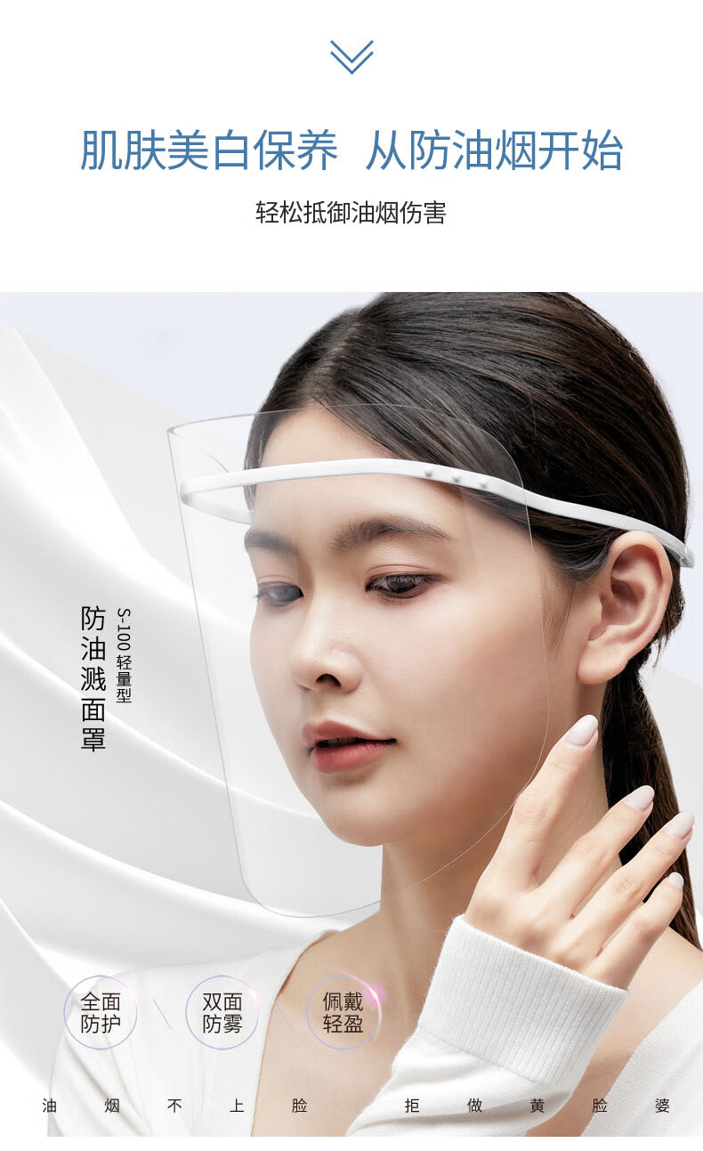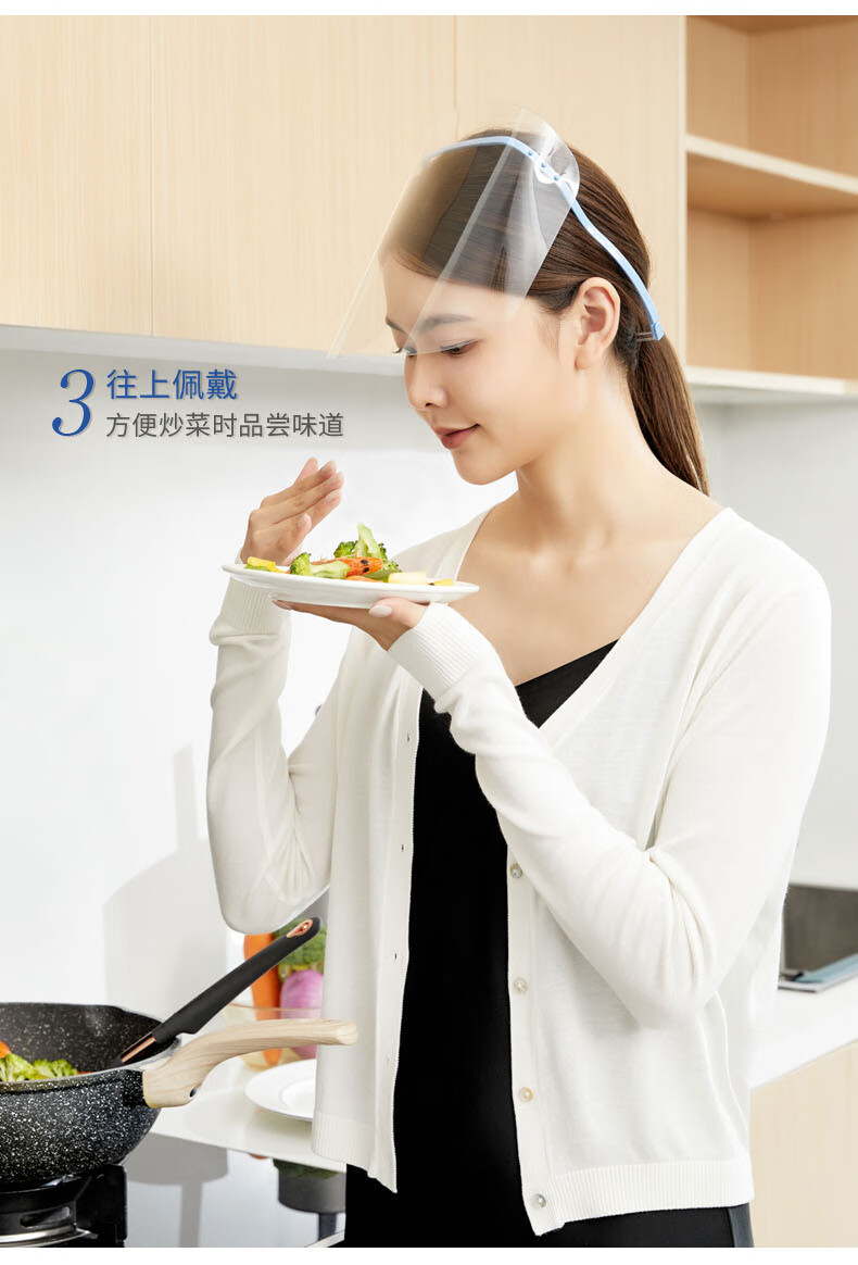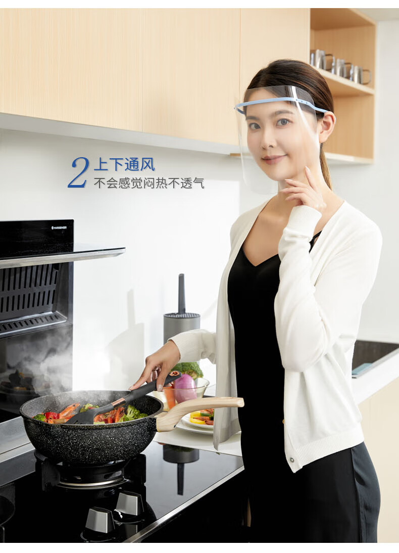 Transparent protective visor, double-sided anti-fog, anti-oil fume mask, anti-splash, anti-scald, set of blue frames
