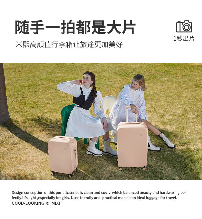 Mi Xi's high-looking trolley suitcase, women's travel bag, lightweight password boarding case 20 inches light dogwood pink