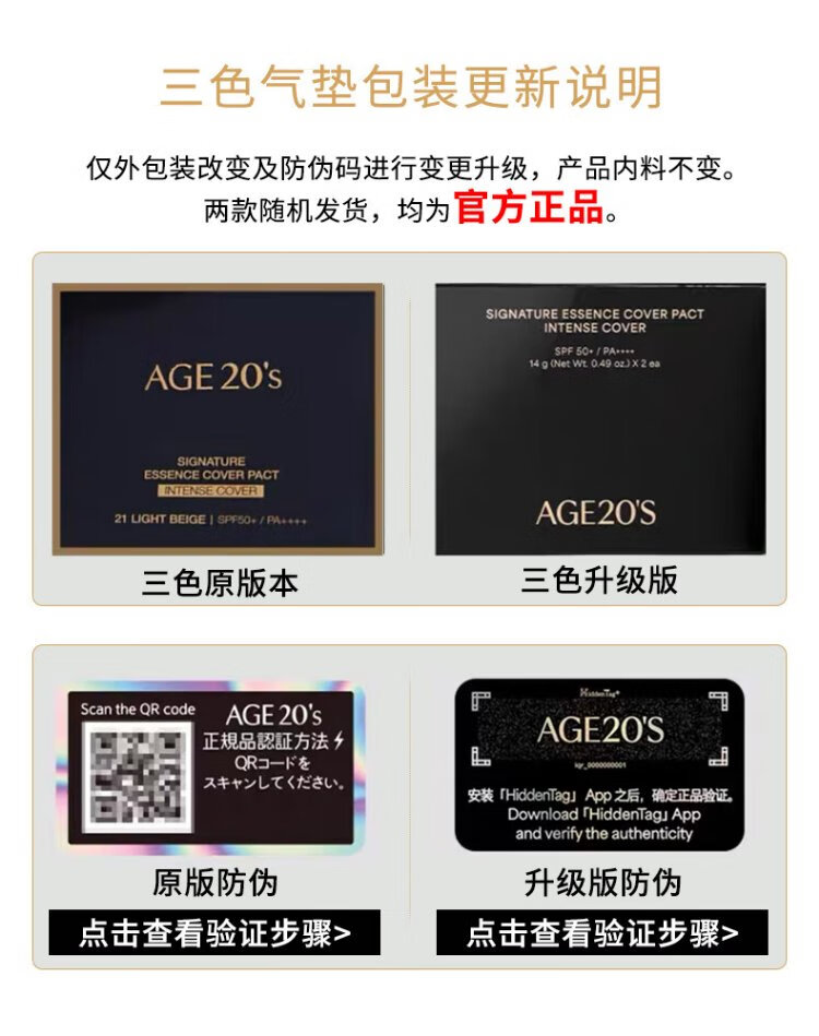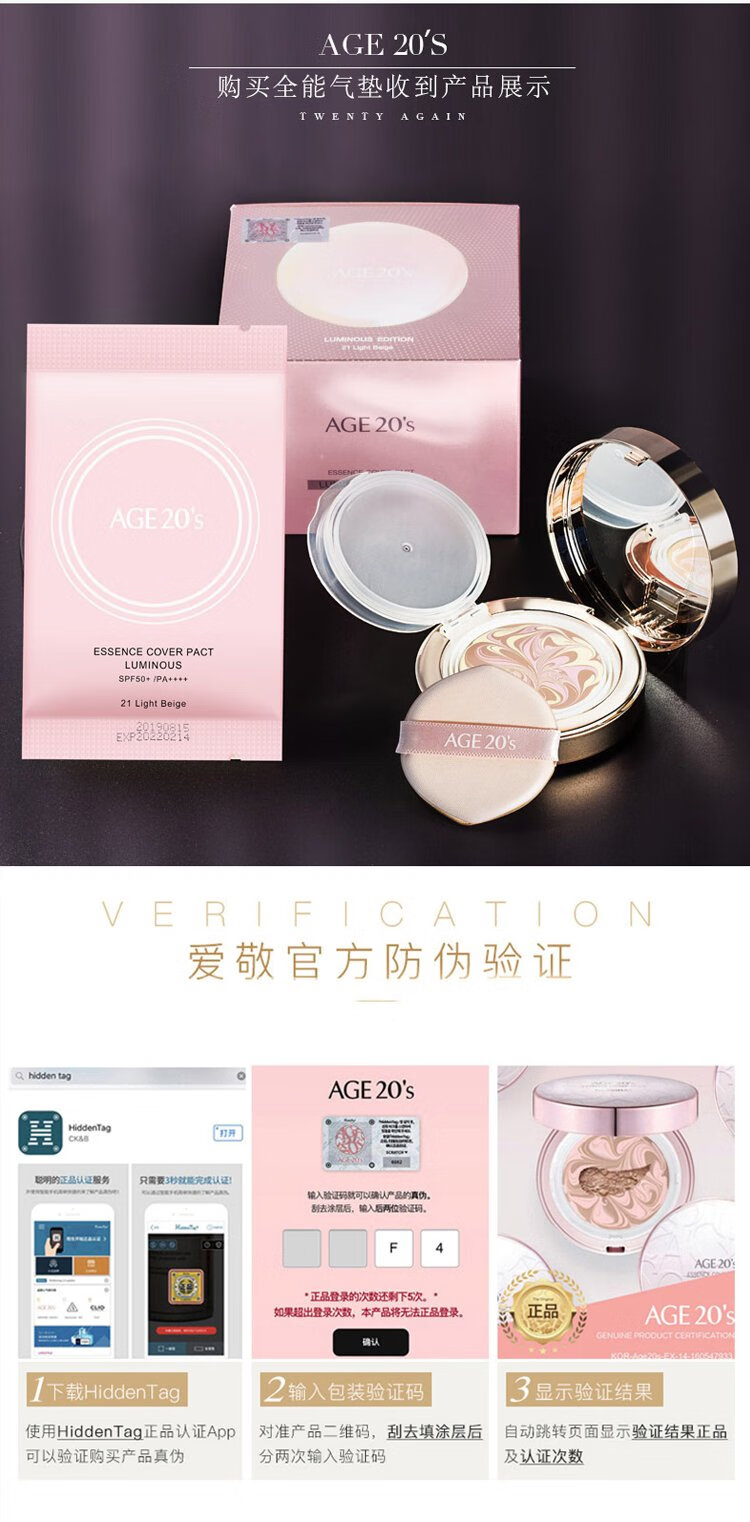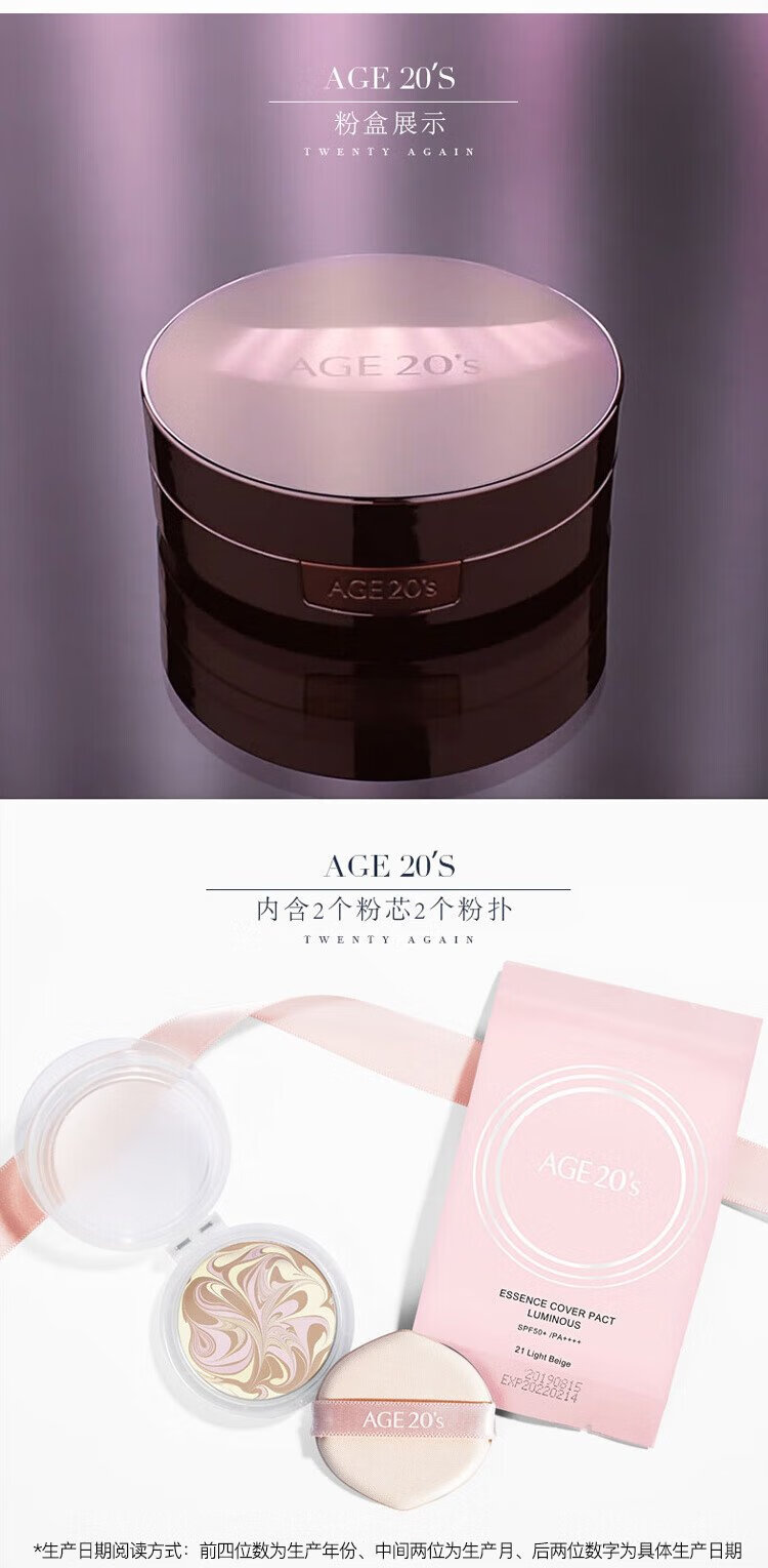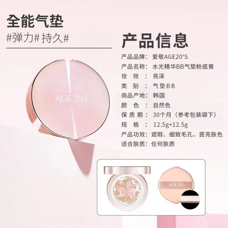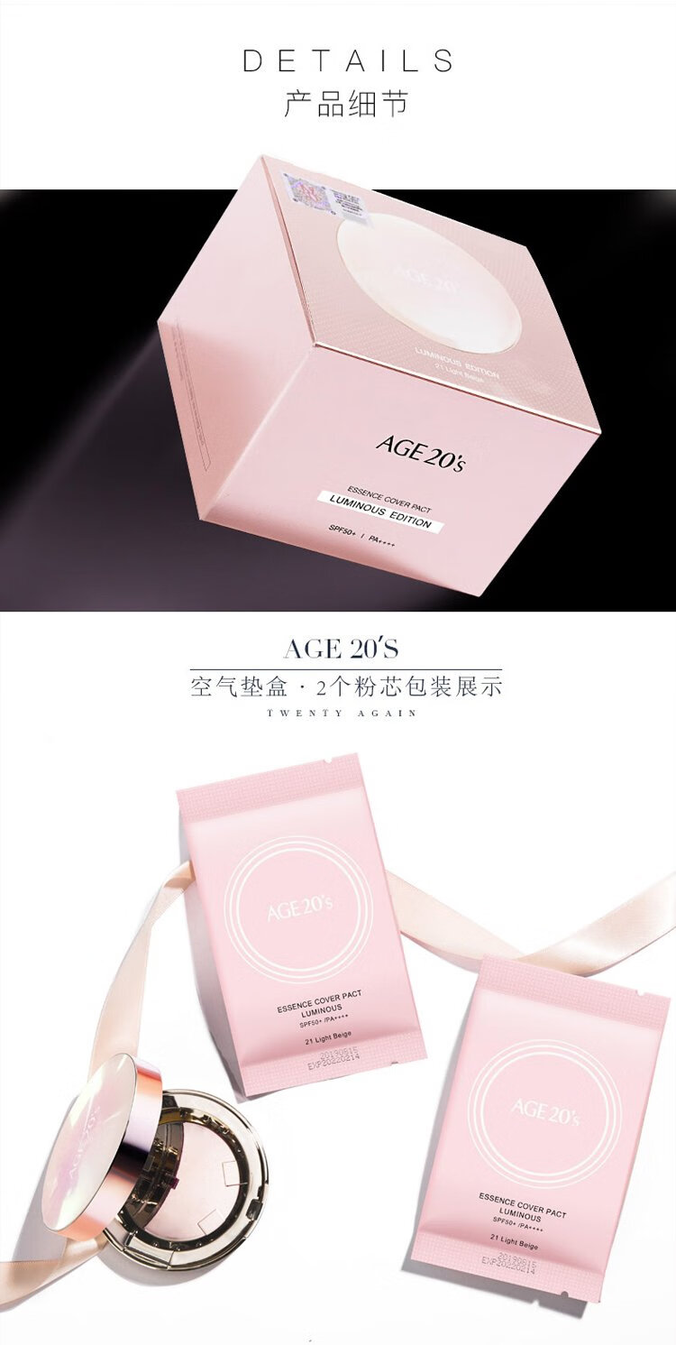 Aekyung Age 20 s Aekyung three-color all-purpose air cushion BB cream sunscreen concealer sunscreen foundation No. 21 SPF50+12.5g*2 gift
