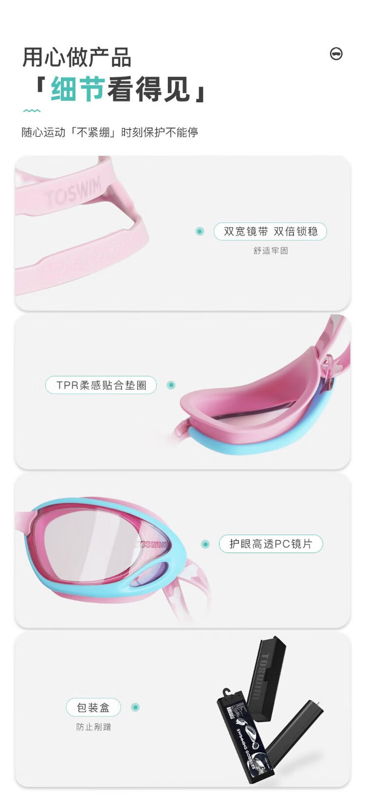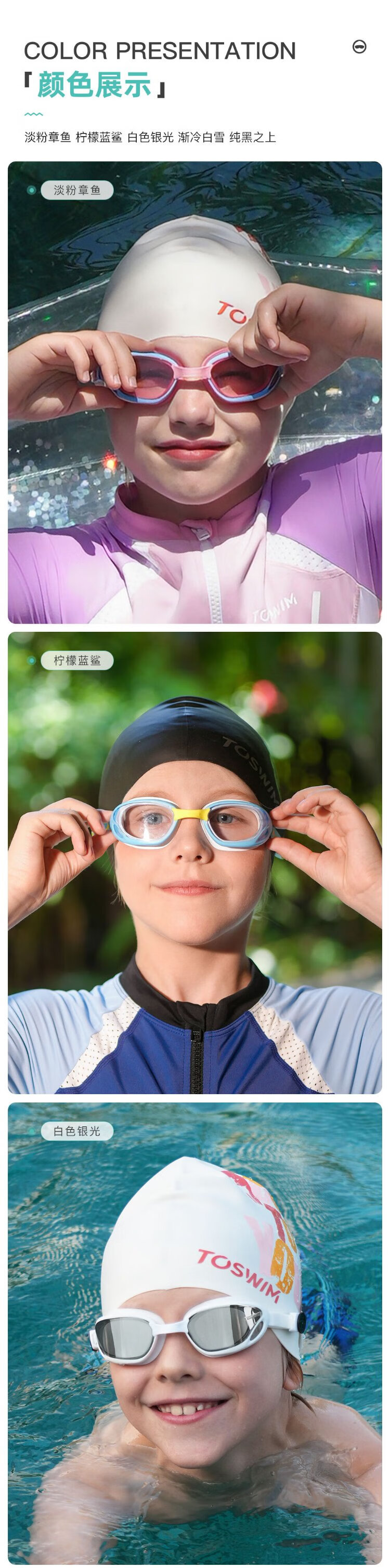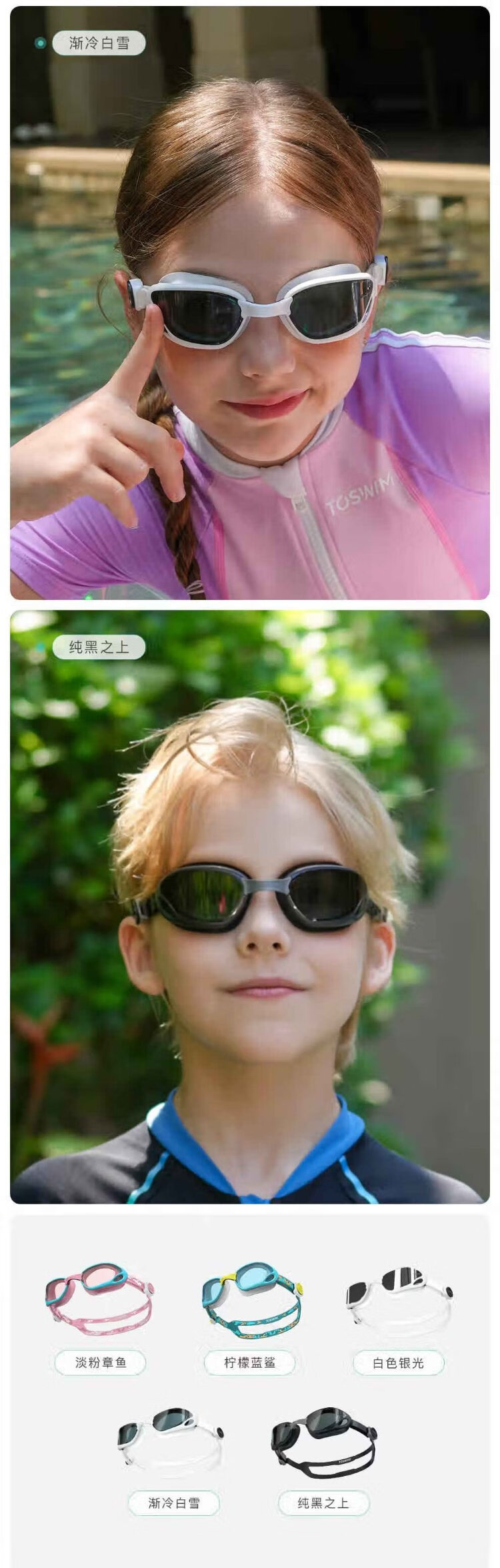 TOSWIM children's swimming goggles HD anti-fog waterproof comfortable fit swimming training glasses swimming goggles light pink octopus