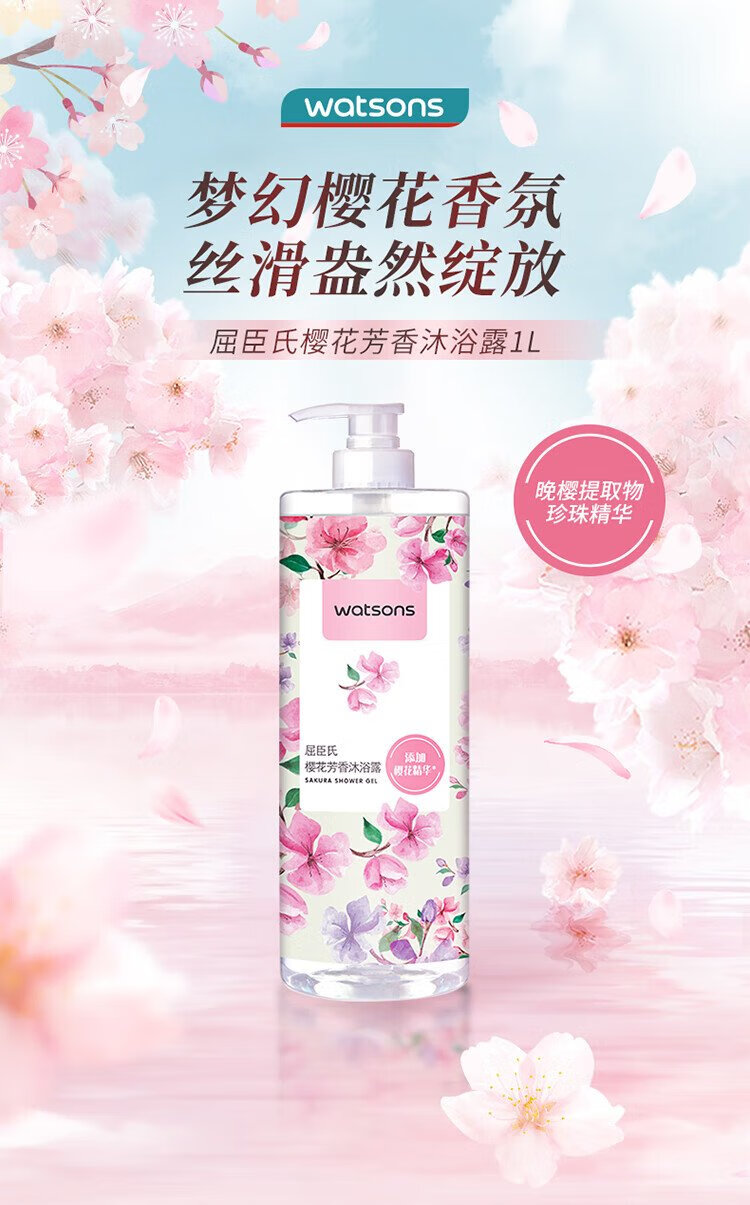 Watsons Sakura Elegant Shower Gel 1L (Sakura Essence, Pearl Powder Essence, Gentle Cleansing)