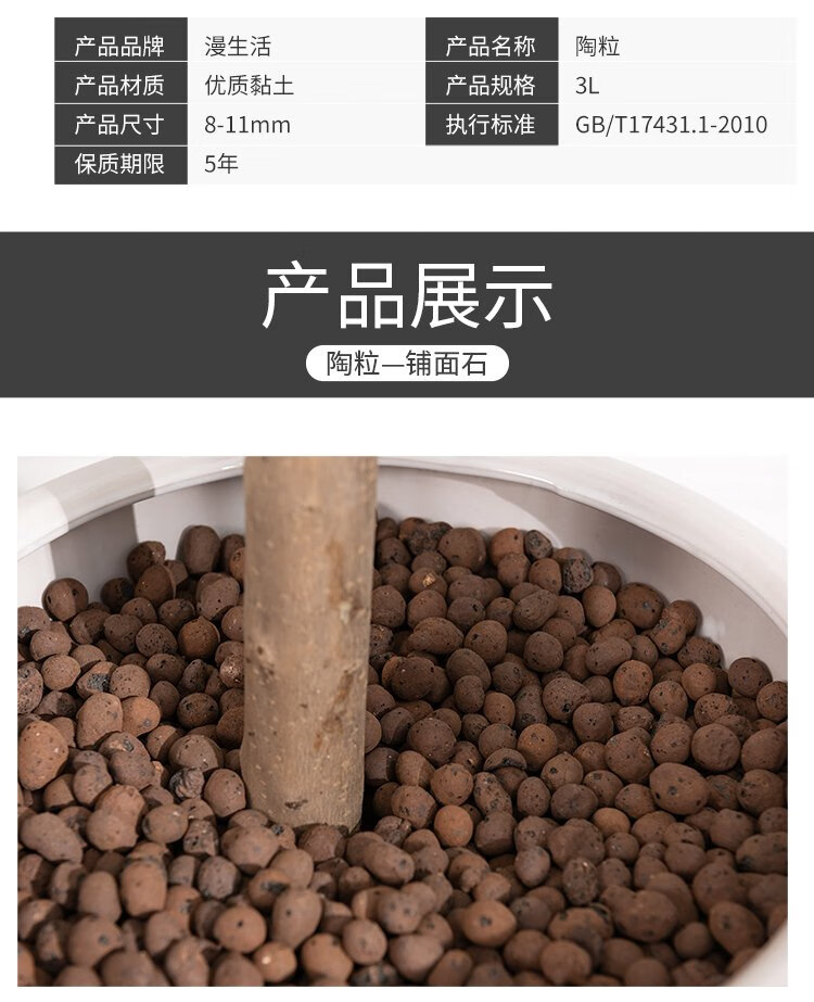 Manlife small ceramsite 3L flower pot with a diameter of about 8-11mm, breathable, water-retaining and heat-insulating hydroponic soilless cultivation matrix green plants