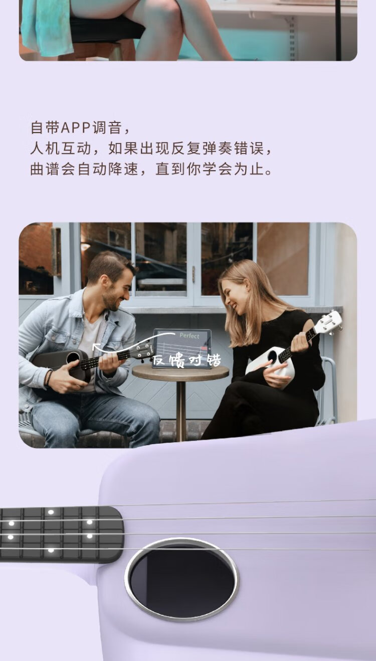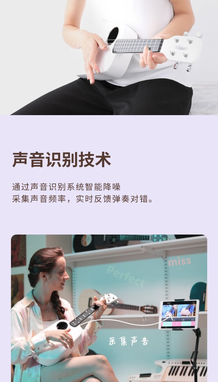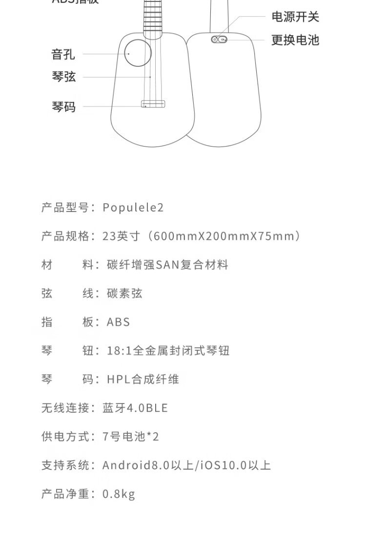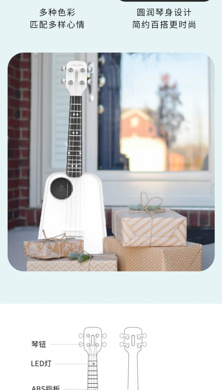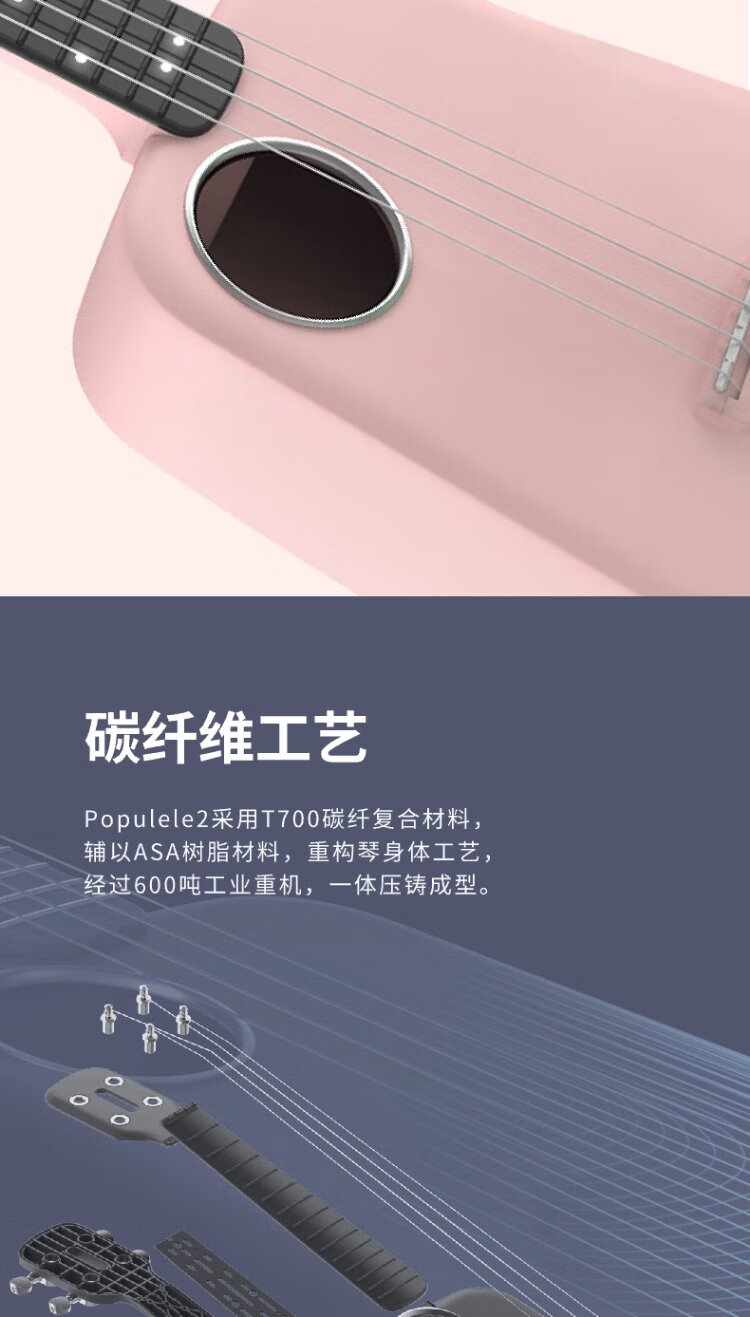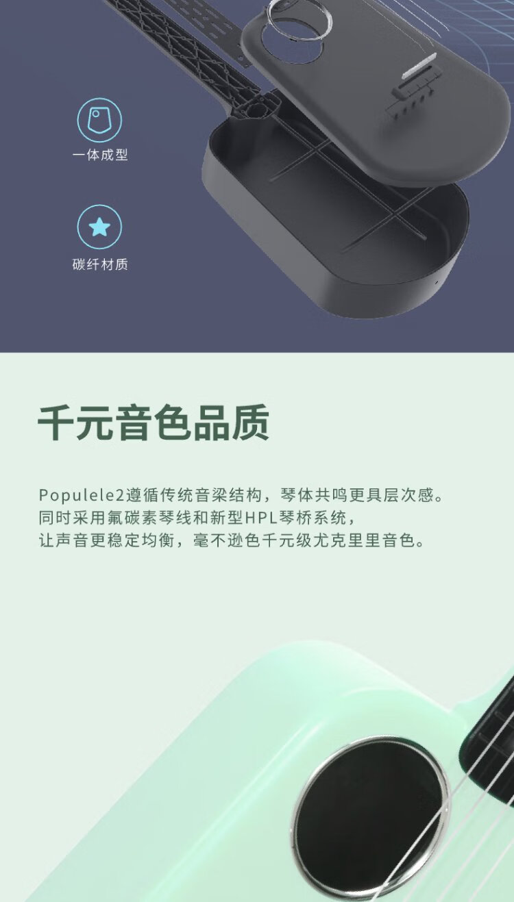 Music Code Populele2 Smart Ukulele Adult Children's Small Guitar Beginner Carbon Fiber M1 White