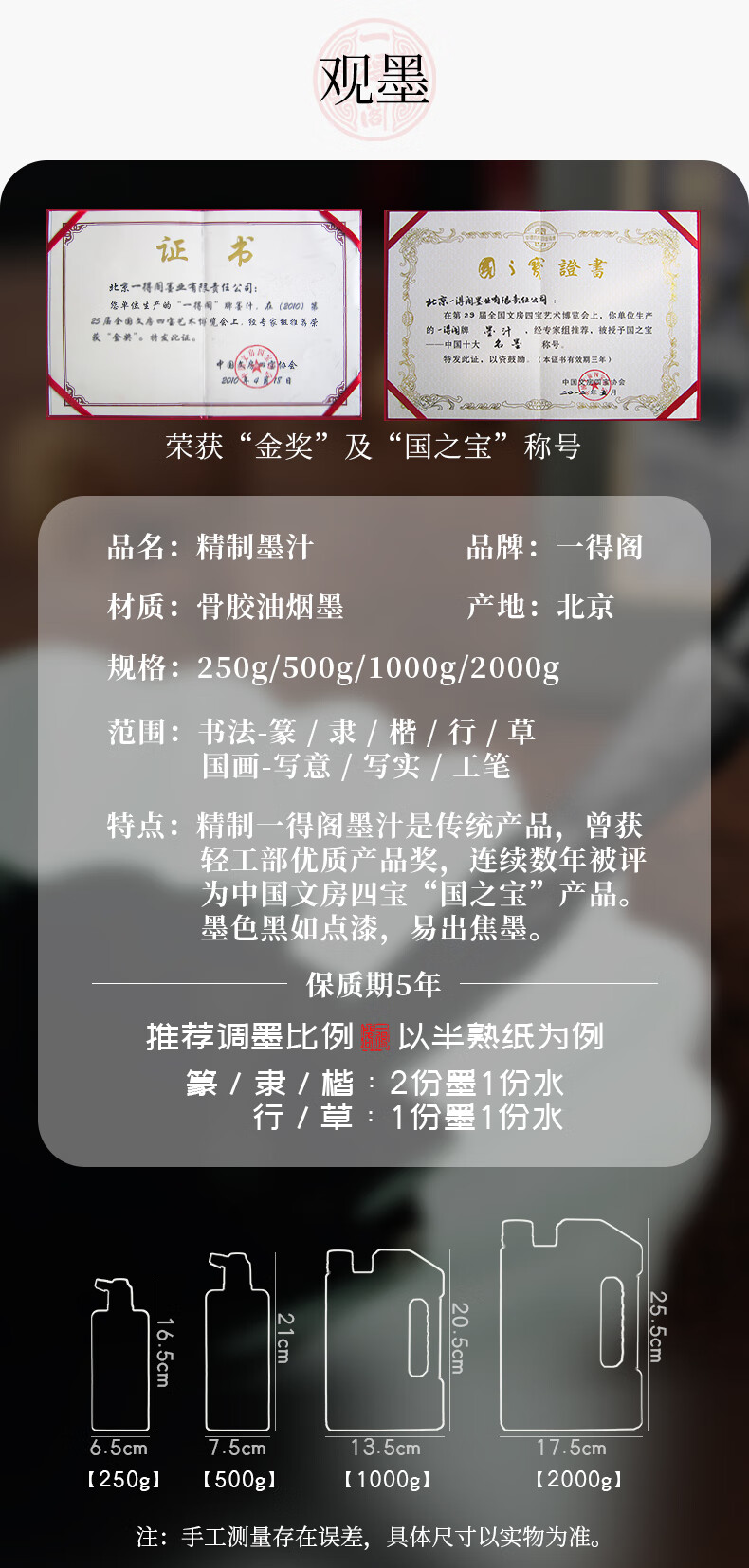 一得阁墨汁精制墨汁文房四宝书法国画初学者墨汁 创作墨汁可装裱250g热门商品