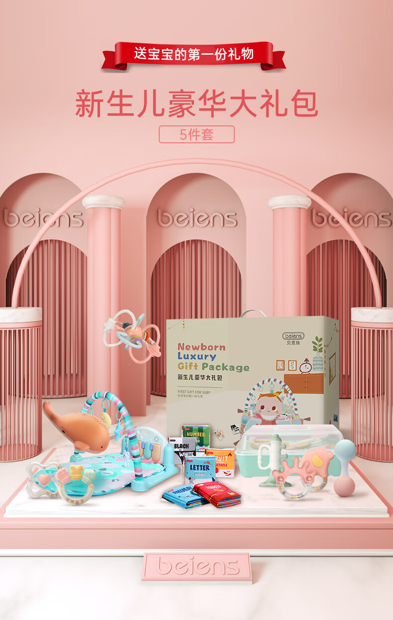 Bainshi baby toys newborn gift box 0-1-3 years old infant toys baby growth spree 5-piece set