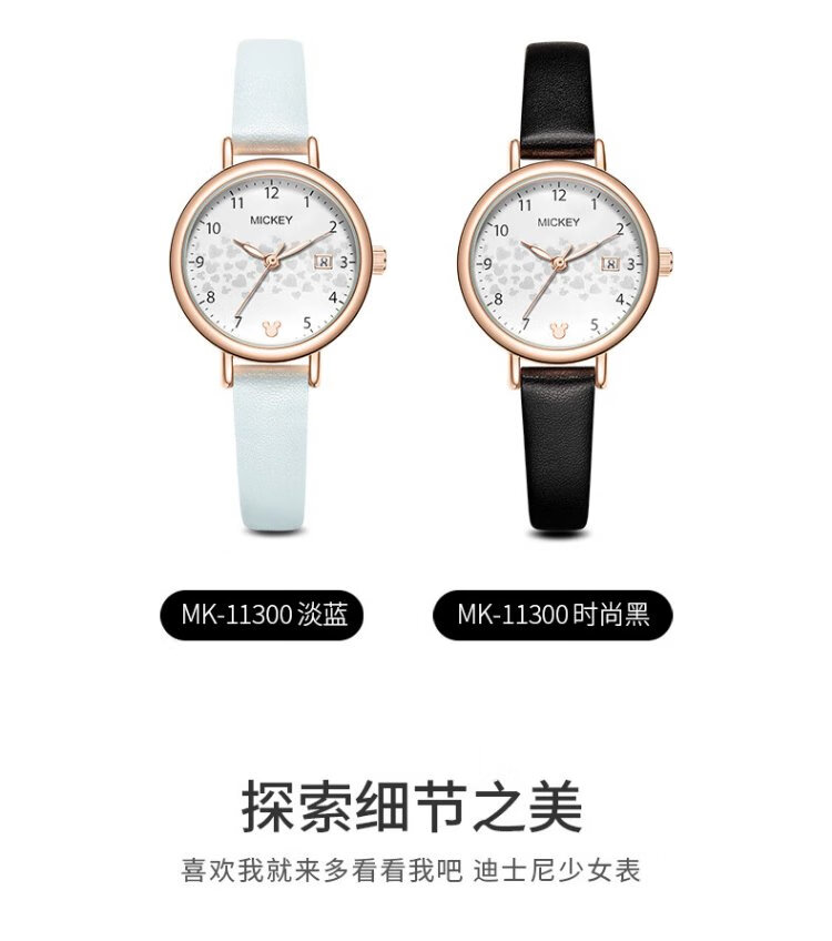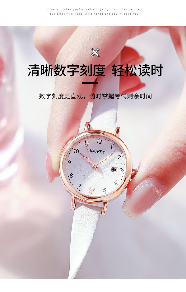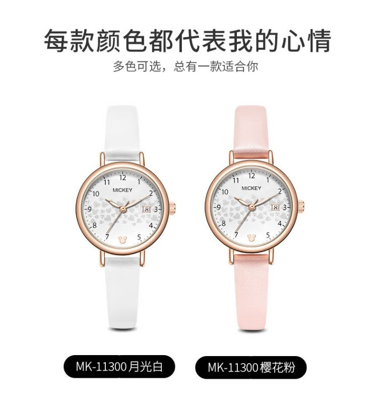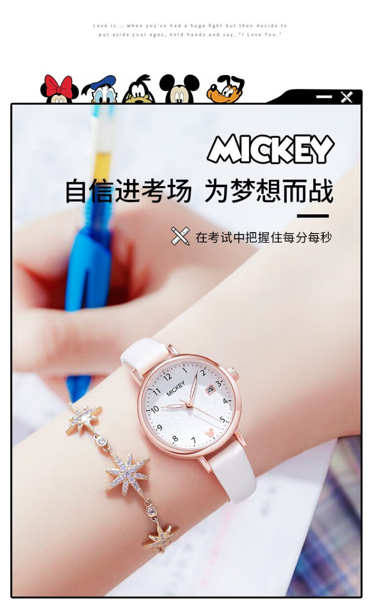 Disney watch female student simple waterproof children's watch with calendar primary and secondary school student exam watch MK-11300W