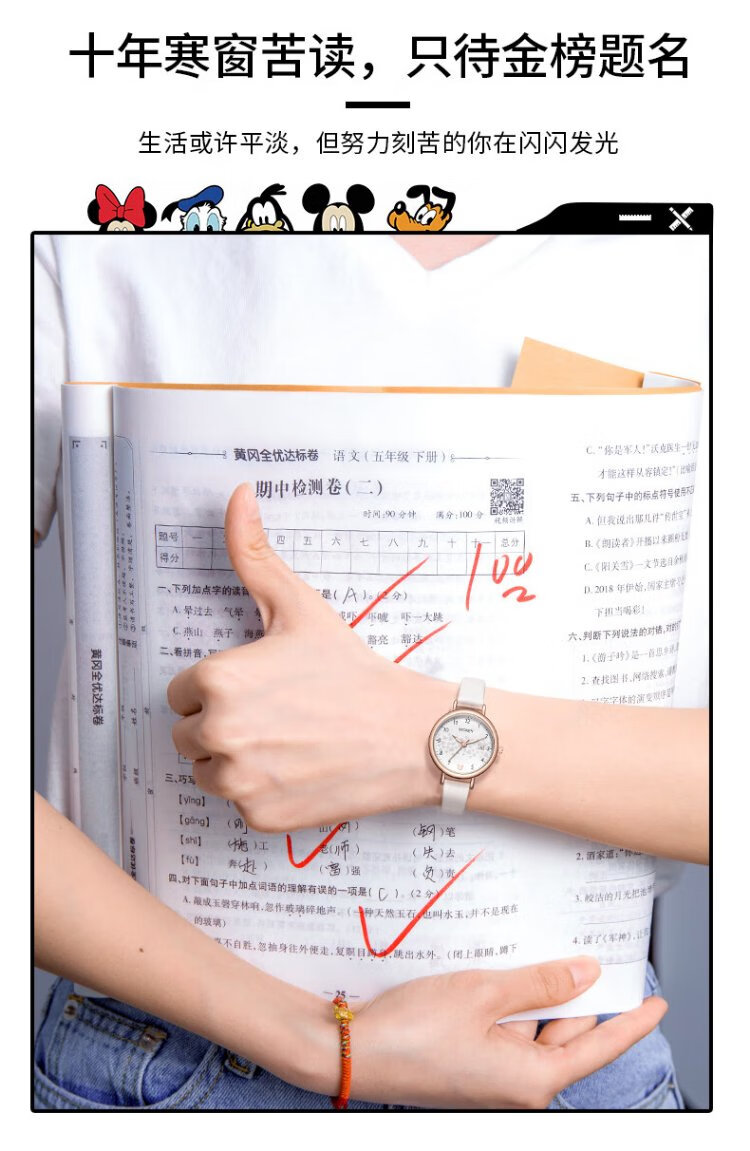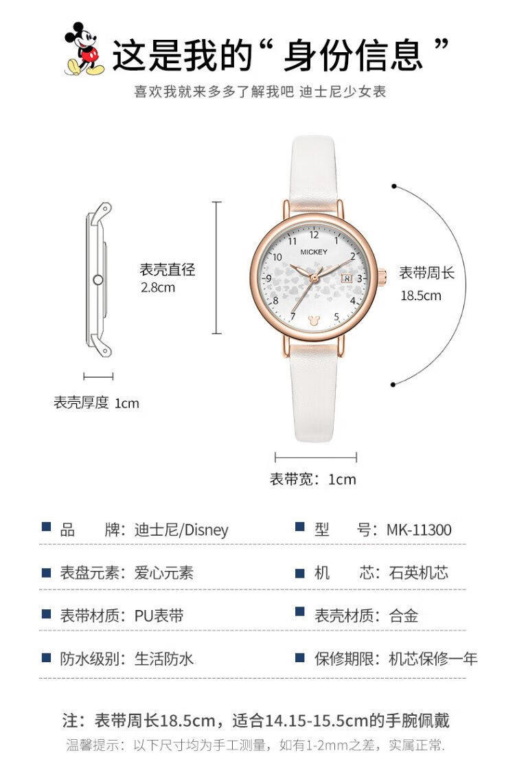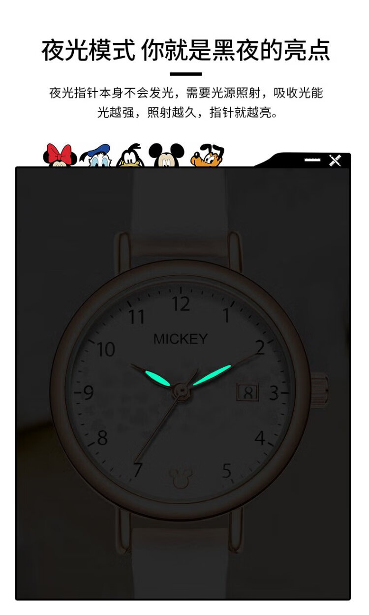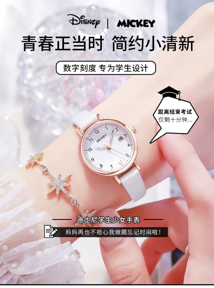 Disney watch female student simple waterproof children's watch with calendar primary and secondary school student exam watch MK-11300W