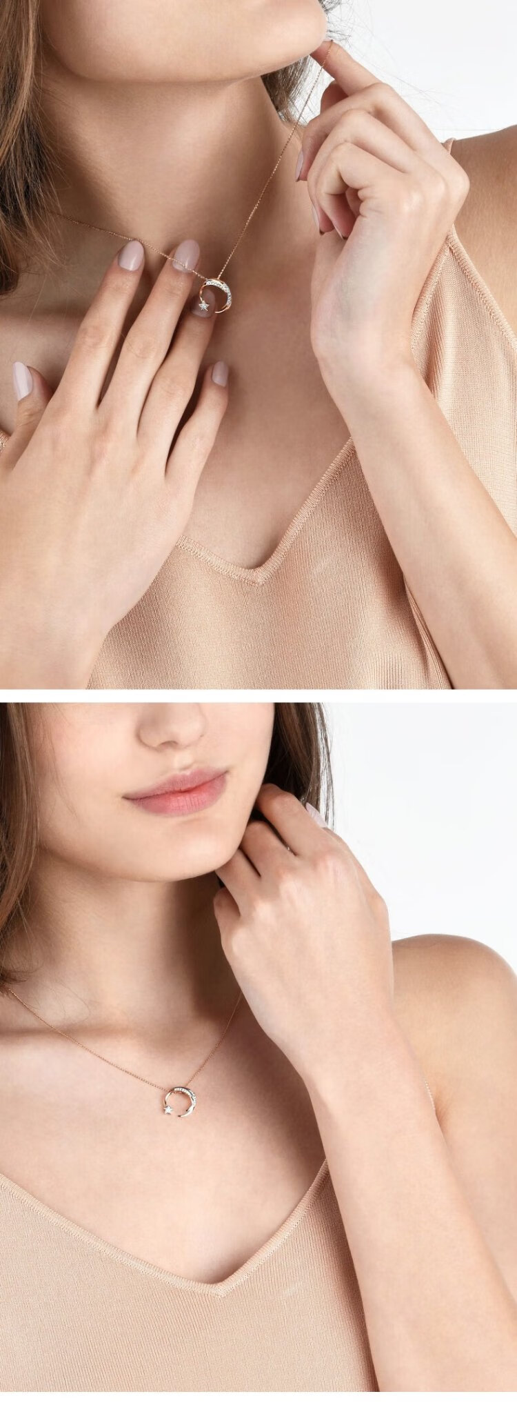 Chow Sang Sang 18K White and Rose Gold Love Words Wish Star Diamond Necklace 90858U