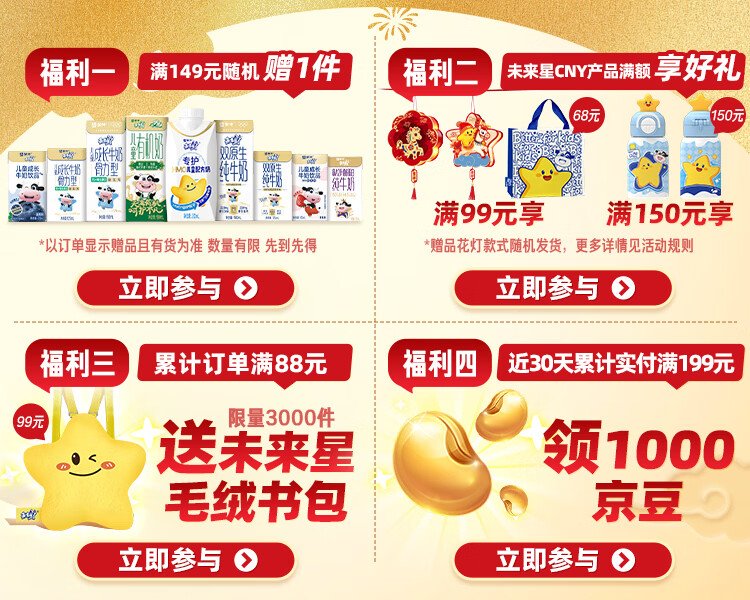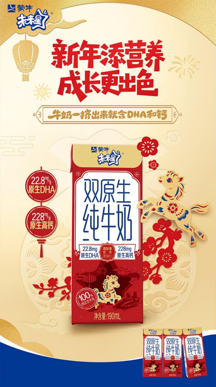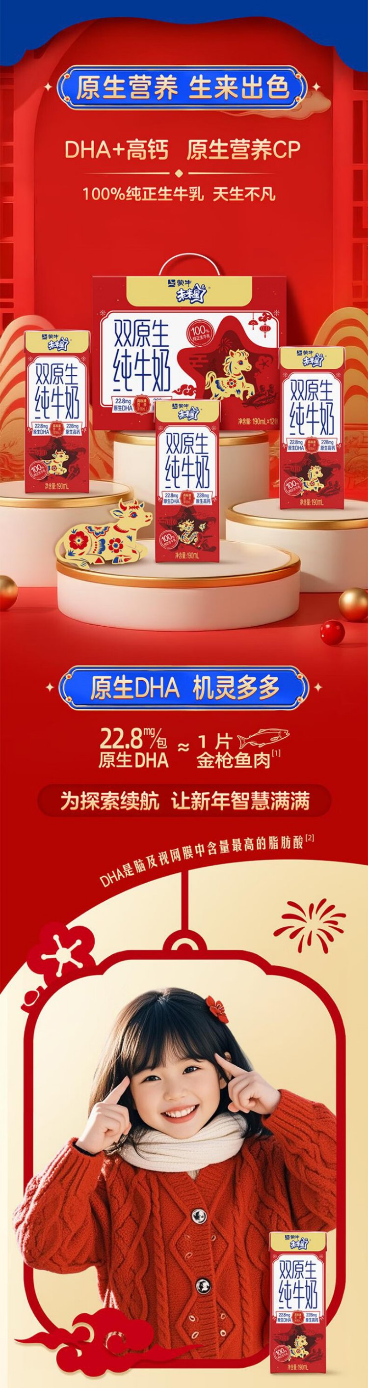 Mengniu Future Star Double Native DHA Growth Children's Milk High Calcium Pure Milk 190ml*12 Boxes Gift Box