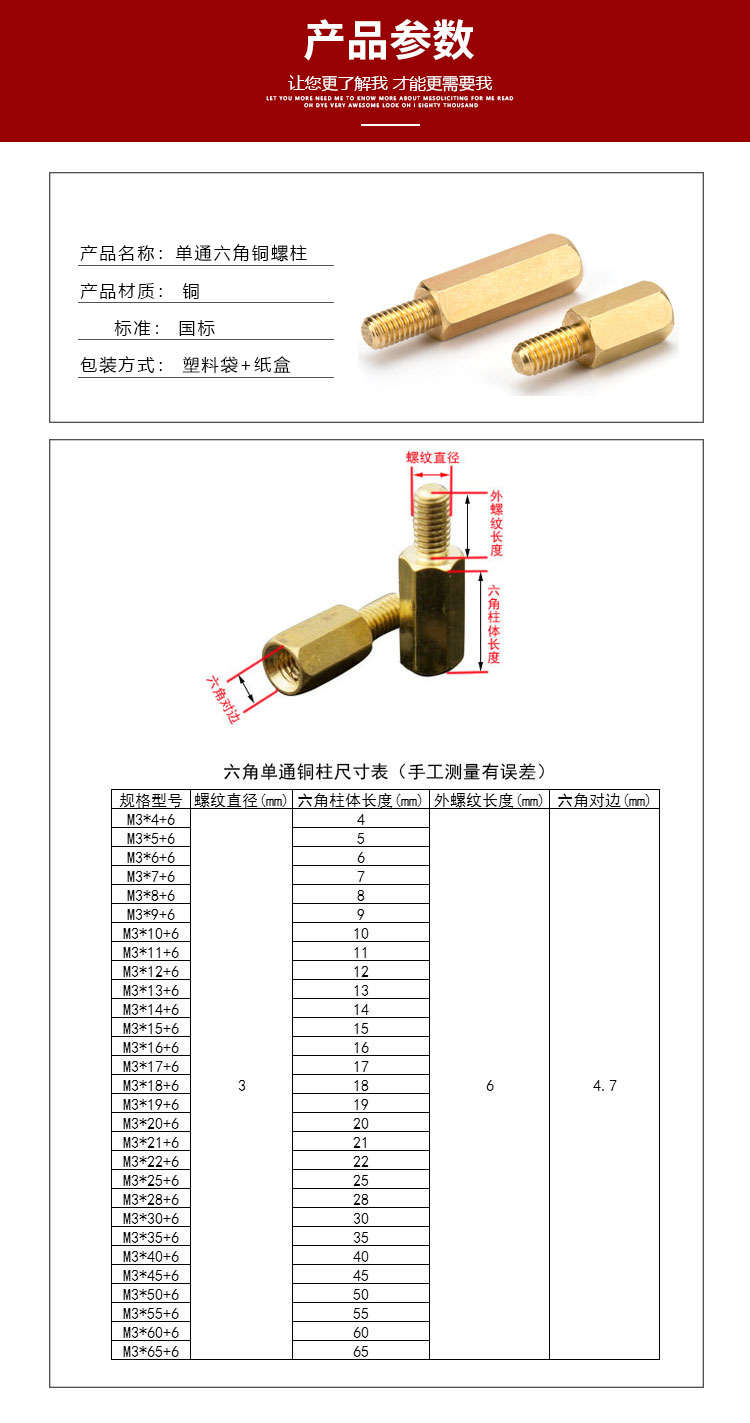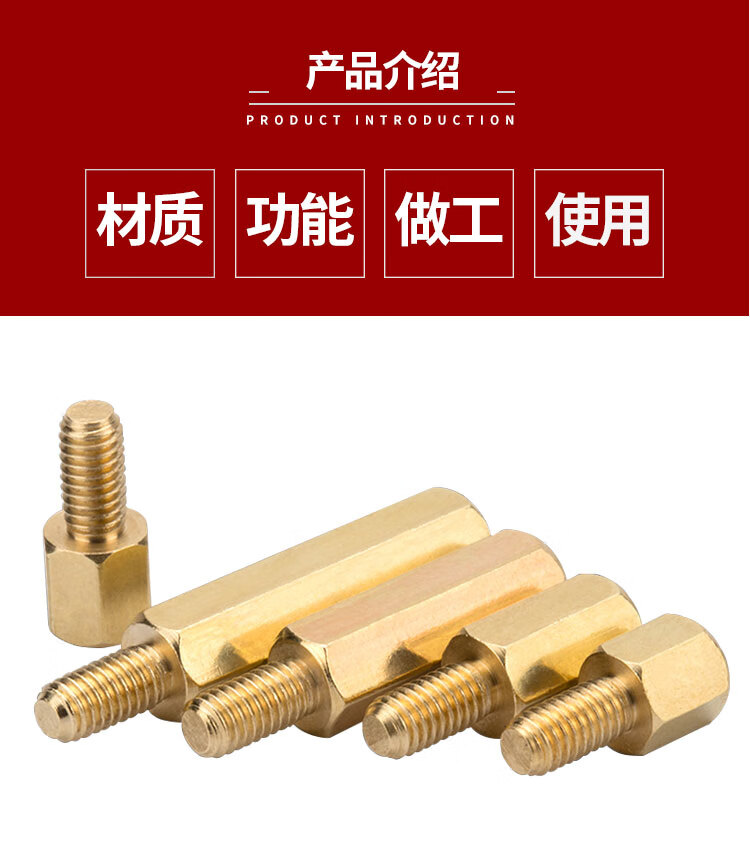 Hasdick Beijing warehouse delivery HKW-212 hexagonal copper pillar single-head copper stud chassis screw hexagonal isolation pillar circuit board wiring copper pillar single-pass support pillar M3*4+5 (100 pieces)