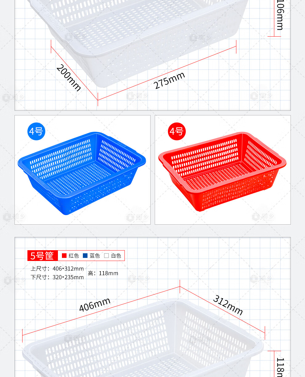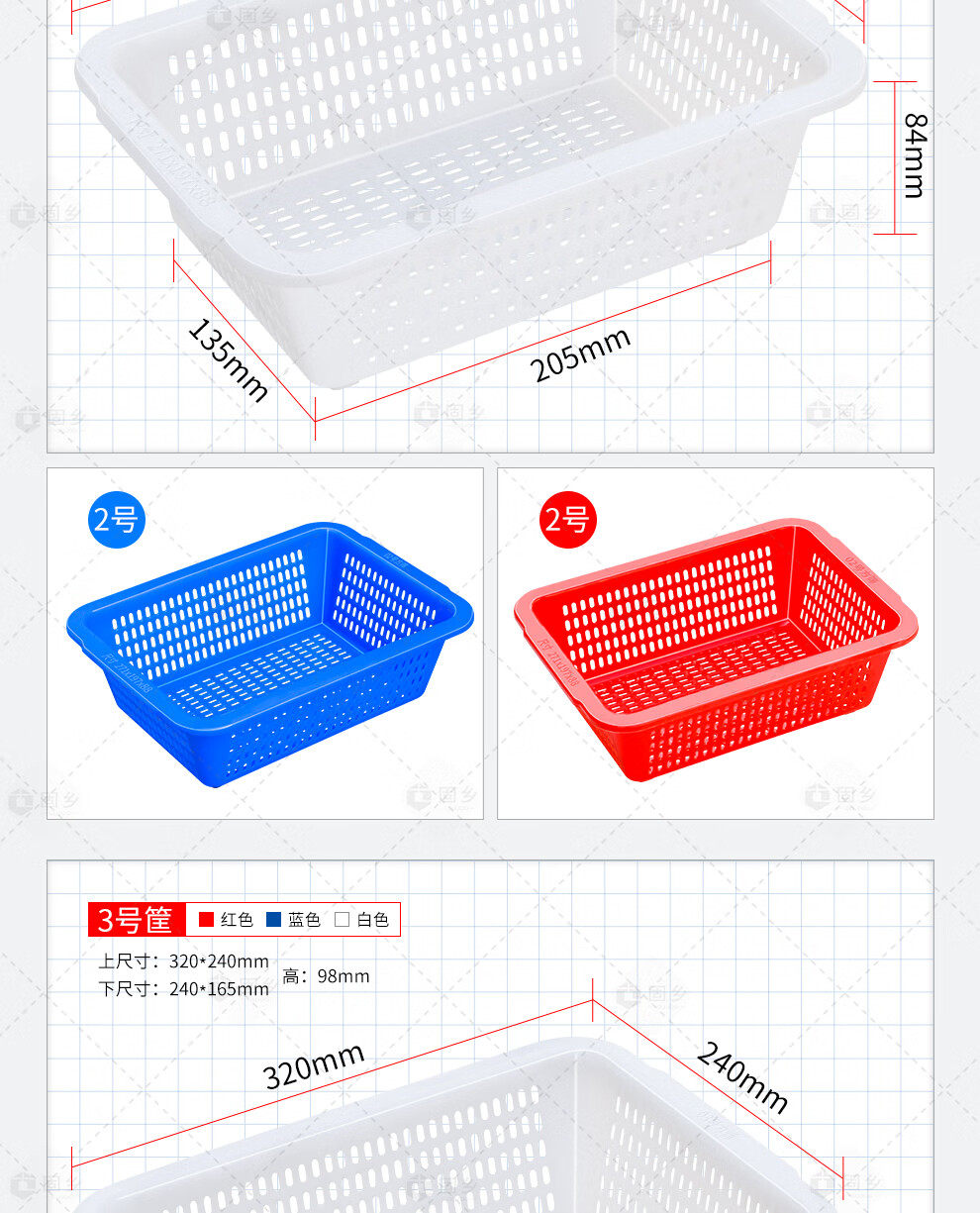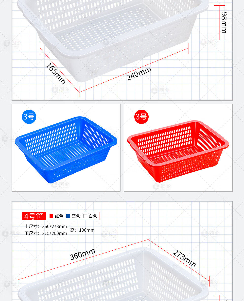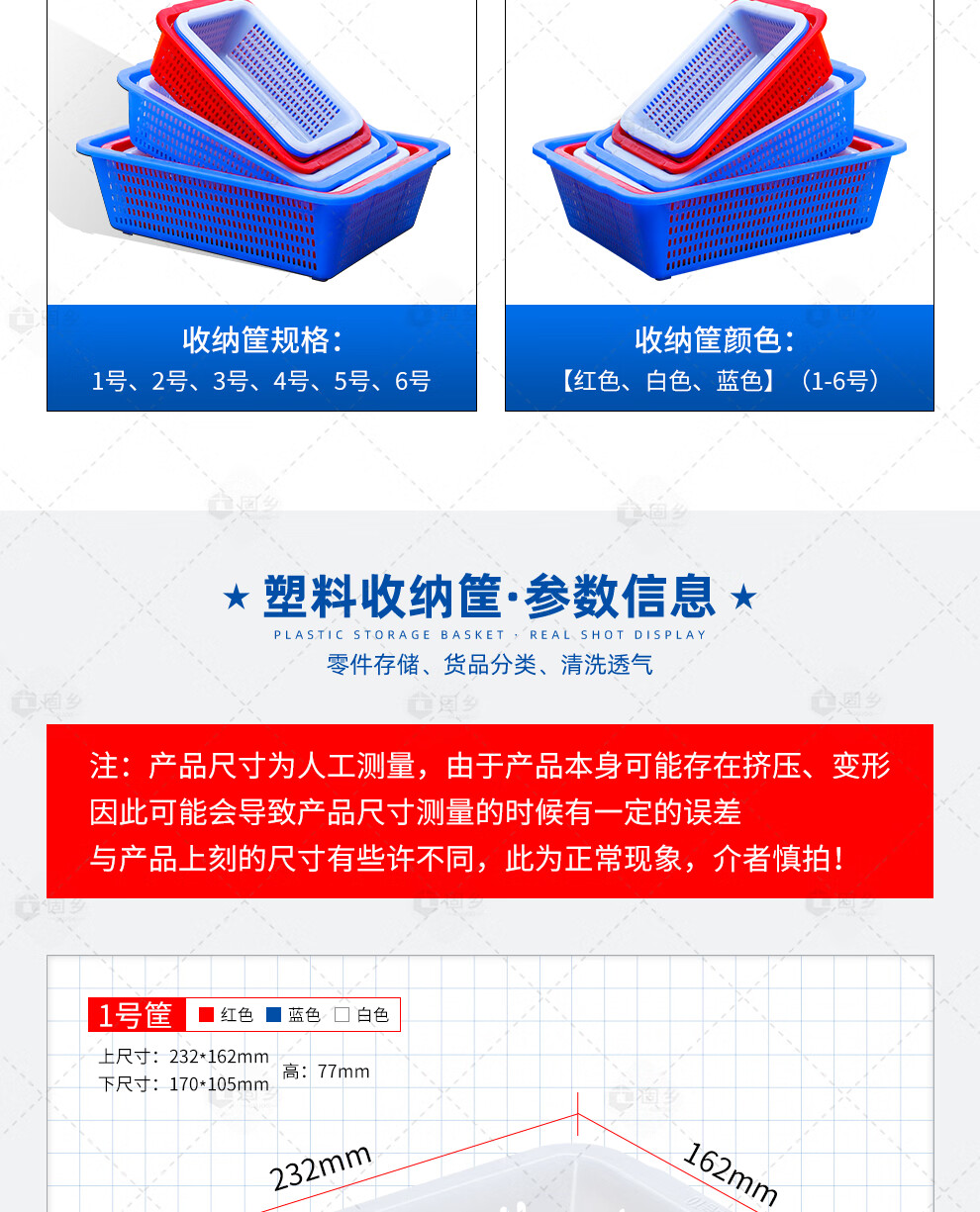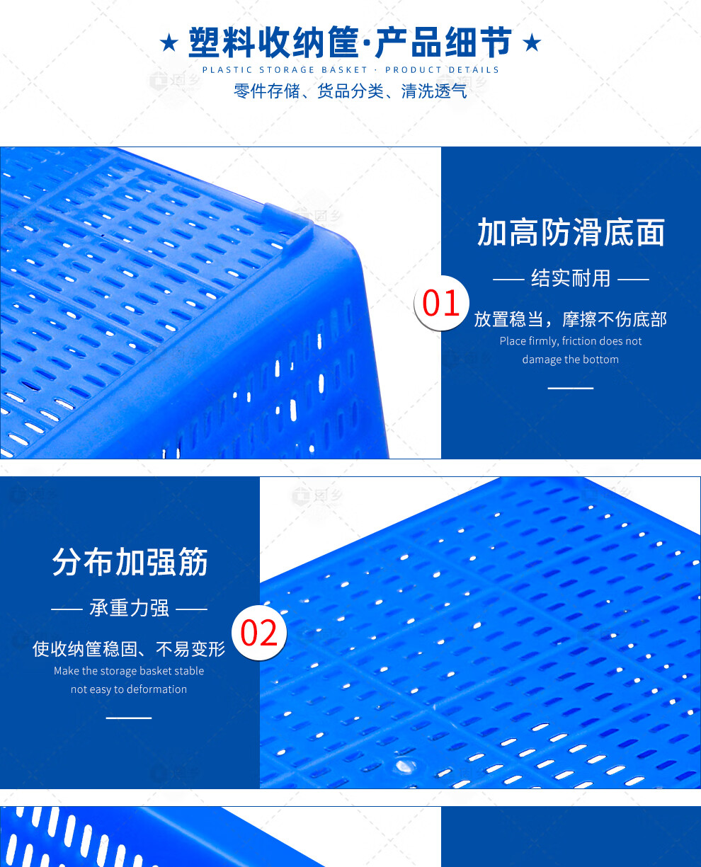 Guxiang Cestas de plástico Cestas de clasificación de pantalla cuadrada/Cestas de rotación/Cestas de organización Cajas perforadas de plástico Cajas de fugas Filtro de malla Clasificación de estantes de almacén Cesta de verduras Cesta azul No. 3 Paquete de 2