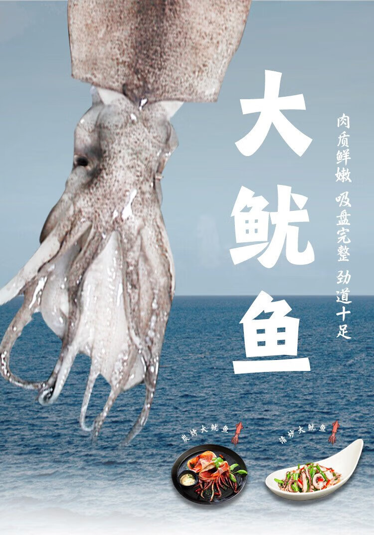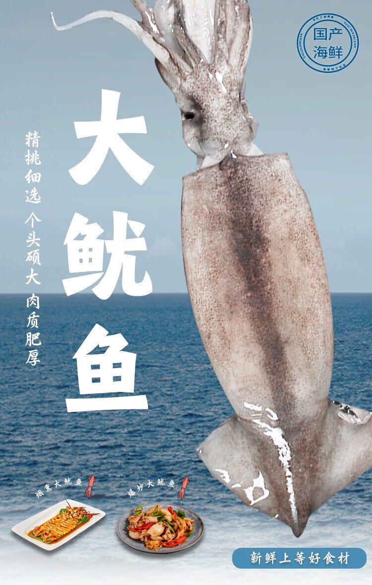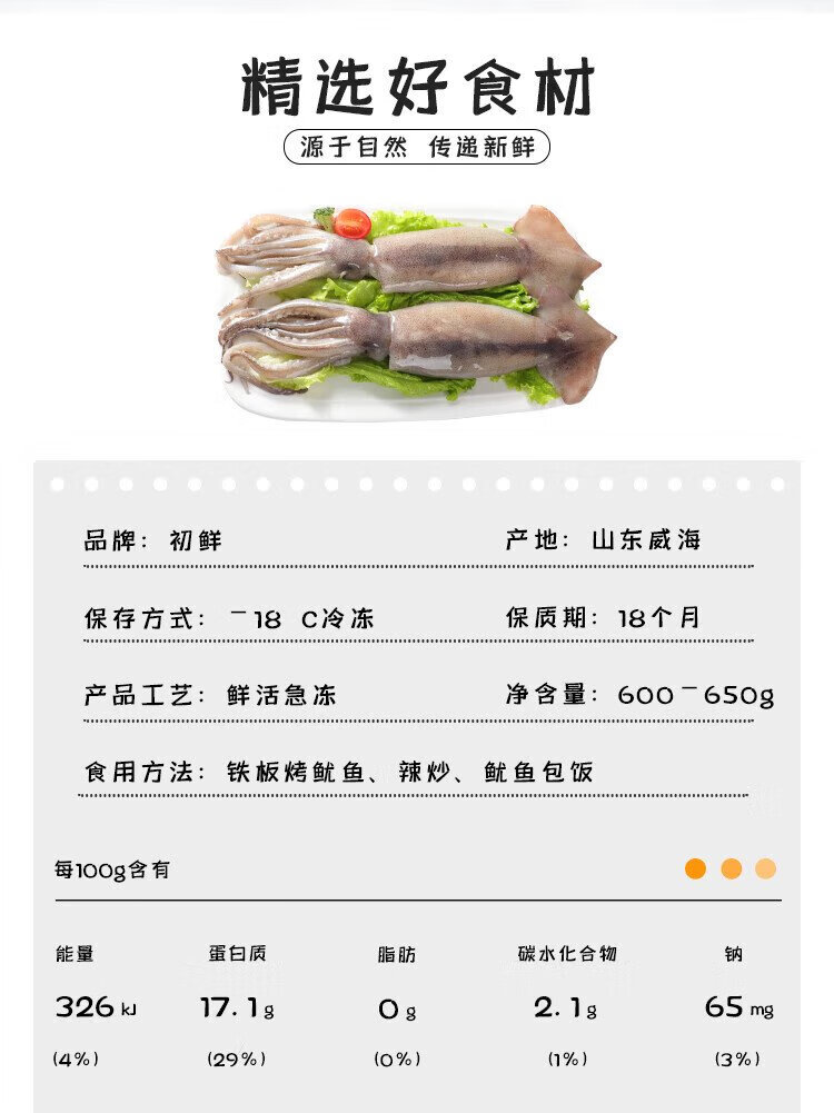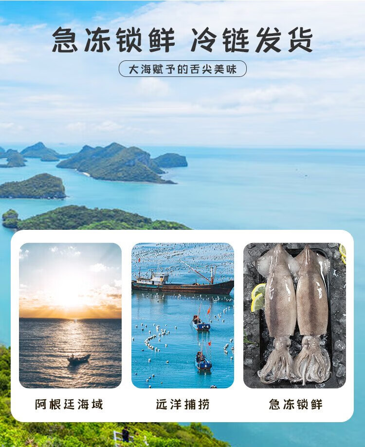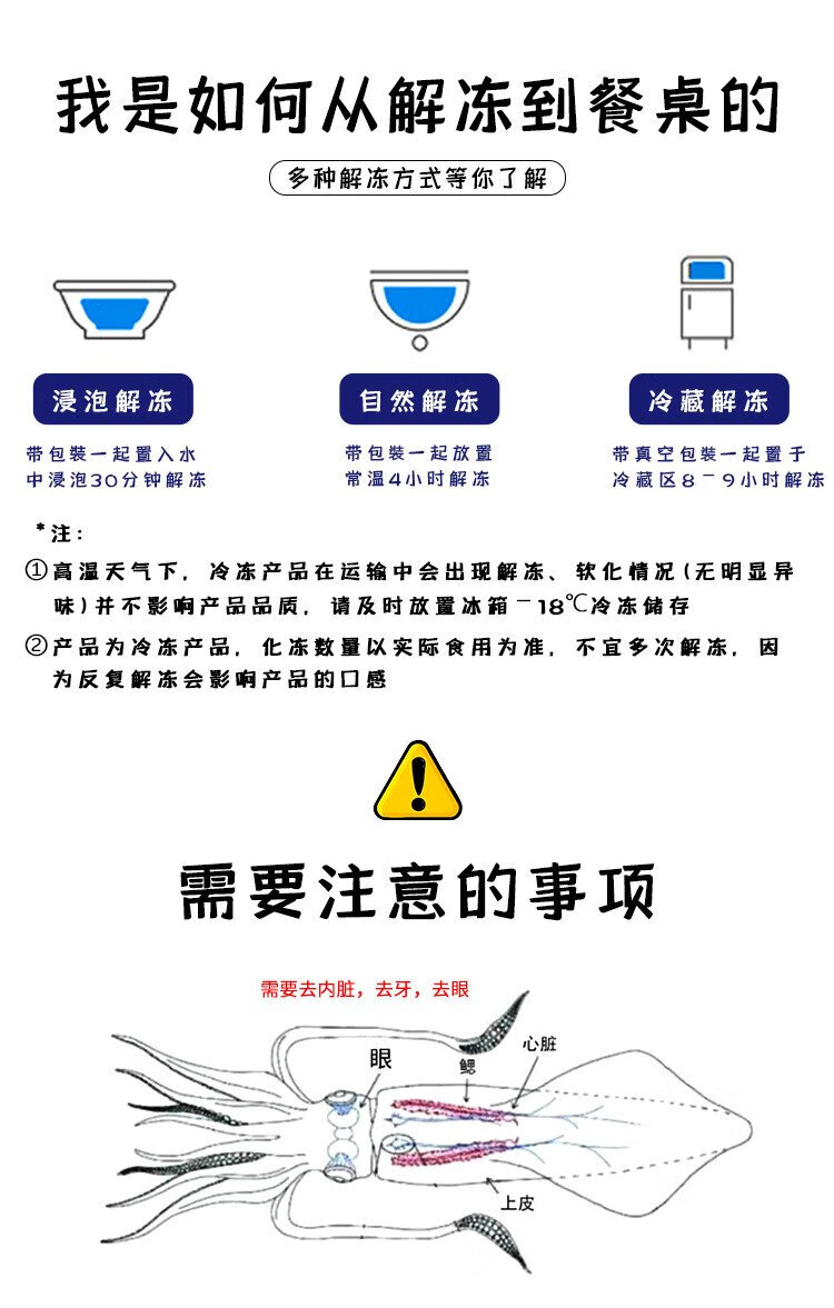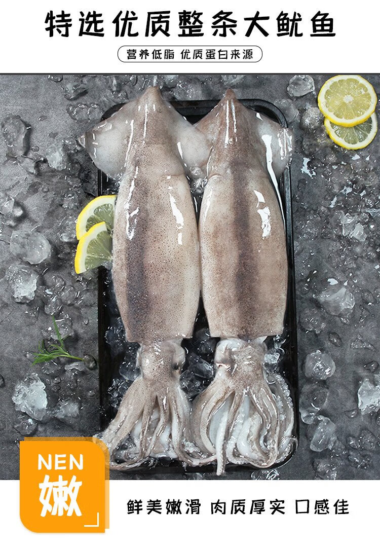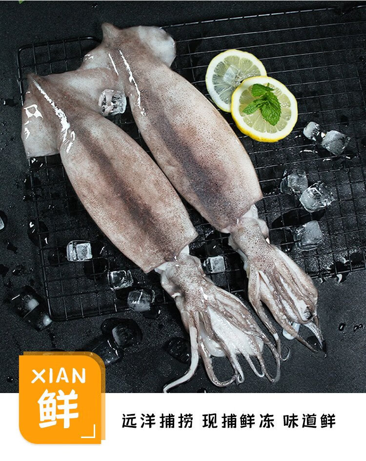Fresh and frozen large squid 2-4 pieces net weight 1.2-1.3Jin Jin is equal to 0.5kg Teppanyaki squid hot pot barbecue ingredients seafood soft feet