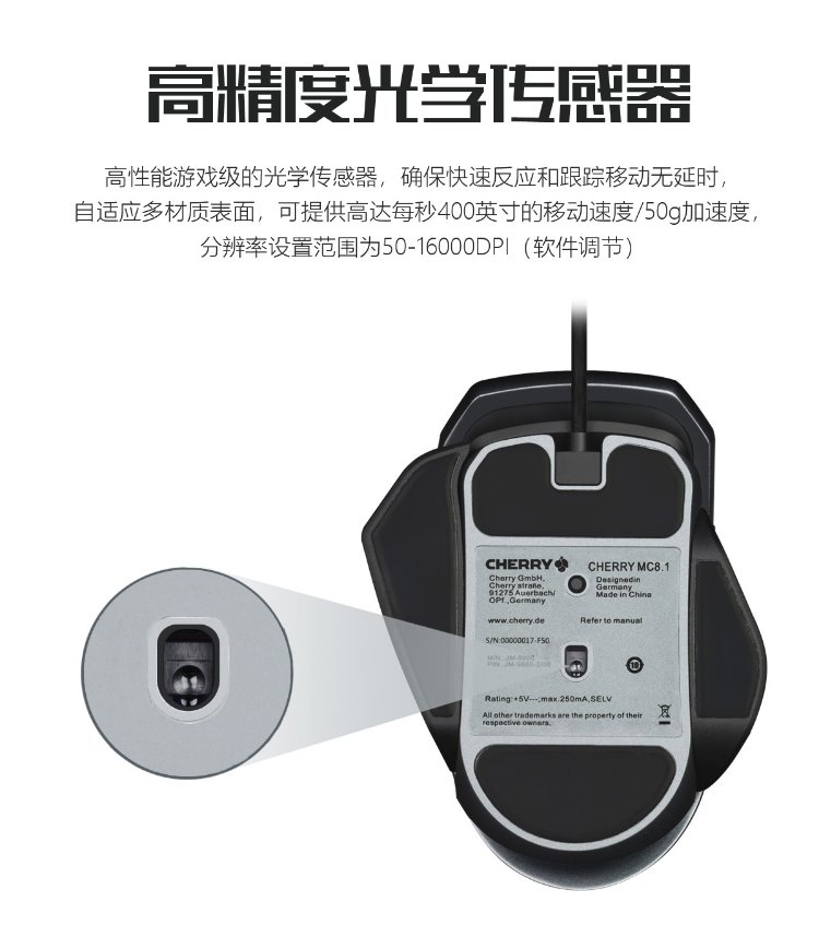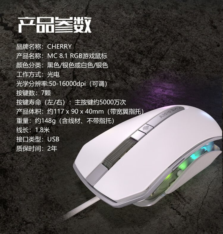Cherry MC 8.1 JM-9800 wired mouse gaming mouse RGB mouse chicken mouse e-sports mouse PlayerUnknown's Battlegrounds macro programming white
