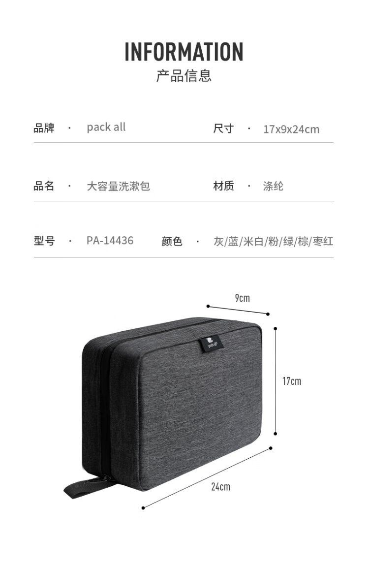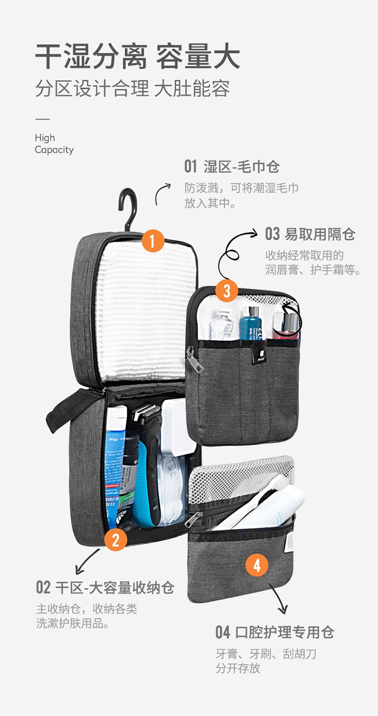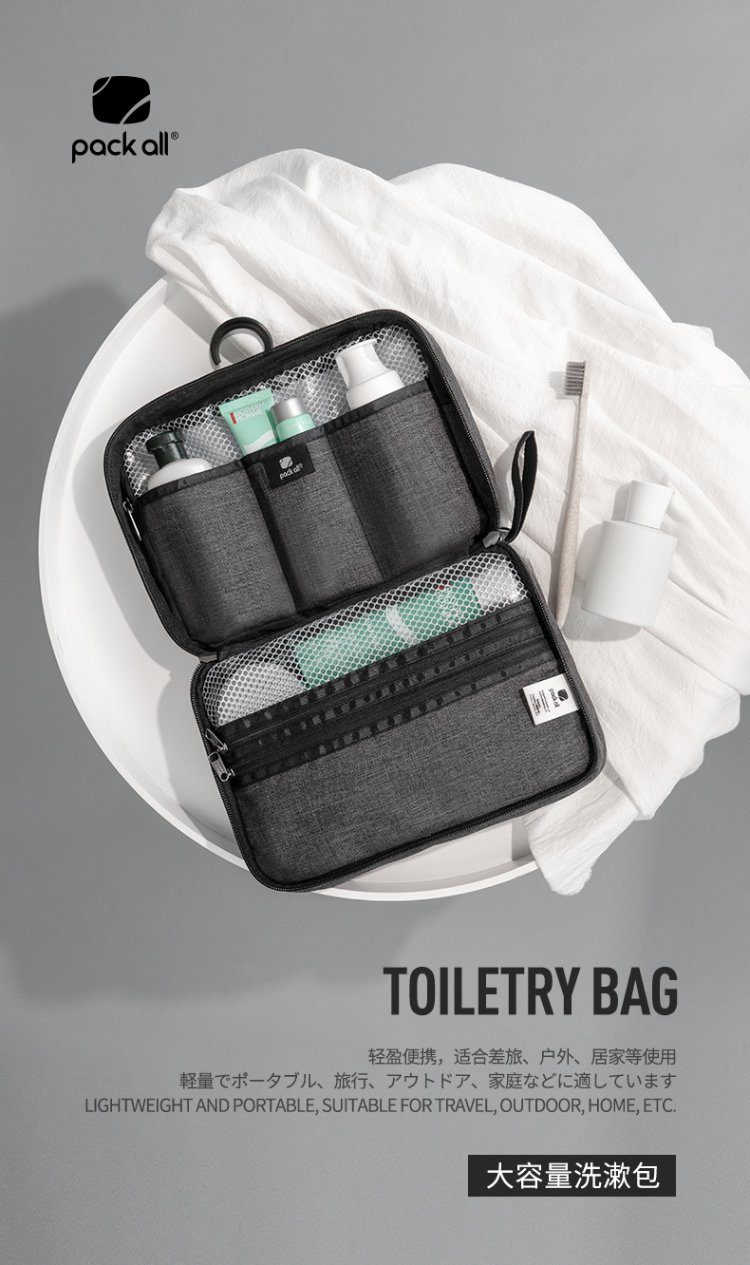 Pack all travel toiletry bag men's business trip toiletry storage bag portable dry and wet separation large black gray