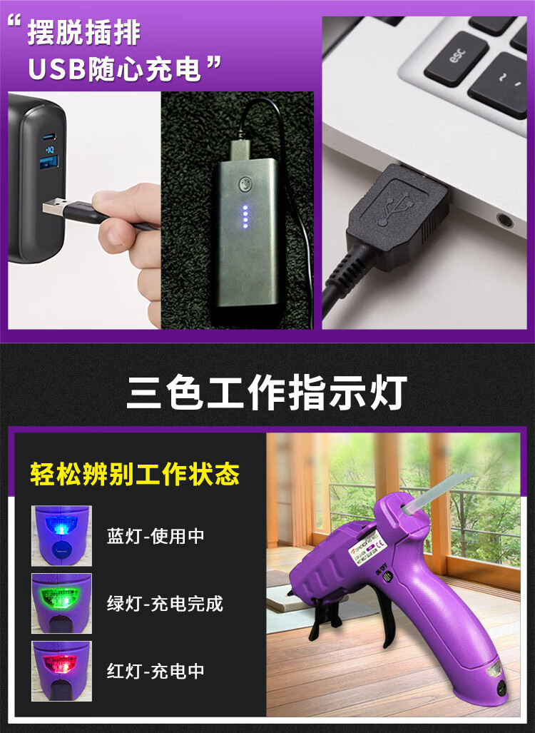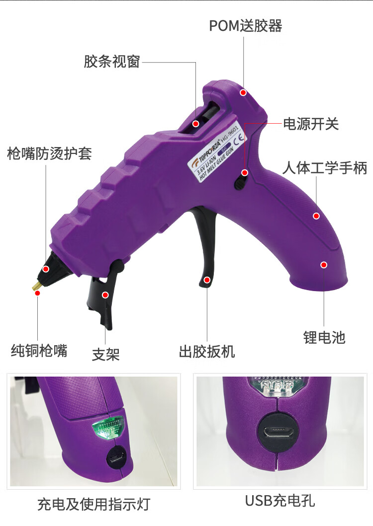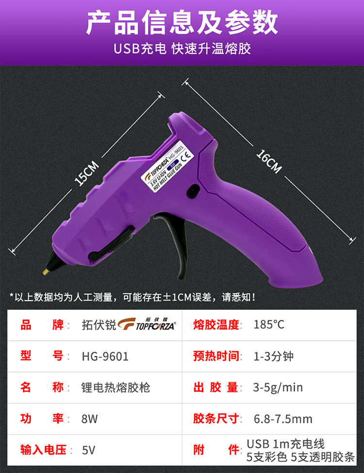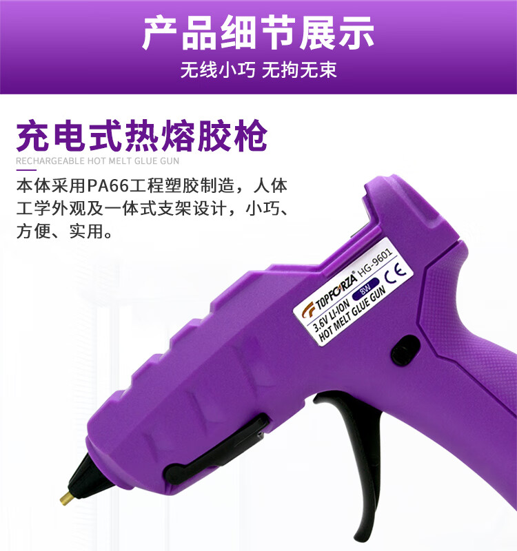 TOFORZA hot melt glue gun children's household manual hot melt gun lithium battery wireless glue gun 10 glue sticks HG-9601