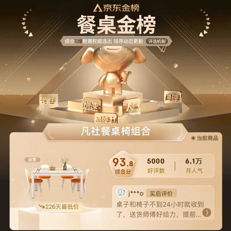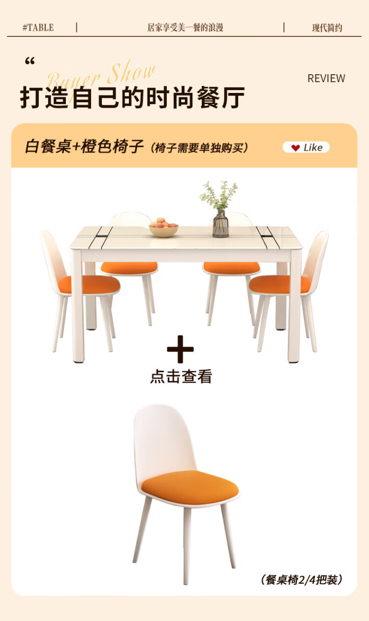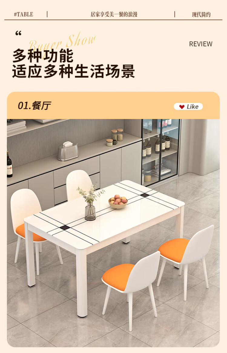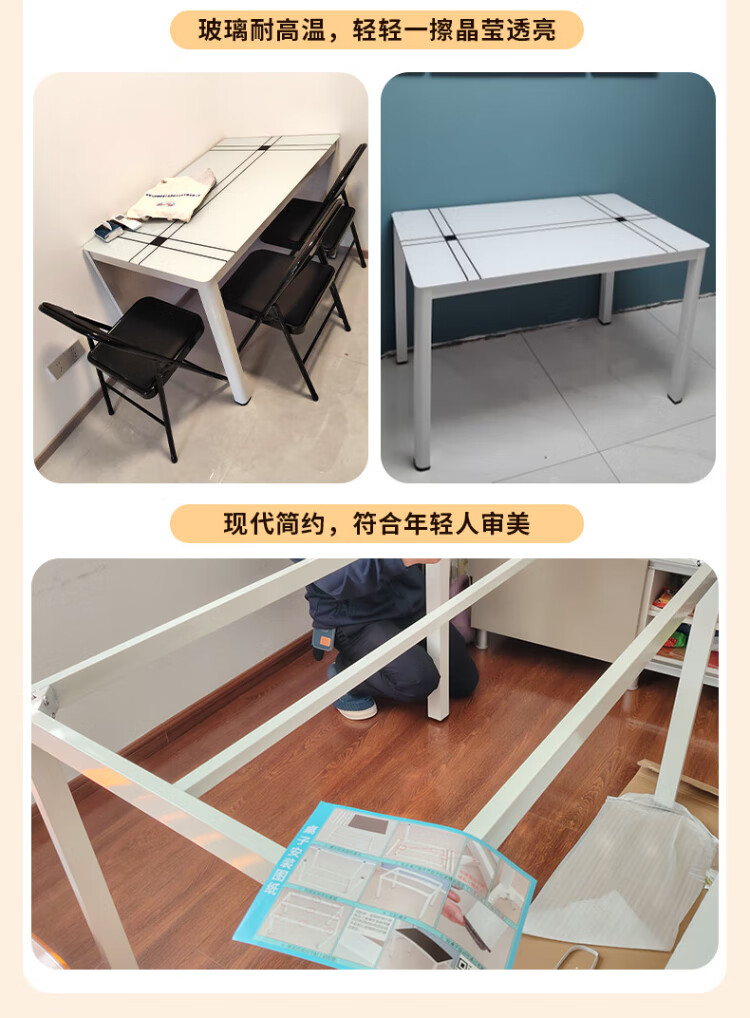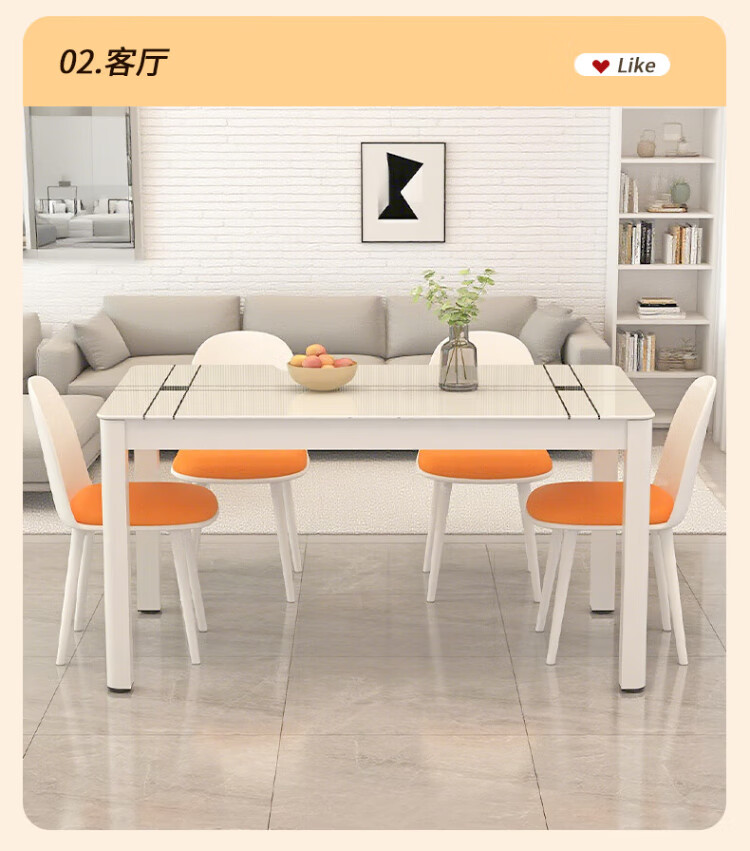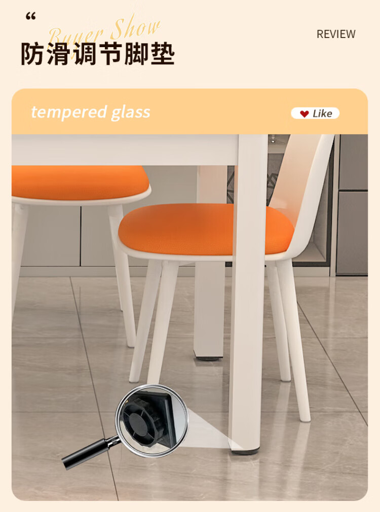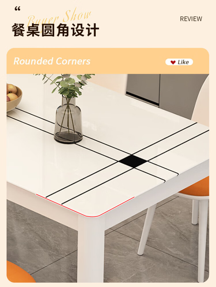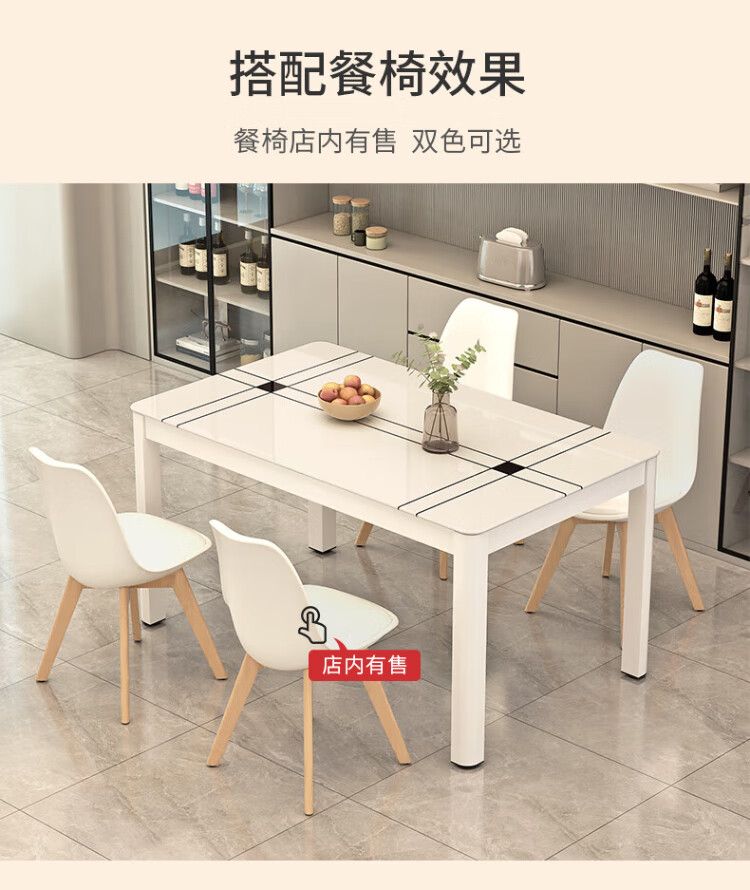 Fanshe dining table household dining table small apartment dining table dining table household 4-6 people tempered glass dining table family dining table and chairs